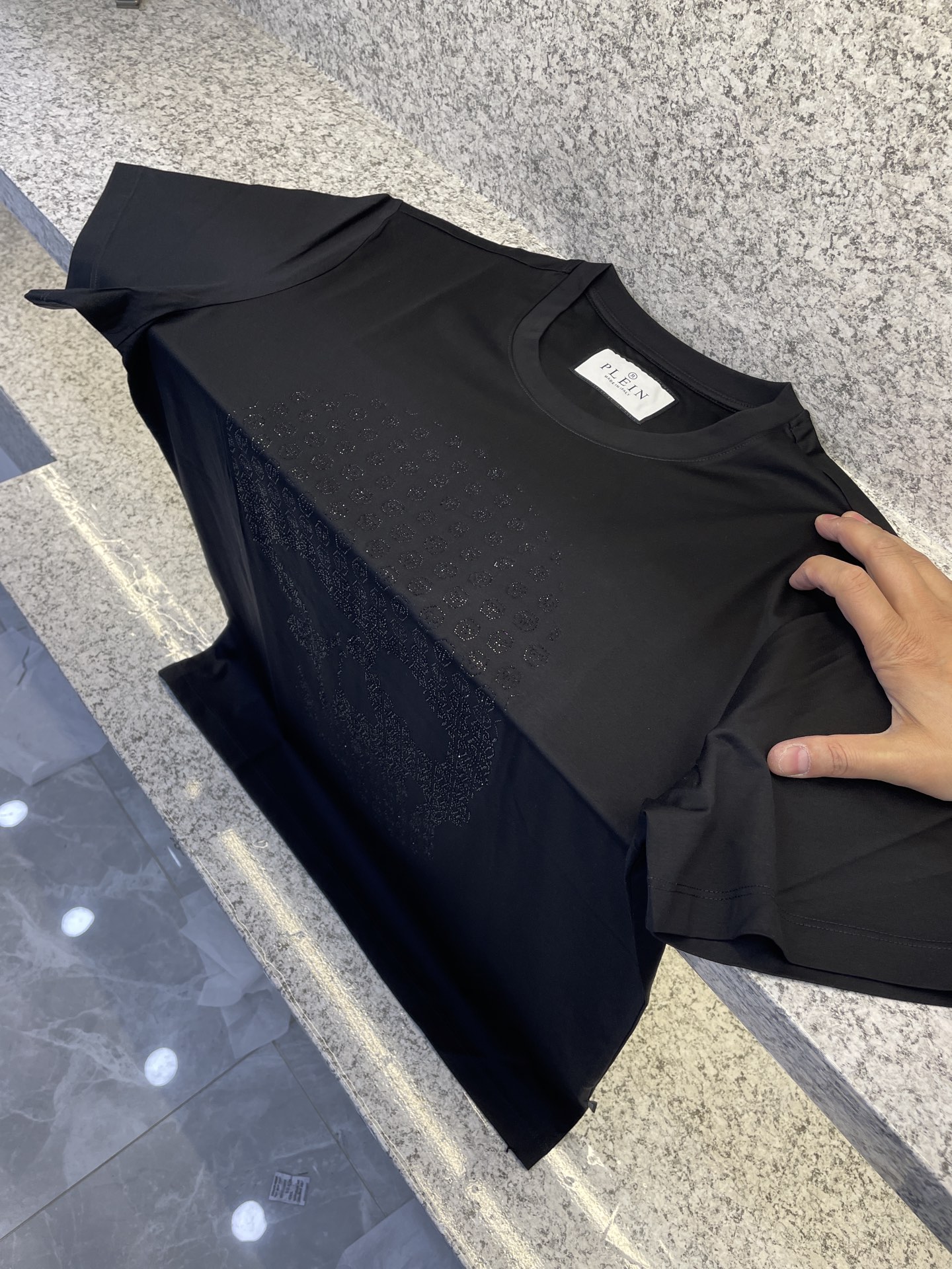 這款衣服是AAAAA 1:1 質量(非常棒). 使用了和原版一模一樣的材料. 商標部分也保持了和菲利普·普林/Philipp Plein一樣. 圖片拍攝是實物衣服拍攝, 您所收到的實物保證和我們圖片一模一樣.