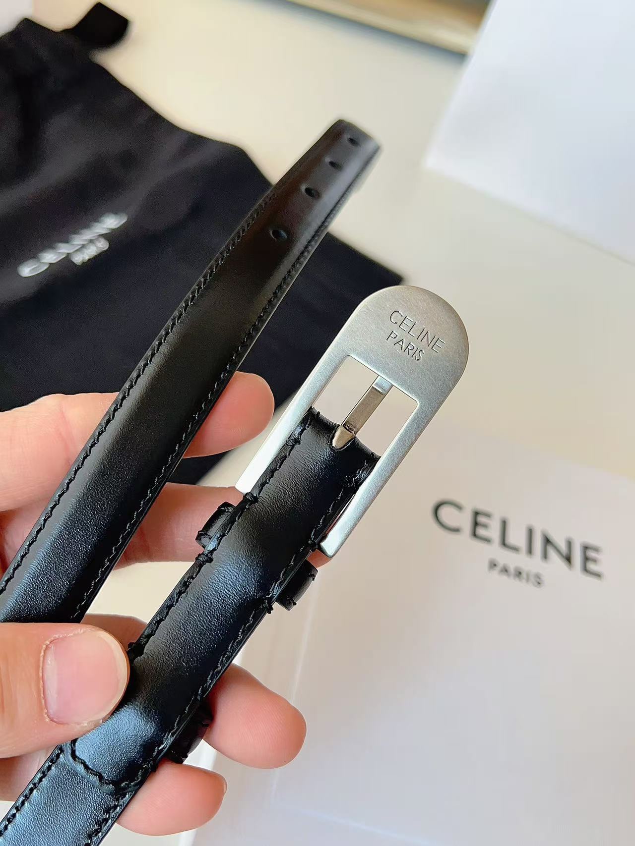 這款皮帶是AAAAA 1:1 質量(非常棒). 使用了和原版一模一樣的材料. 商標部分也保持了和思琳/赛琳/Celine一樣. 圖片拍攝是實物皮帶拍攝, 您所收到的實物保證和我們圖片一模一樣.