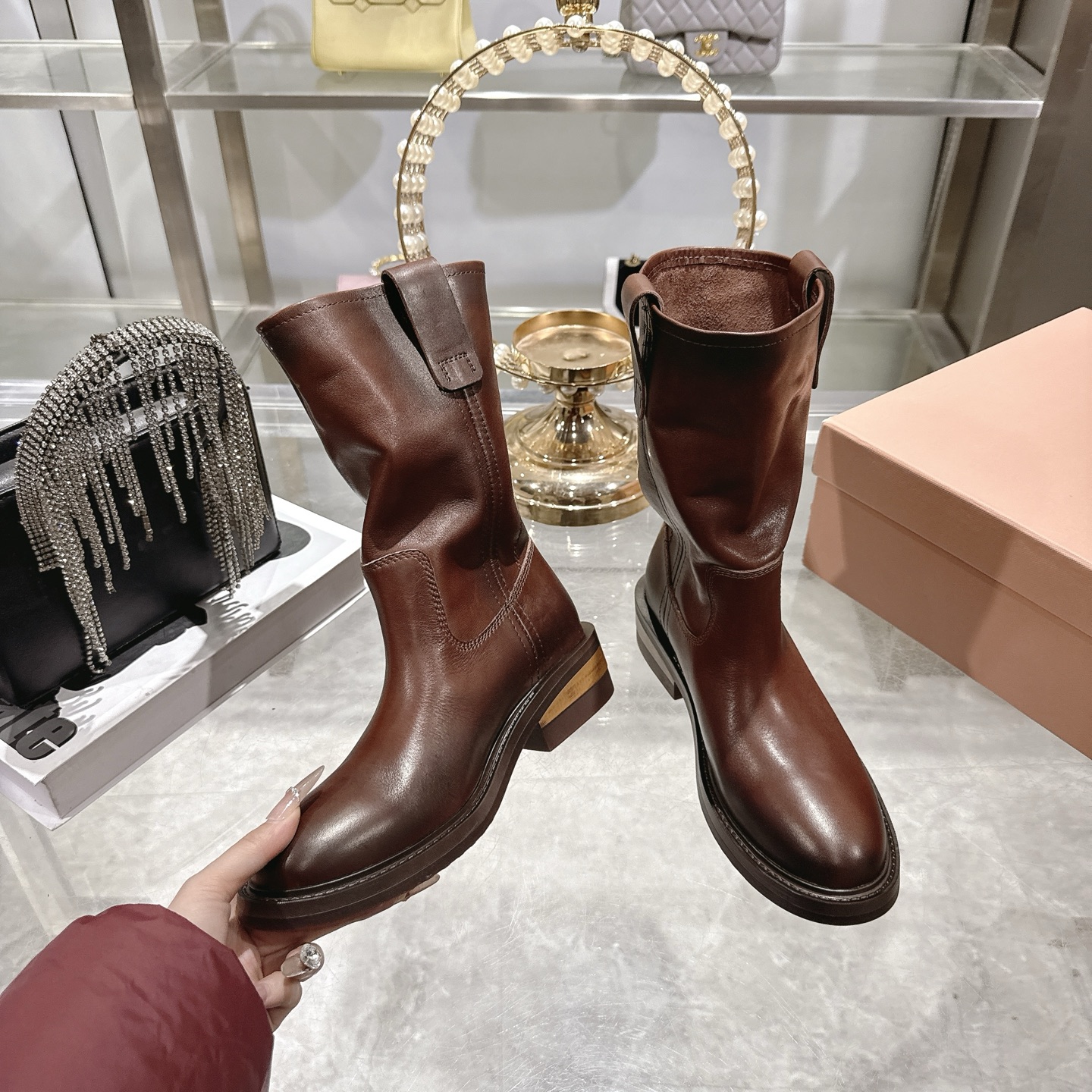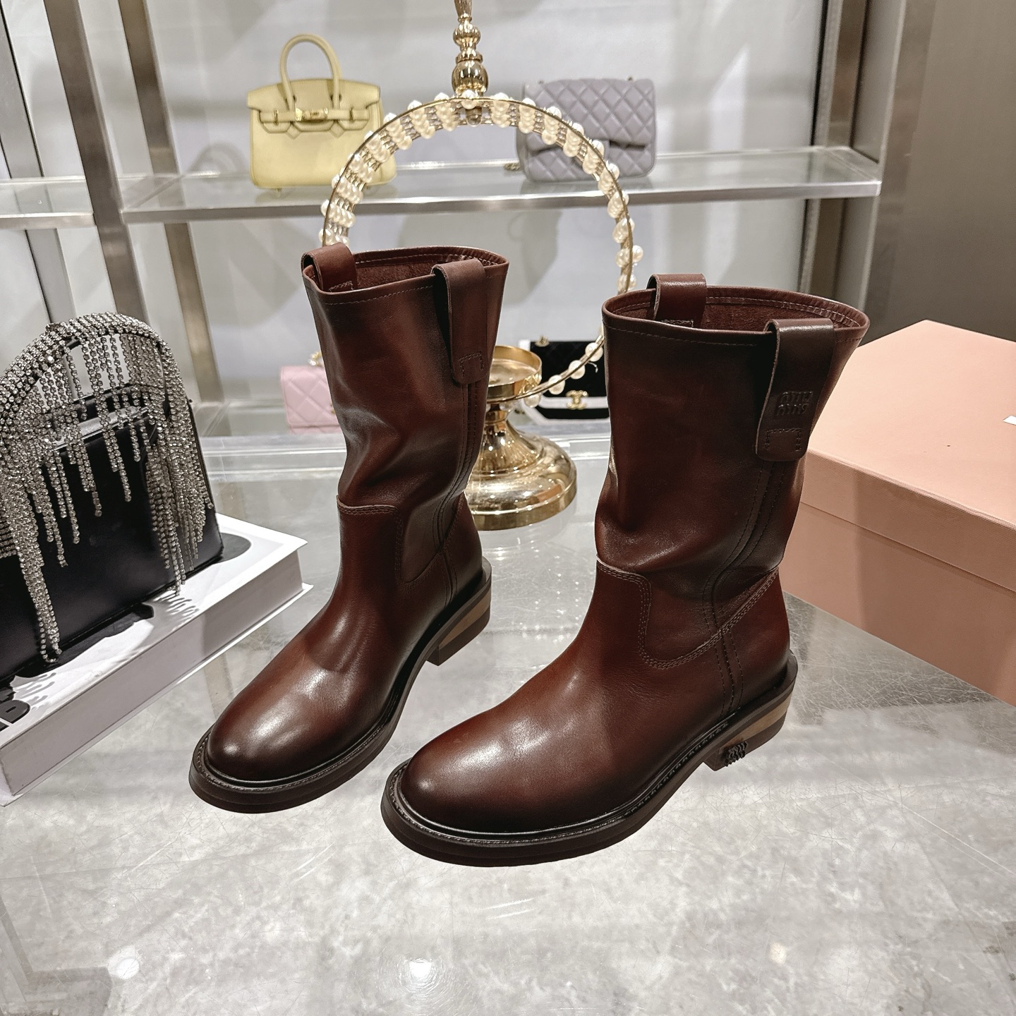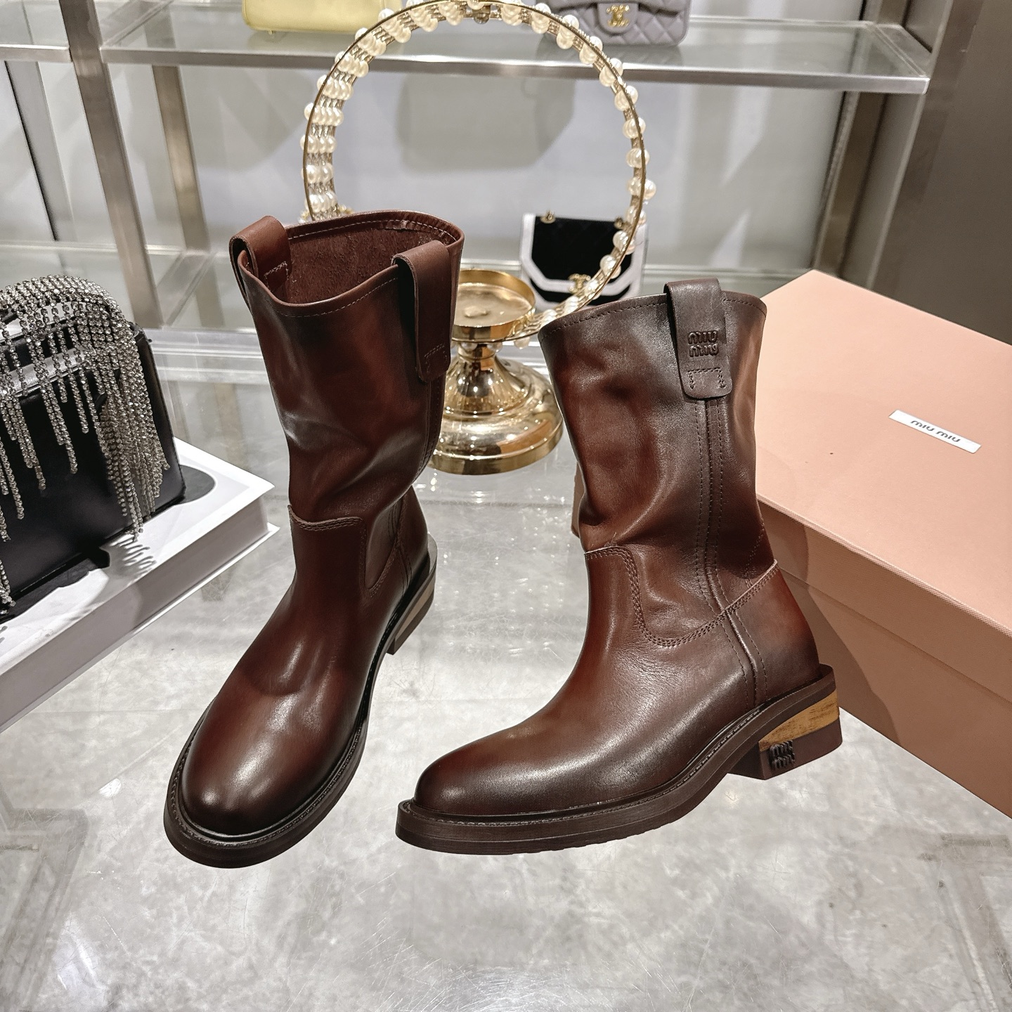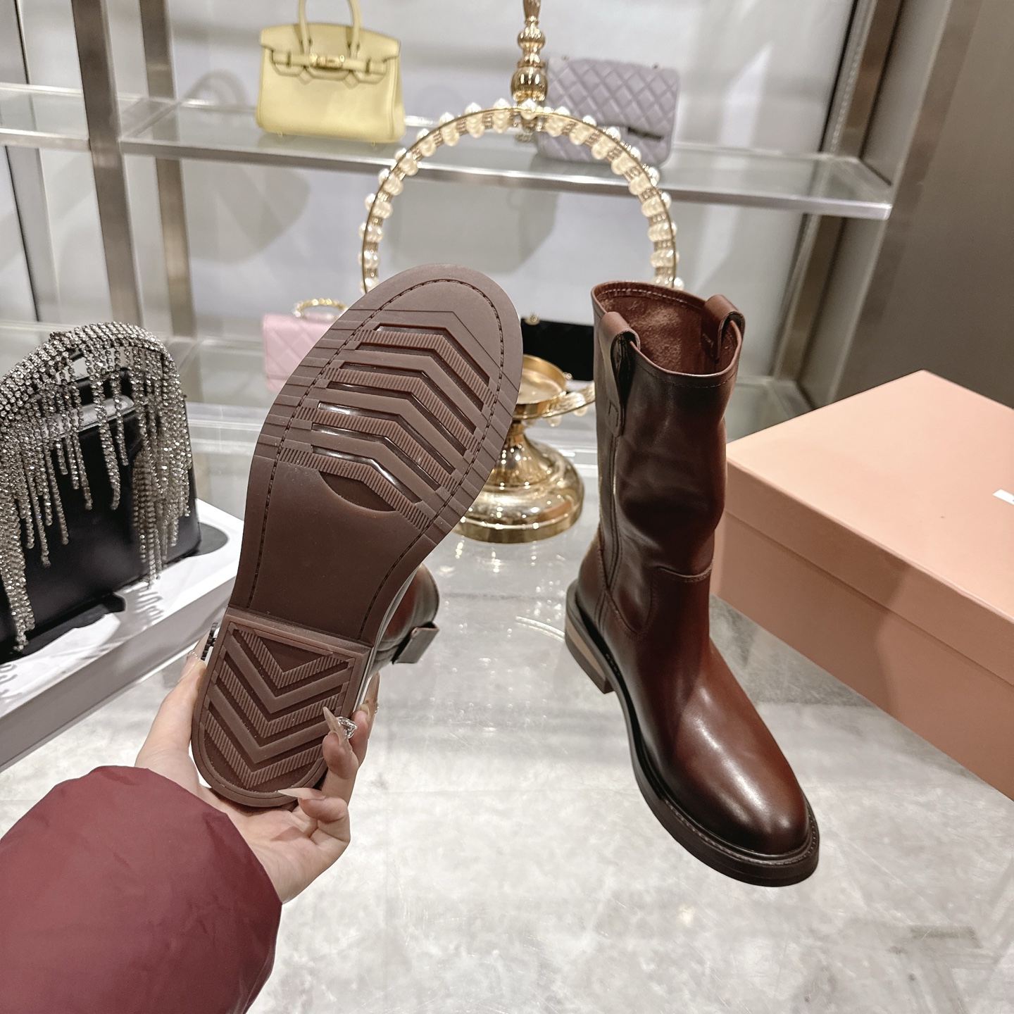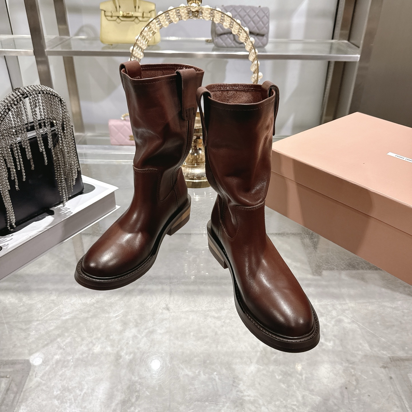 這款鞋子是AAAAA 1:1 質量(非常棒). 使用了和原版一模一樣的材料. 商標部分也保持了和繆繆/Miu Miu一樣. 圖片拍攝是實物鞋子拍攝, 您所收到的實物保證和我們圖片一模一樣.