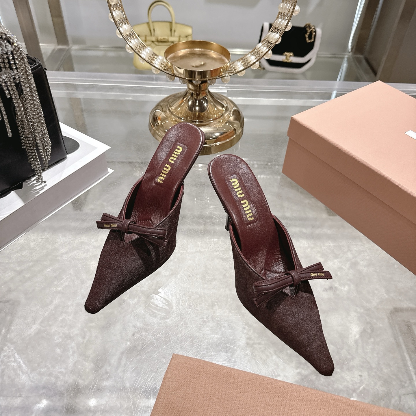 這款鞋子是AAAAA 1:1 質量(非常棒). 使用了和原版一模一樣的材料. 商標部分也保持了和繆繆/Miu Miu一樣. 圖片拍攝是實物鞋子拍攝, 您所收到的實物保證和我們圖片一模一樣.