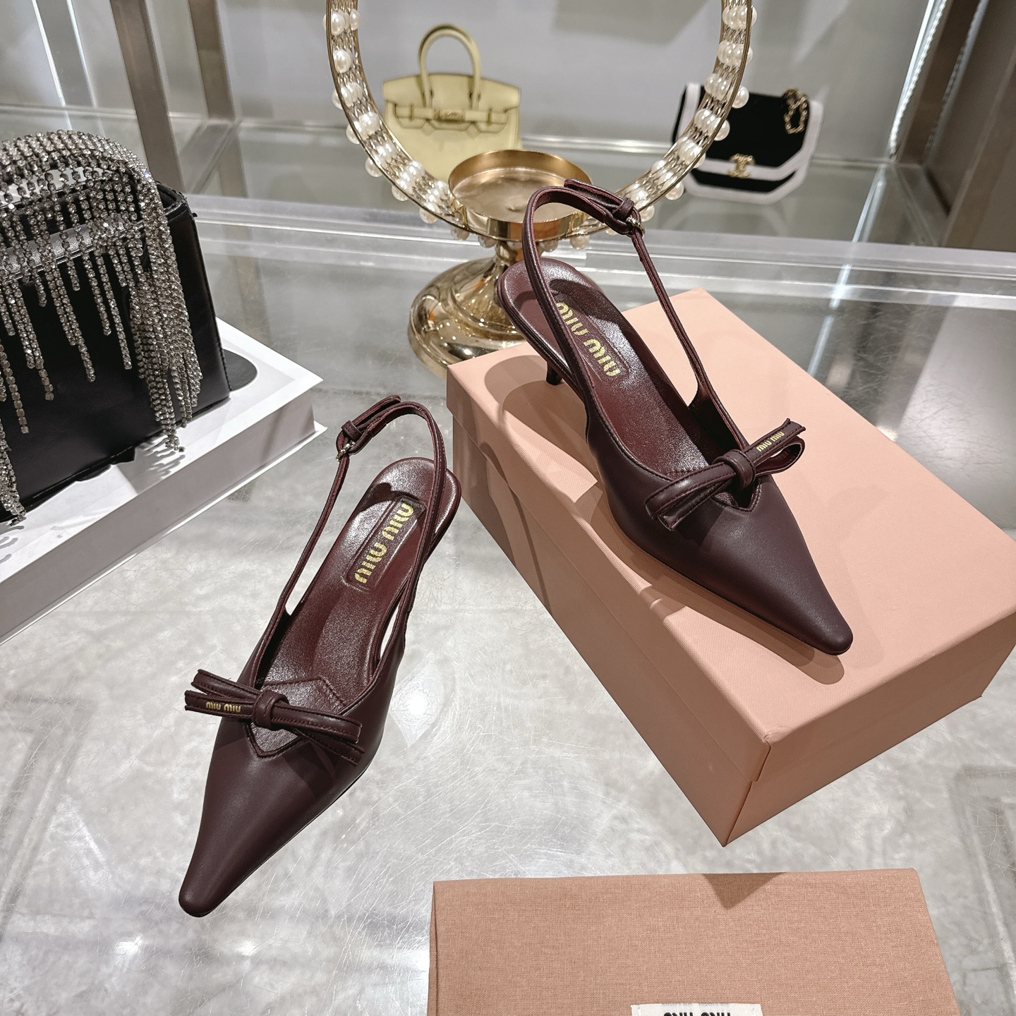 這款鞋子是AAAAA 1:1 質量(非常棒). 使用了和原版一模一樣的材料. 商標部分也保持了和繆繆/Miu Miu一樣. 圖片拍攝是實物鞋子拍攝, 您所收到的實物保證和我們圖片一模一樣.