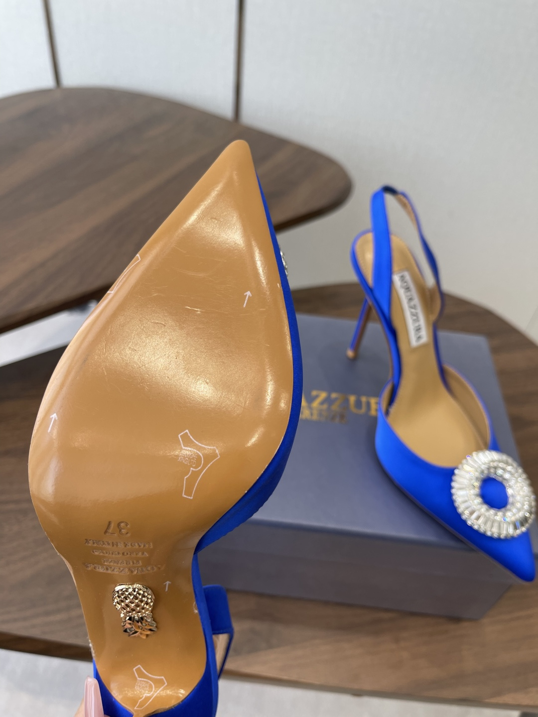 這款鞋子是AAAAA 1:1 質量(非常棒). 使用了和原版一模一樣的材料. 商標部分也保持了和Aquazzura一樣. 圖片拍攝是實物鞋子拍攝, 您所收到的實物保證和我們圖片一模一樣.