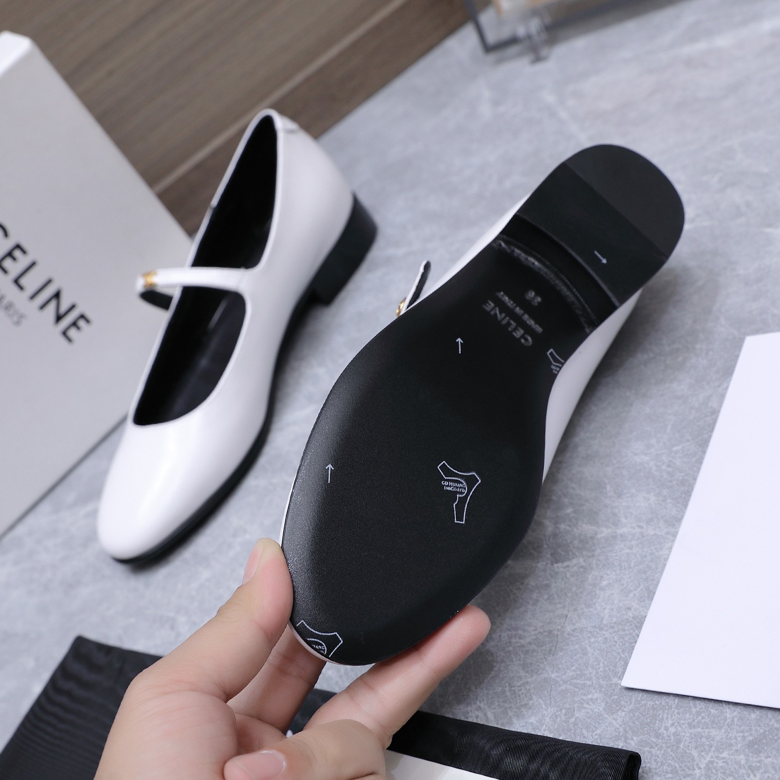 這款鞋子是AAAAA 1:1 質量(非常棒). 使用了和原版一模一樣的材料. 商標部分也保持了和思琳/赛琳/Celine一樣. 圖片拍攝是實物鞋子拍攝, 您所收到的實物保證和我們圖片一模一樣.