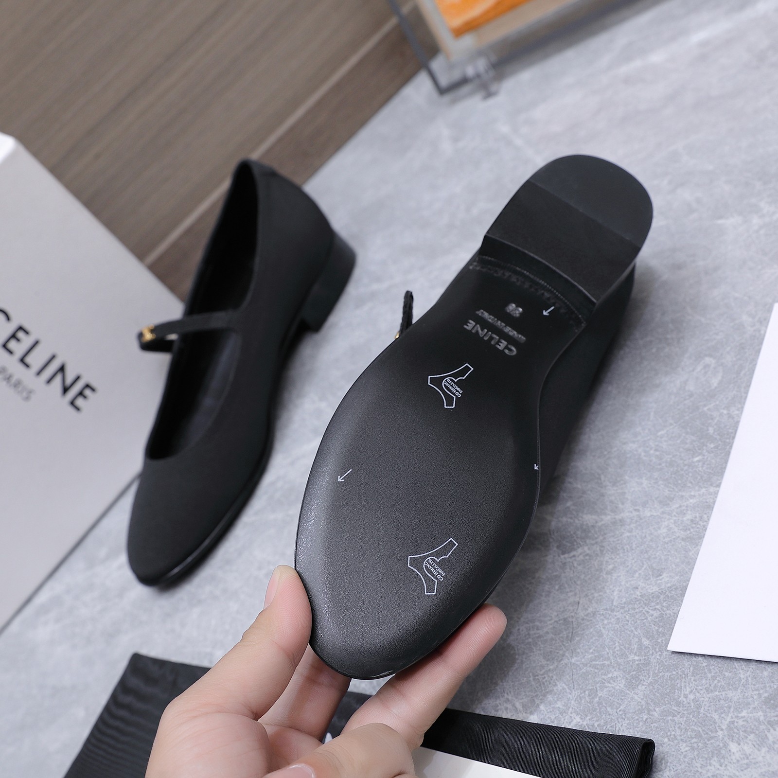 這款鞋子是AAAAA 1:1 質量(非常棒). 使用了和原版一模一樣的材料. 商標部分也保持了和思琳/赛琳/Celine一樣. 圖片拍攝是實物鞋子拍攝, 您所收到的實物保證和我們圖片一模一樣.