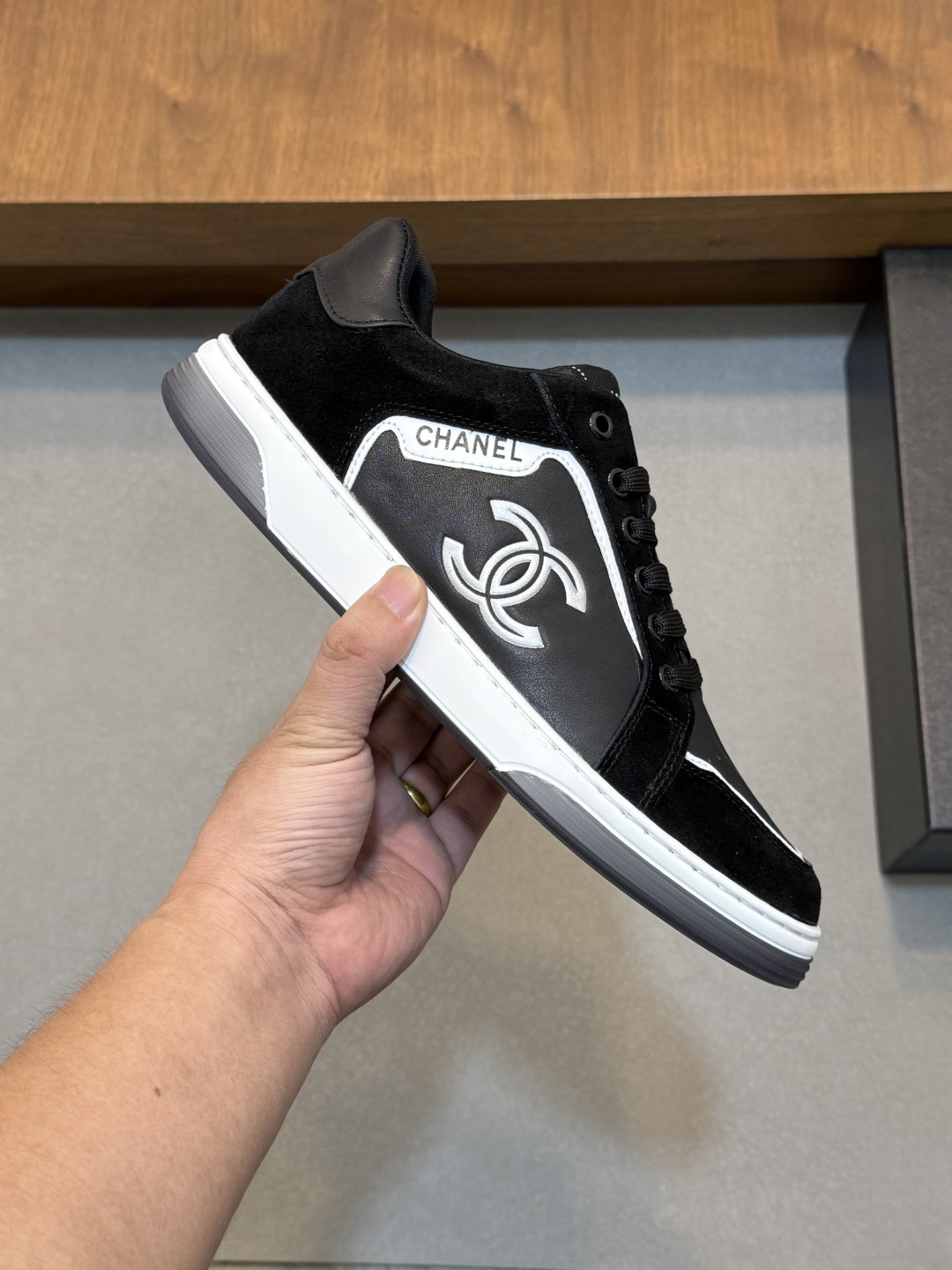 這款鞋子是AAAAA 1:1 質量(非常棒). 使用了和原版一模一樣的材料. 商標部分也保持了和香奈兒/Chanel一樣. 圖片拍攝是實物鞋子拍攝, 您所收到的實物保證和我們圖片一模一樣.