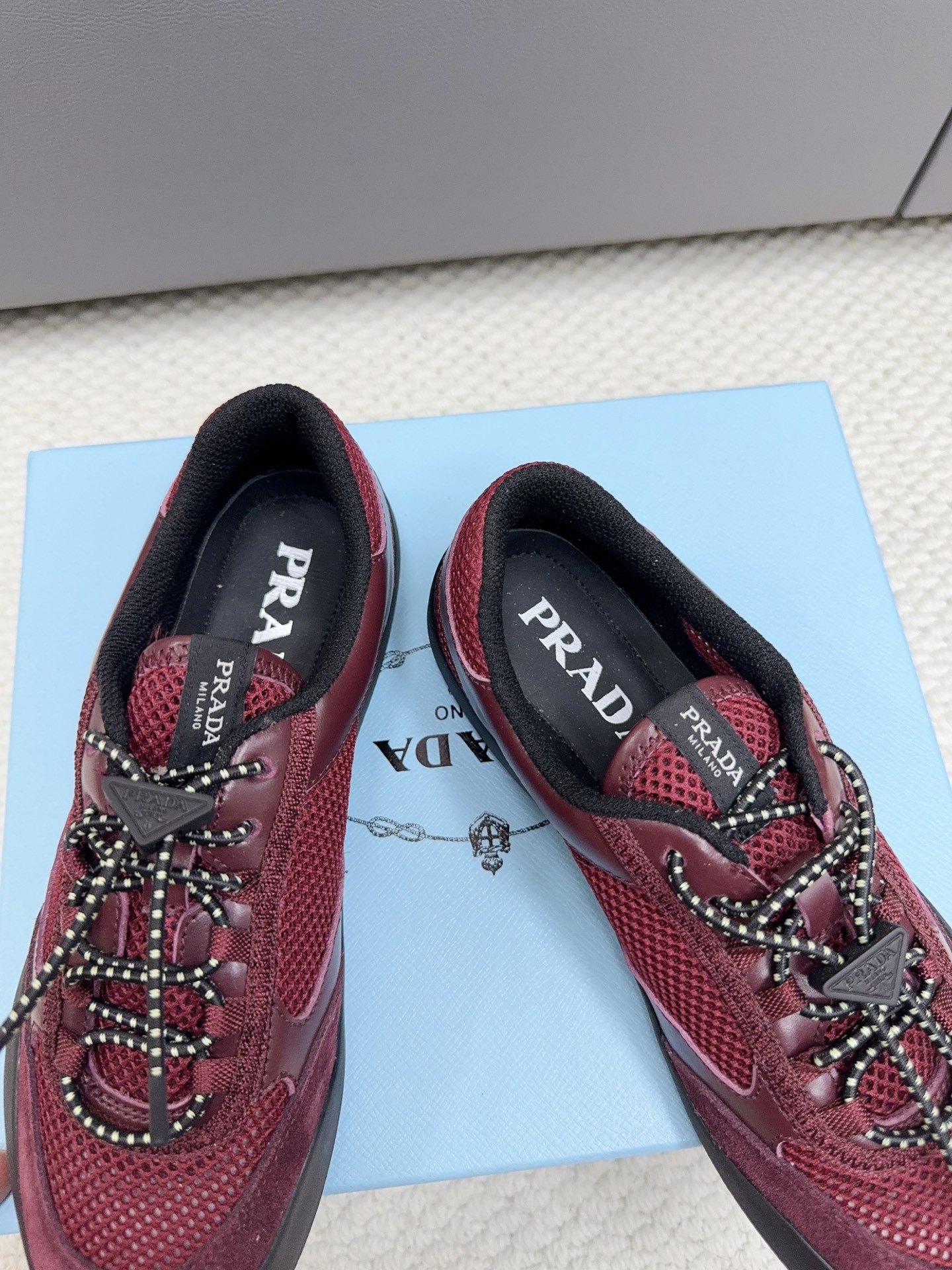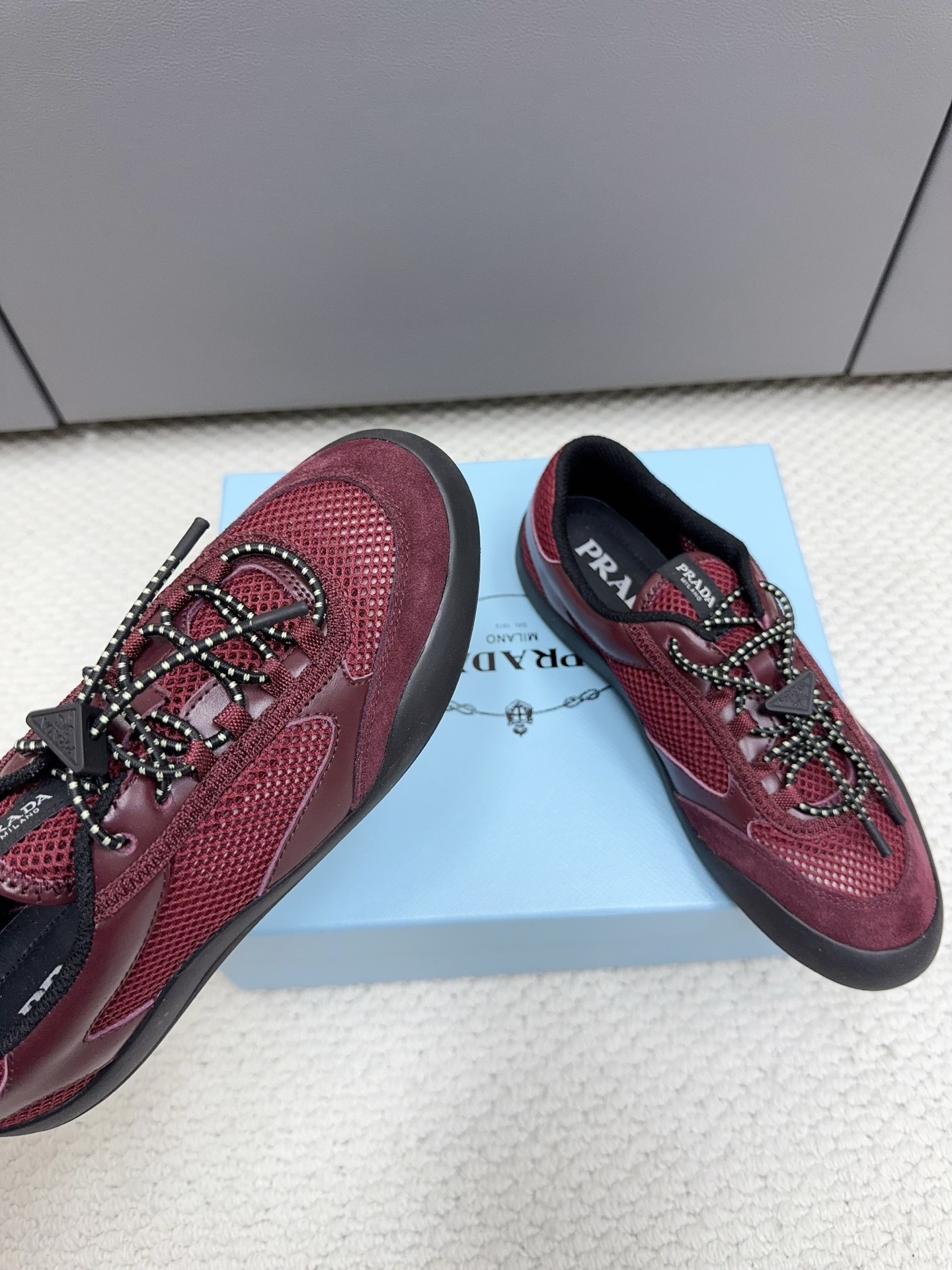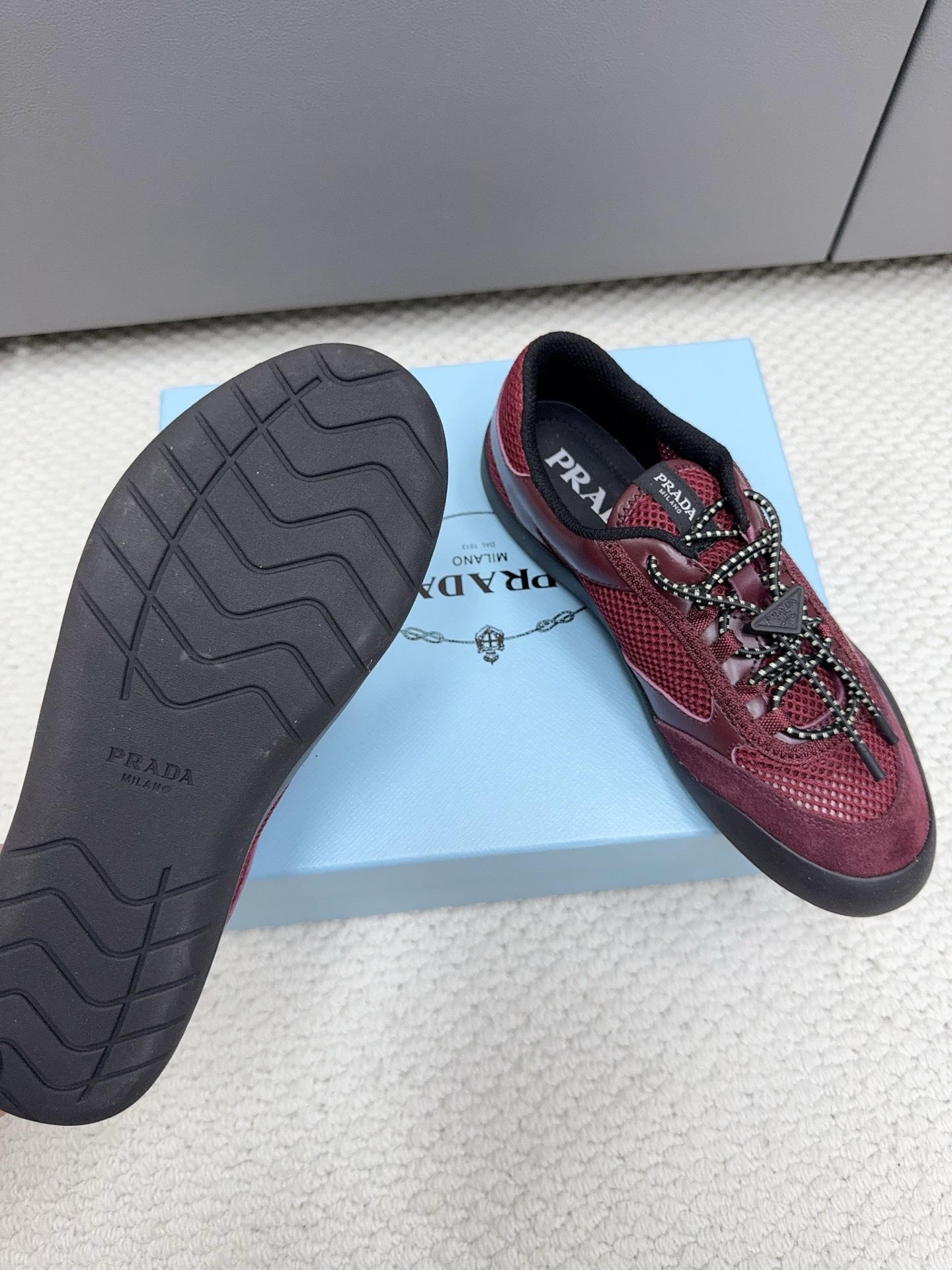 這款鞋子是AAAAA 1:1 質量(非常棒). 使用了和原版一模一樣的材料. 商標部分也保持了和普拉達/Prada一樣. 圖片拍攝是實物鞋子拍攝, 您所收到的實物保證和我們圖片一模一樣.