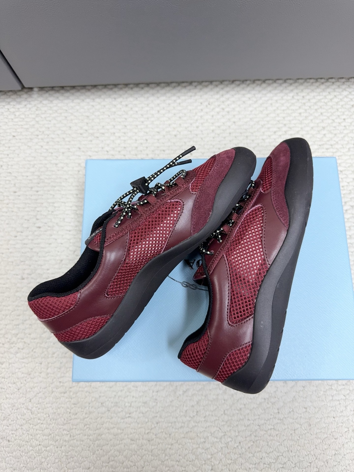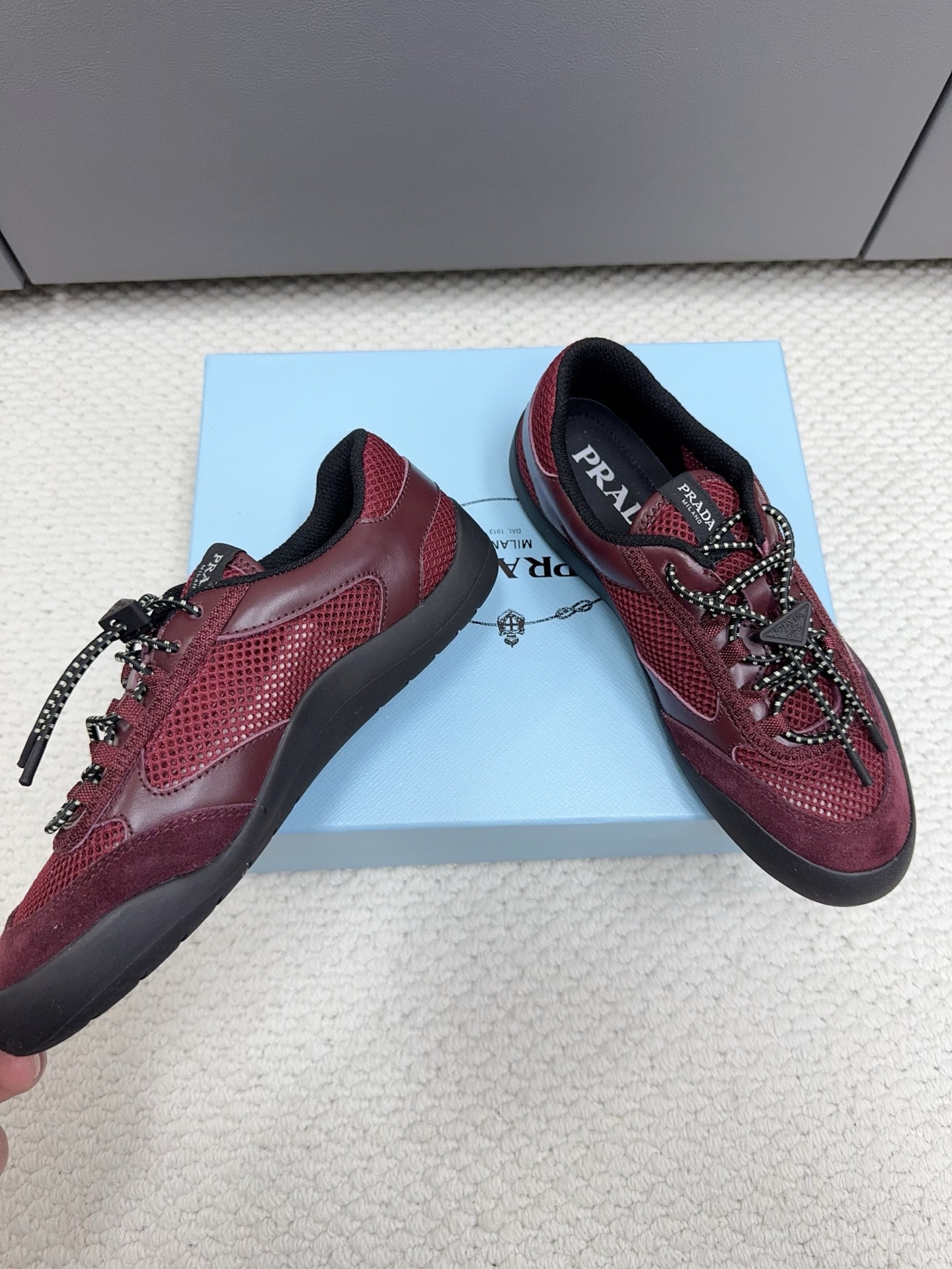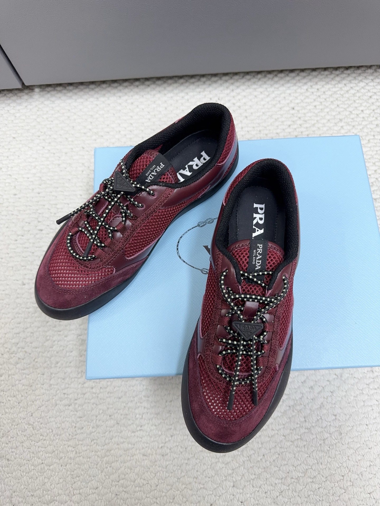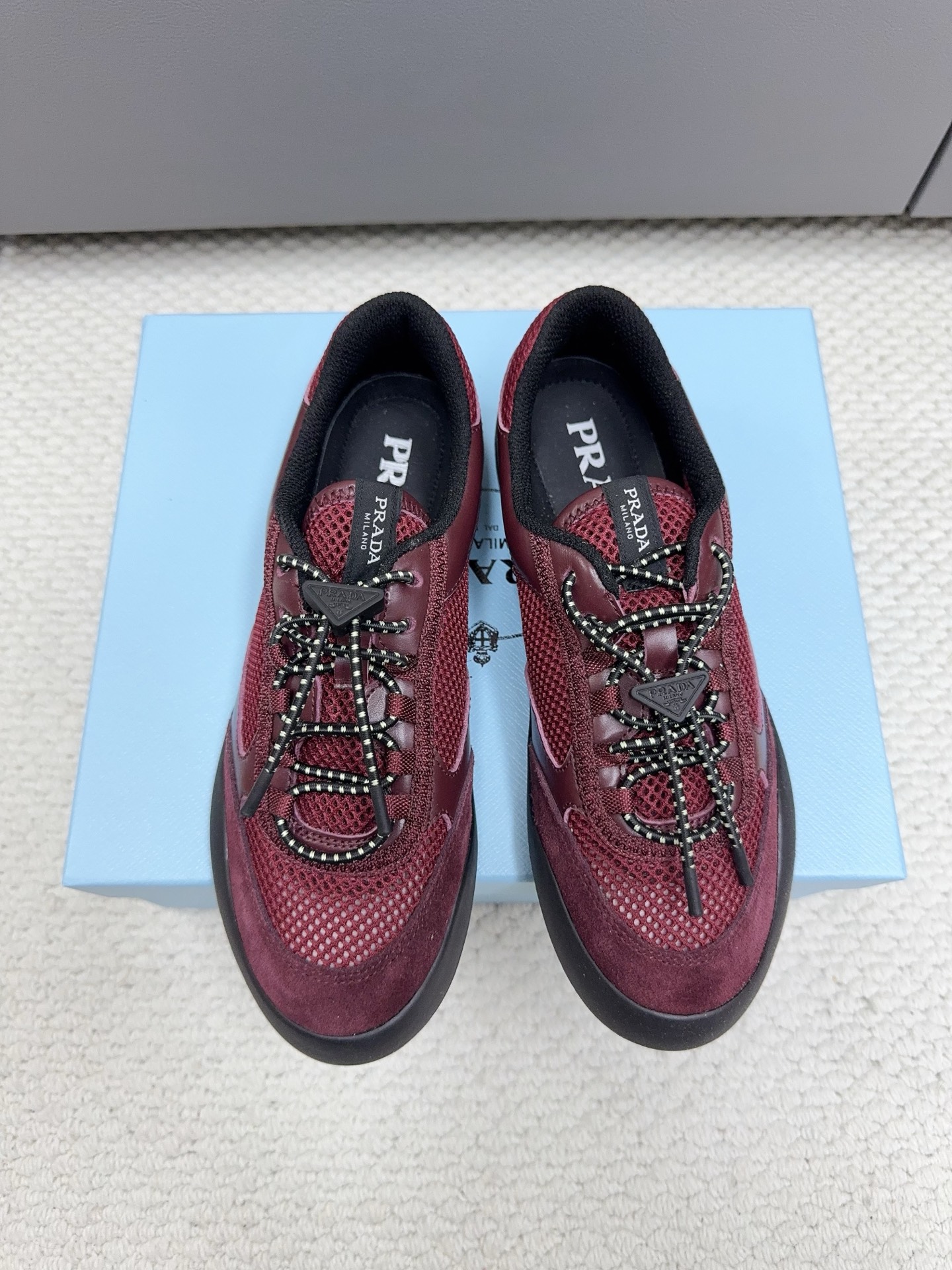 這款鞋子是AAAAA 1:1 質量(非常棒). 使用了和原版一模一樣的材料. 商標部分也保持了和普拉達/Prada一樣. 圖片拍攝是實物鞋子拍攝, 您所收到的實物保證和我們圖片一模一樣.