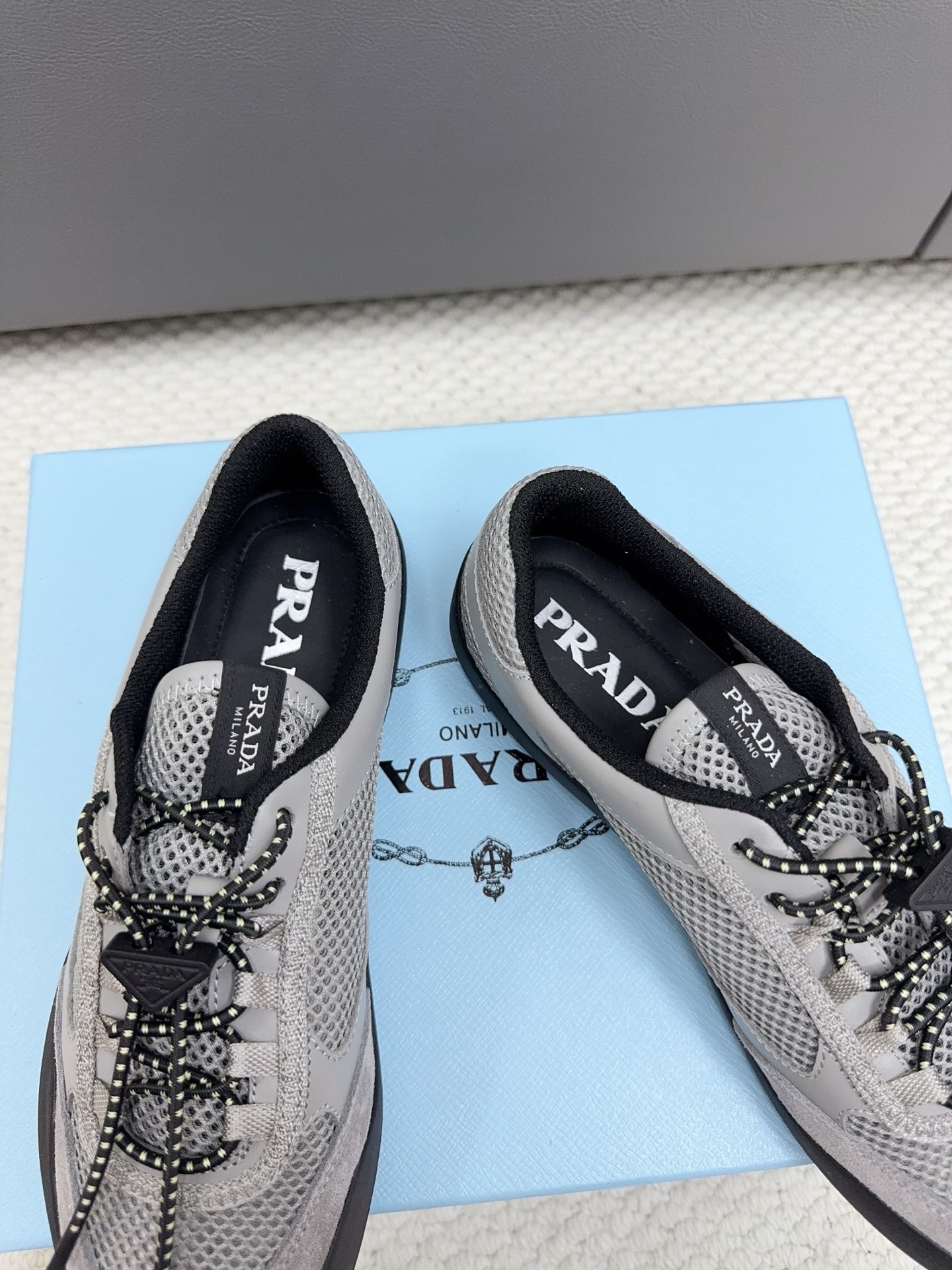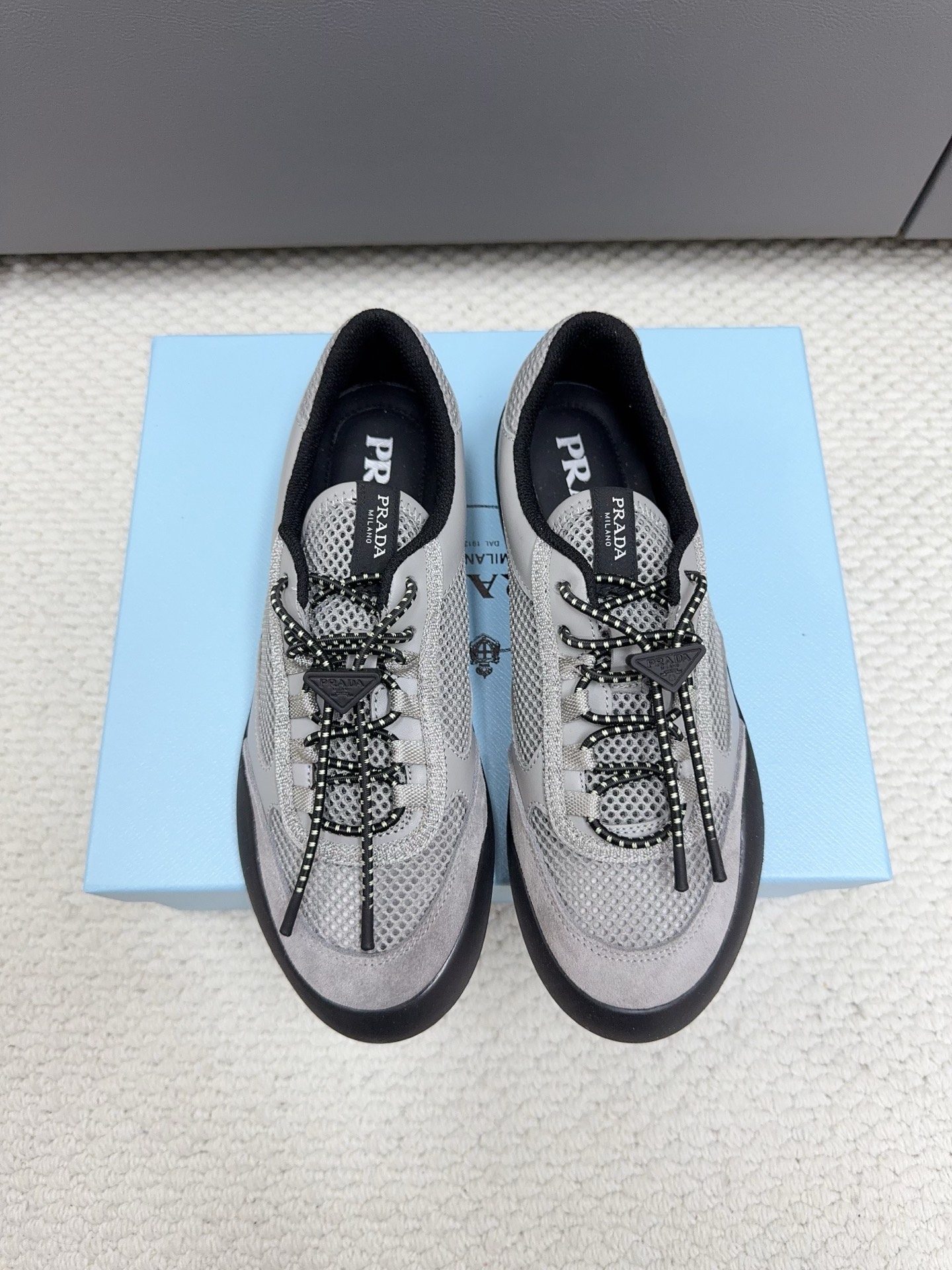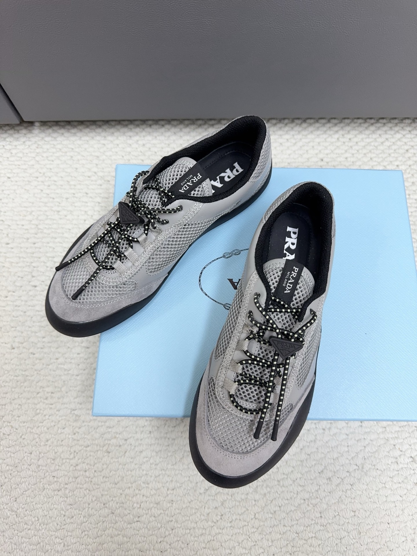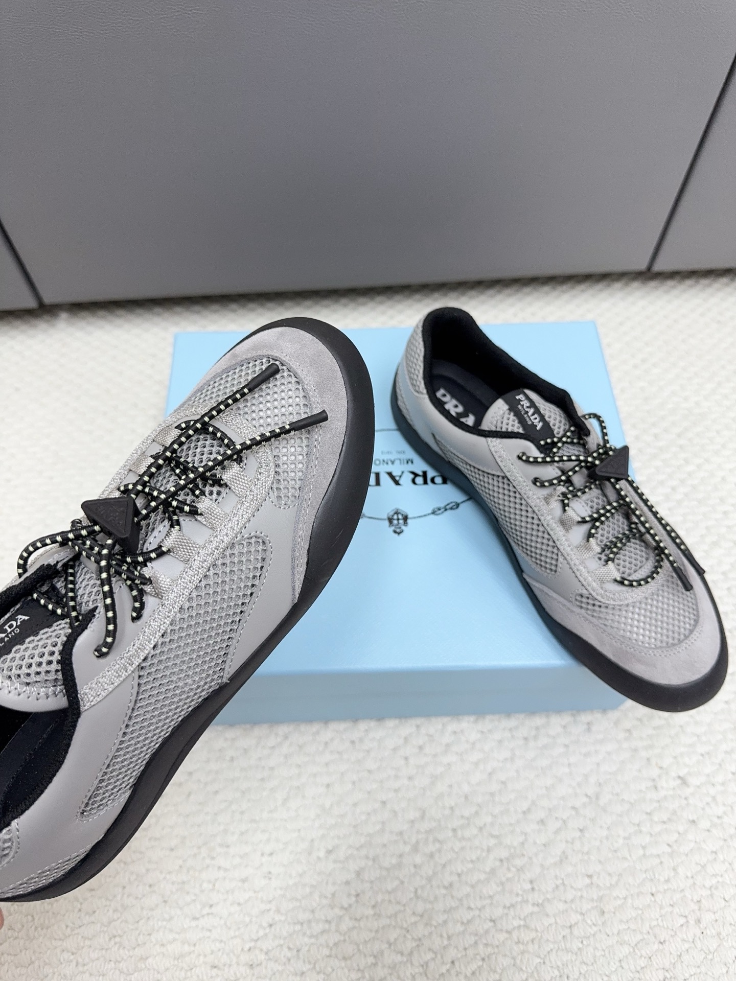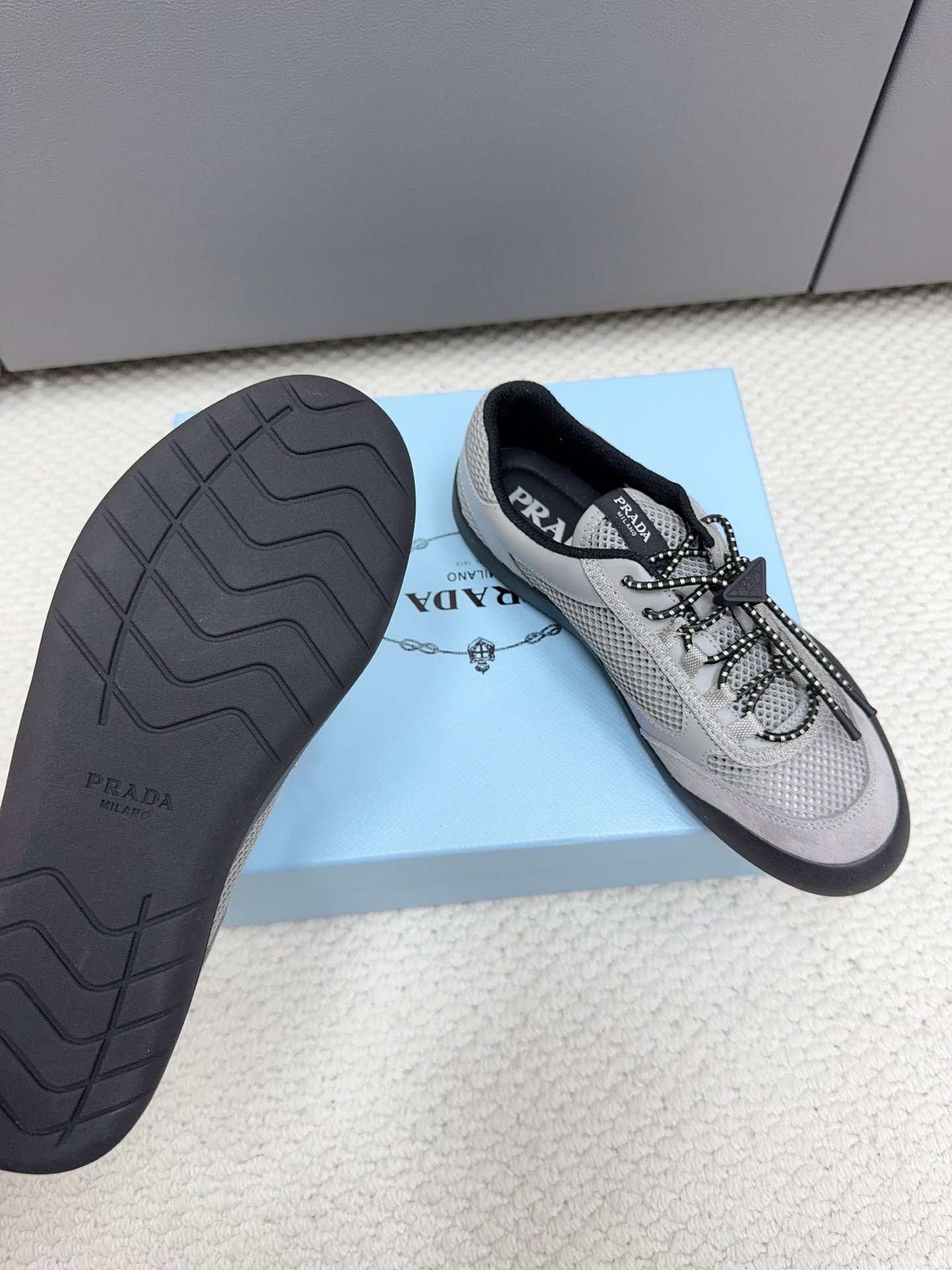 這款鞋子是AAAAA 1:1 質量(非常棒). 使用了和原版一模一樣的材料. 商標部分也保持了和普拉達/Prada一樣. 圖片拍攝是實物鞋子拍攝, 您所收到的實物保證和我們圖片一模一樣.