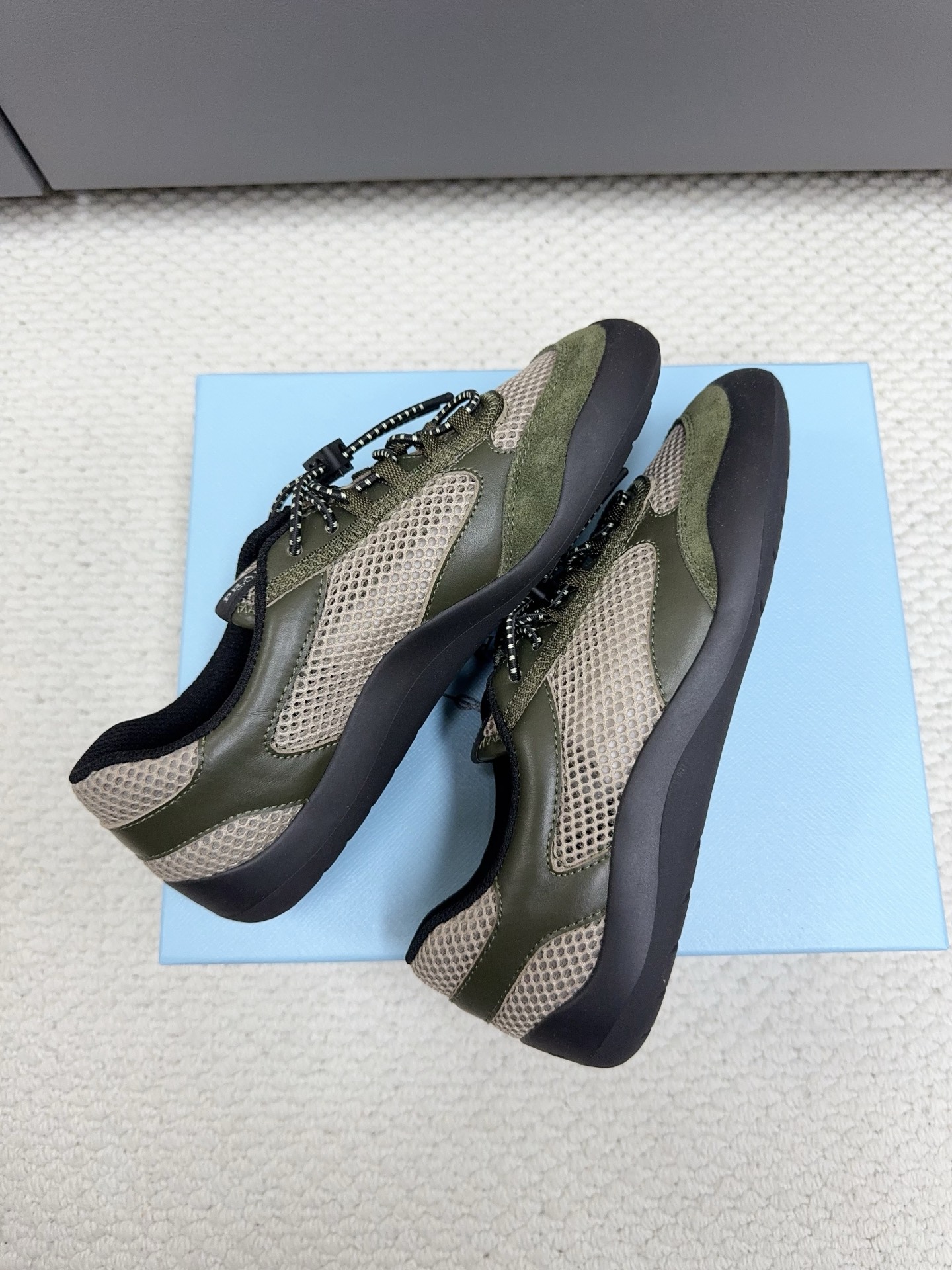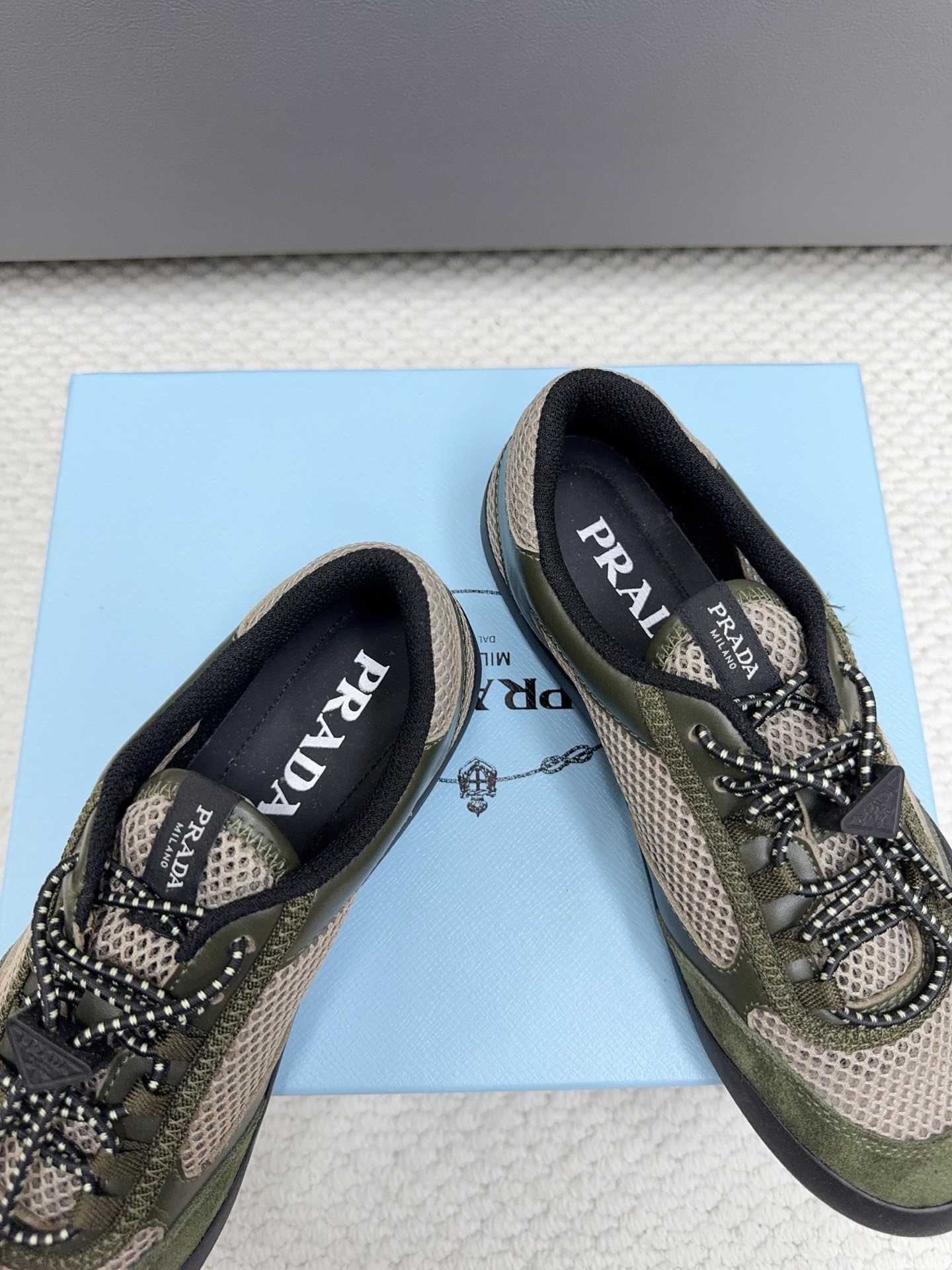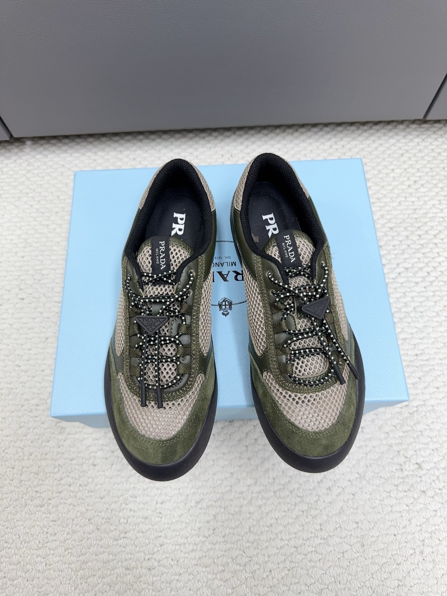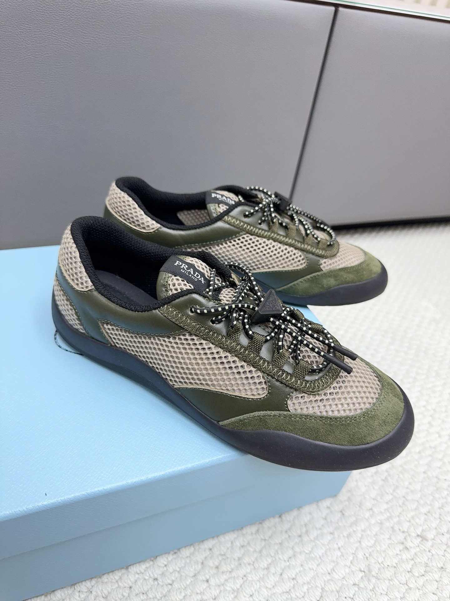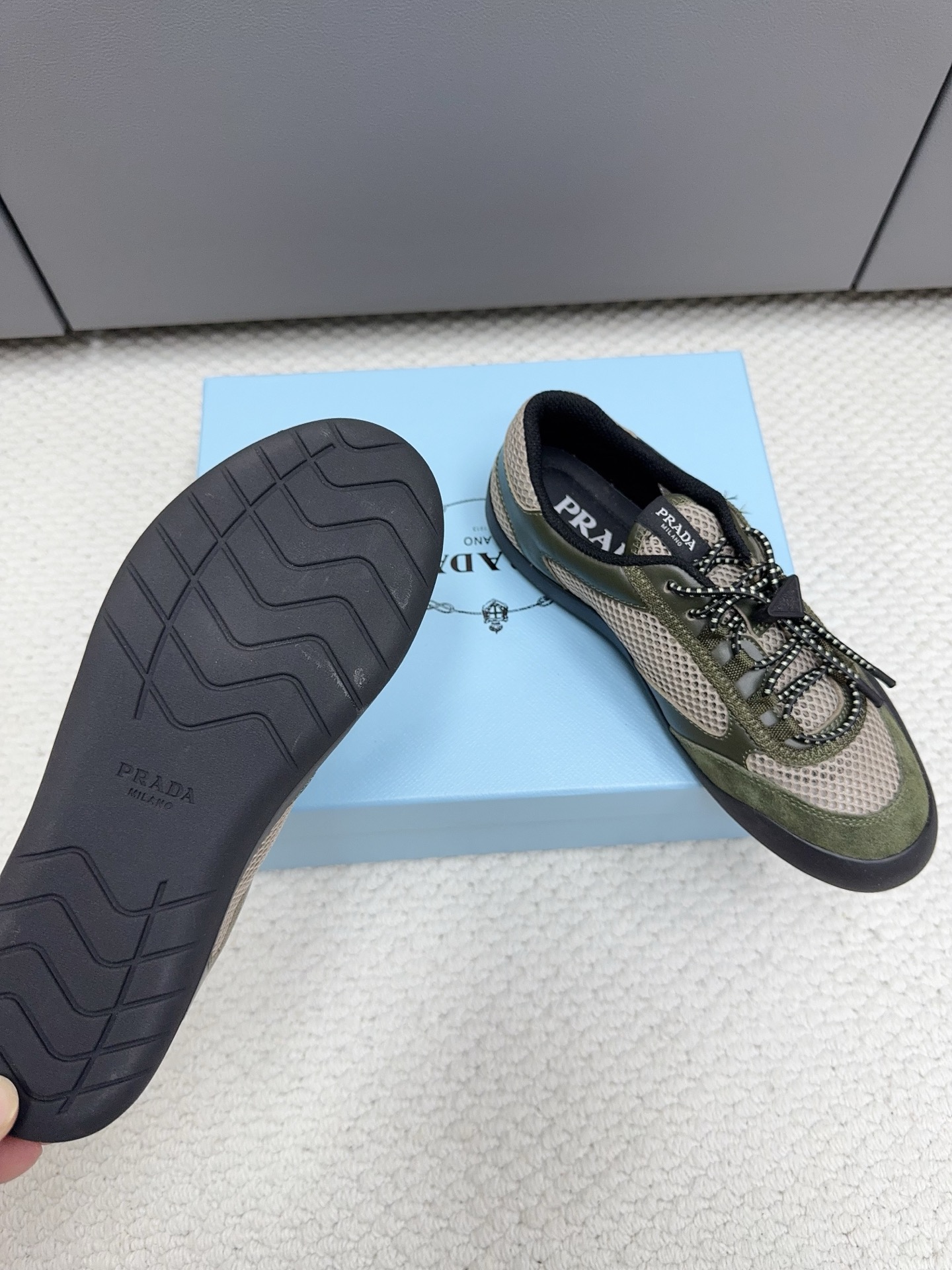 這款鞋子是AAAAA 1:1 質量(非常棒). 使用了和原版一模一樣的材料. 商標部分也保持了和普拉達/Prada一樣. 圖片拍攝是實物鞋子拍攝, 您所收到的實物保證和我們圖片一模一樣.