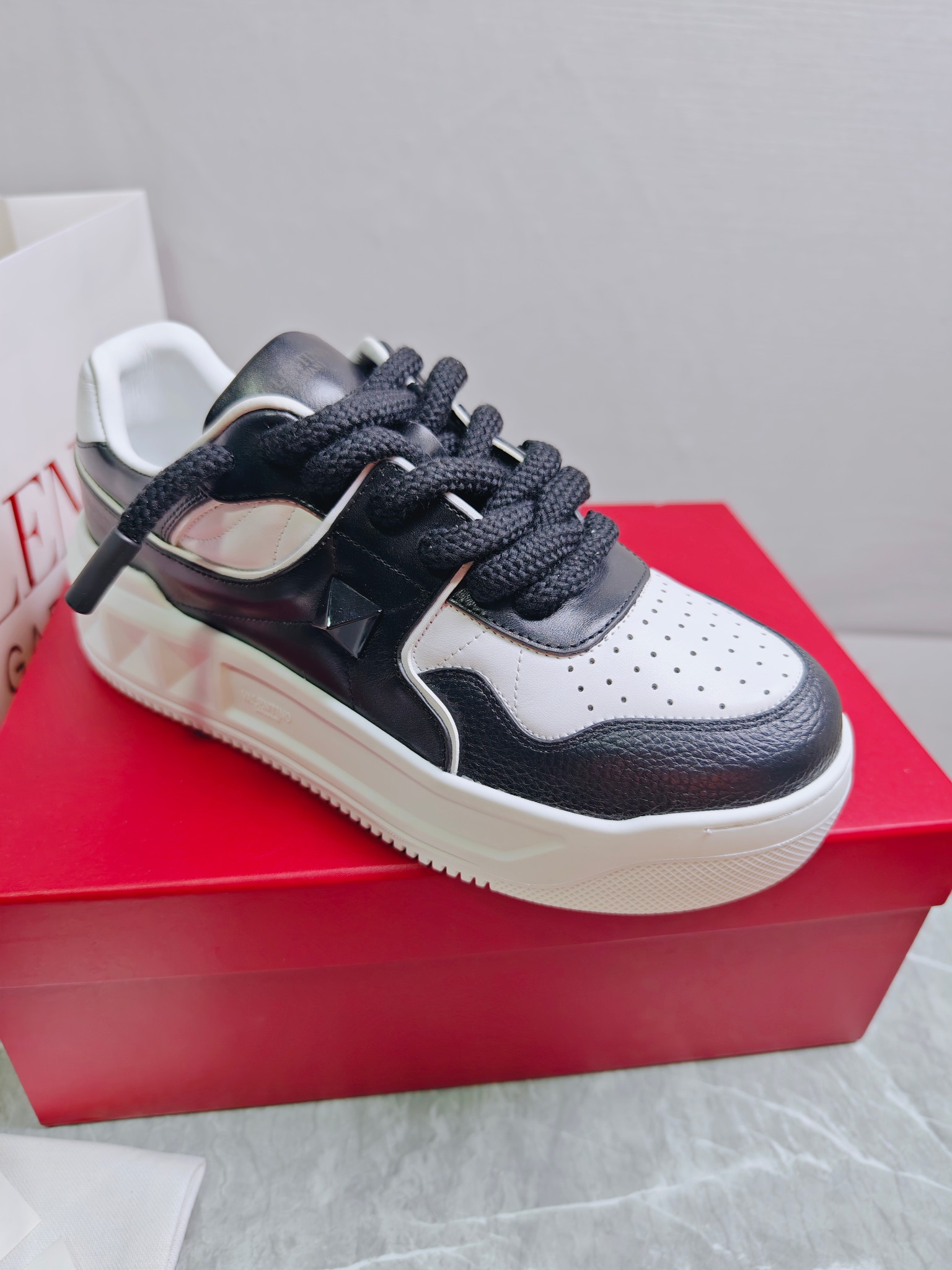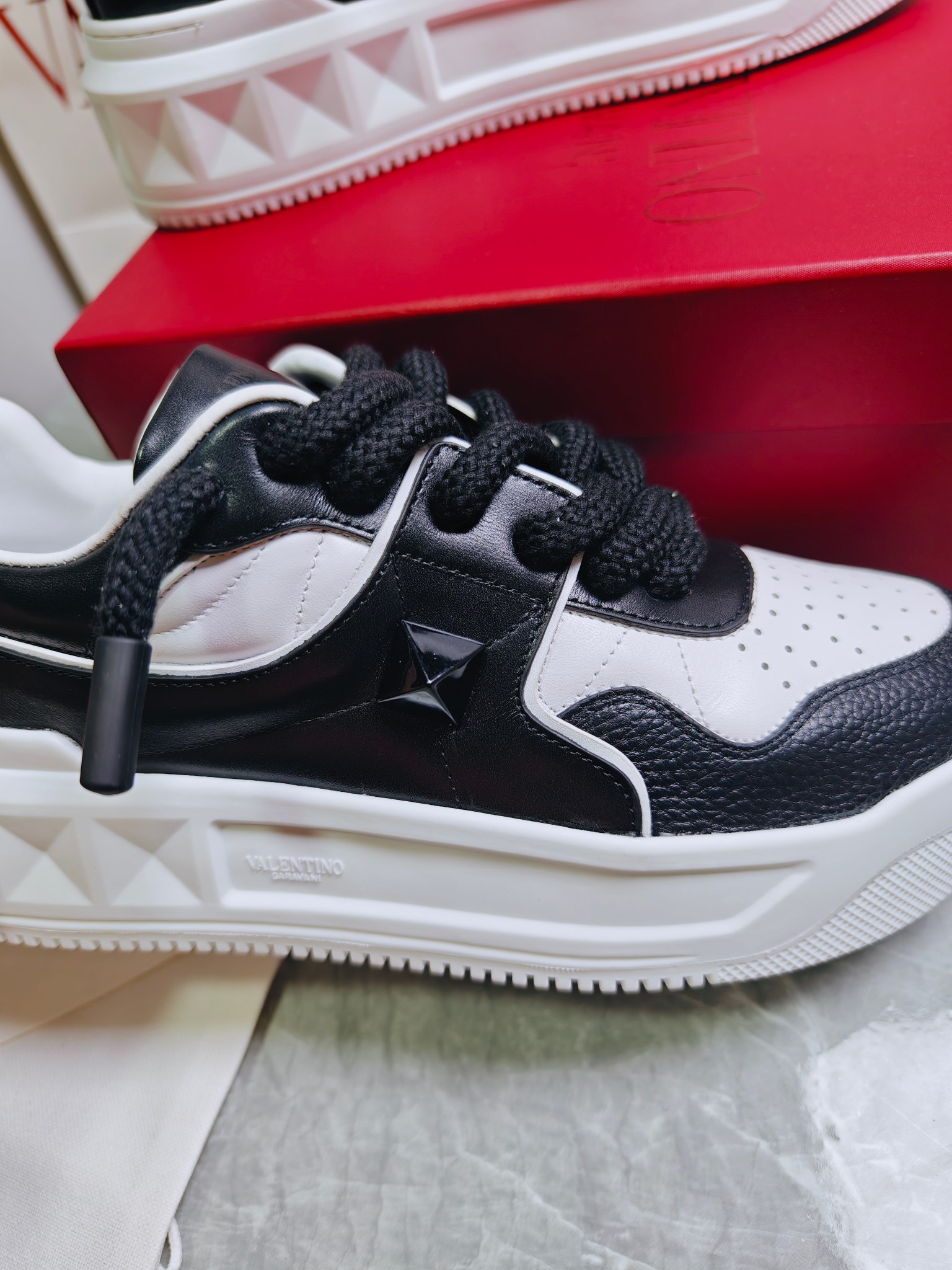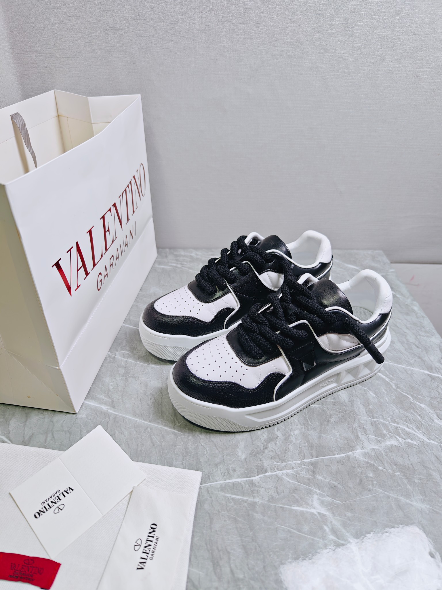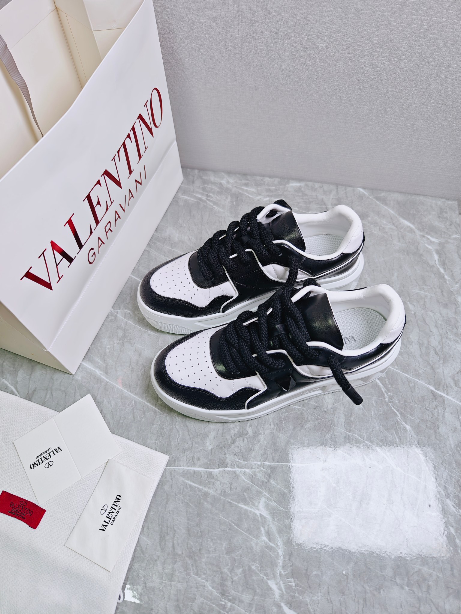 這款鞋子是AAAAA 1:1 質量(非常棒). 使用了和原版一模一樣的材料. 商標部分也保持了和瓦倫蒂諾/Valentino一樣. 圖片拍攝是實物鞋子拍攝, 您所收到的實物保證和我們圖片一模一樣.