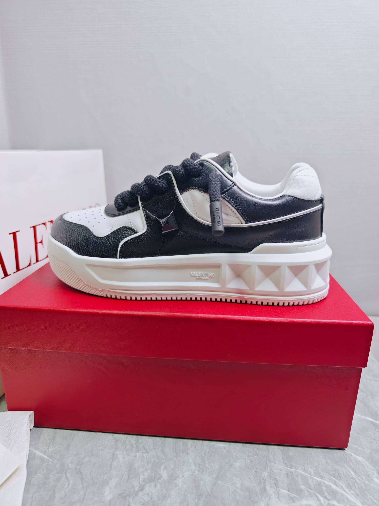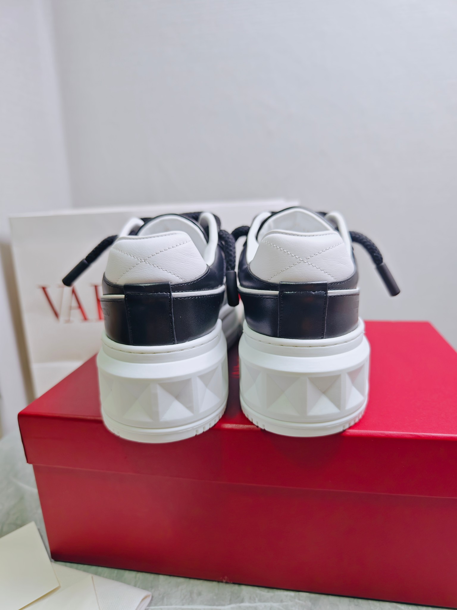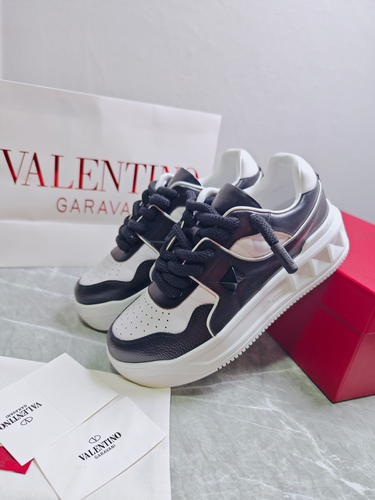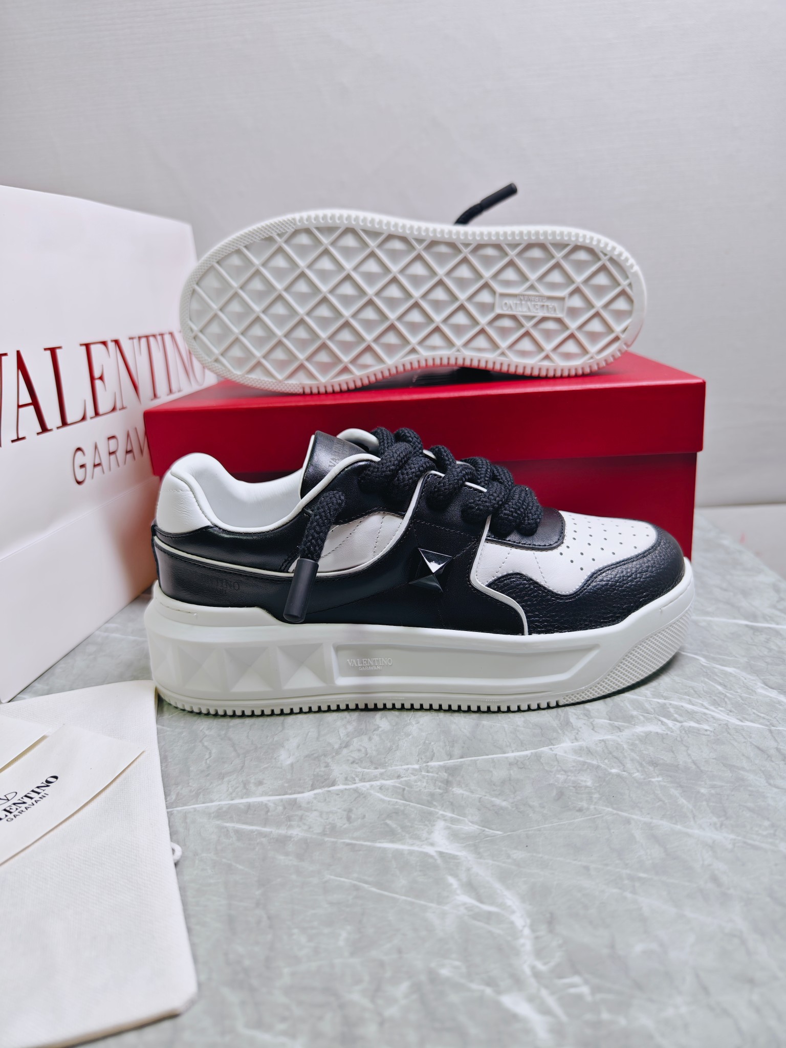 這款鞋子是AAAAA 1:1 質量(非常棒). 使用了和原版一模一樣的材料. 商標部分也保持了和瓦倫蒂諾/Valentino一樣. 圖片拍攝是實物鞋子拍攝, 您所收到的實物保證和我們圖片一模一樣.