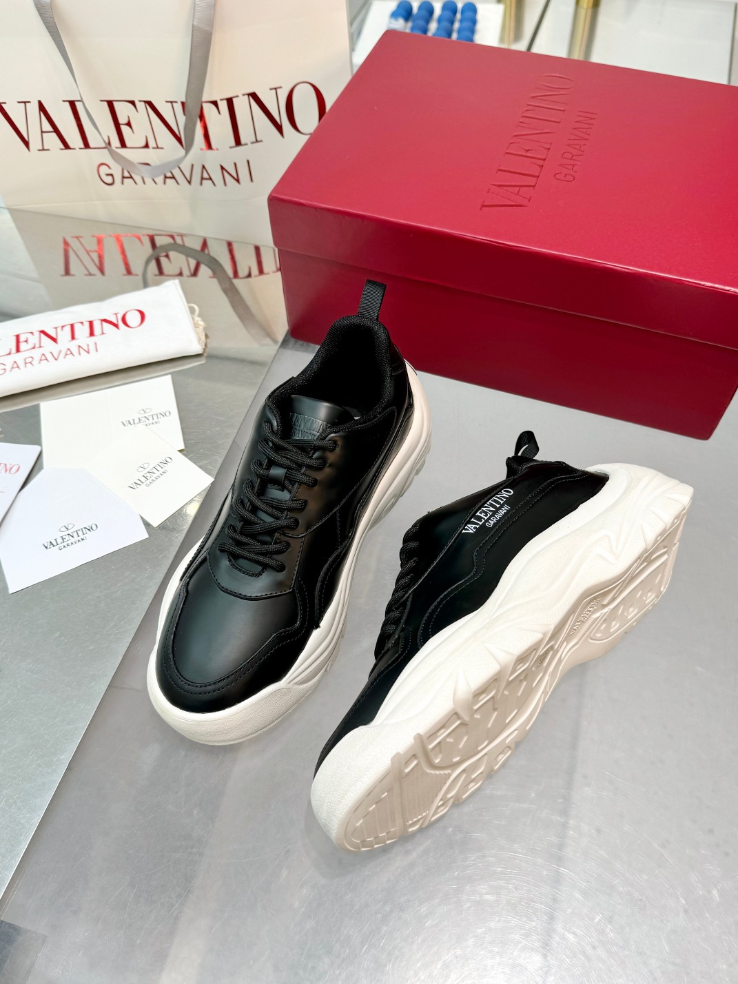 這款鞋子是AAAAA 1:1 質量(非常棒). 使用了和原版一模一樣的材料. 商標部分也保持了和瓦倫蒂諾/Valentino一樣. 圖片拍攝是實物鞋子拍攝, 您所收到的實物保證和我們圖片一模一樣.