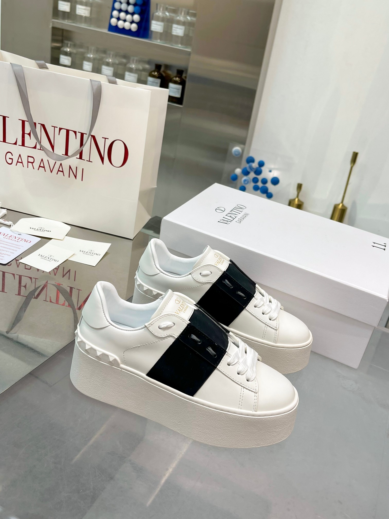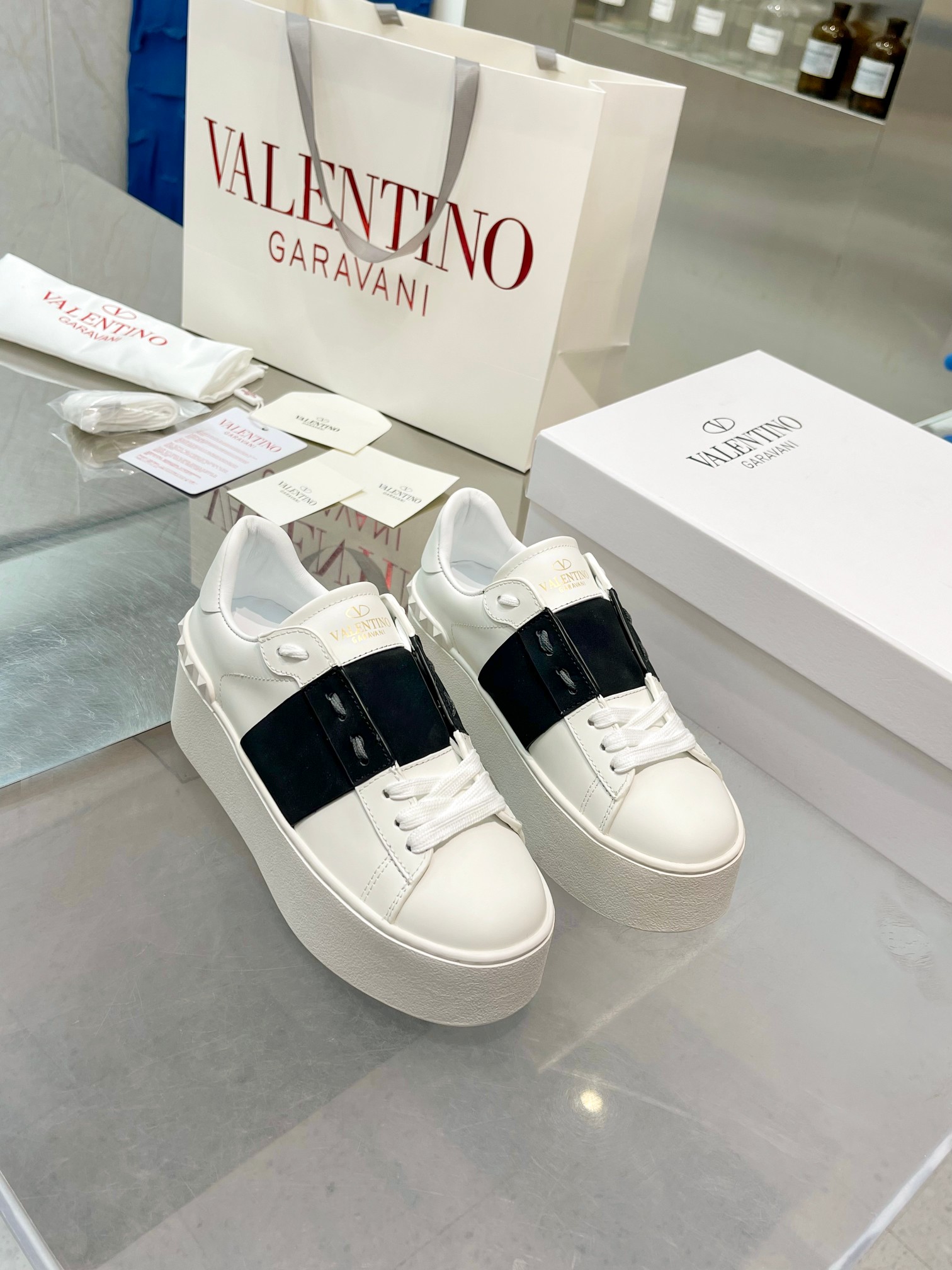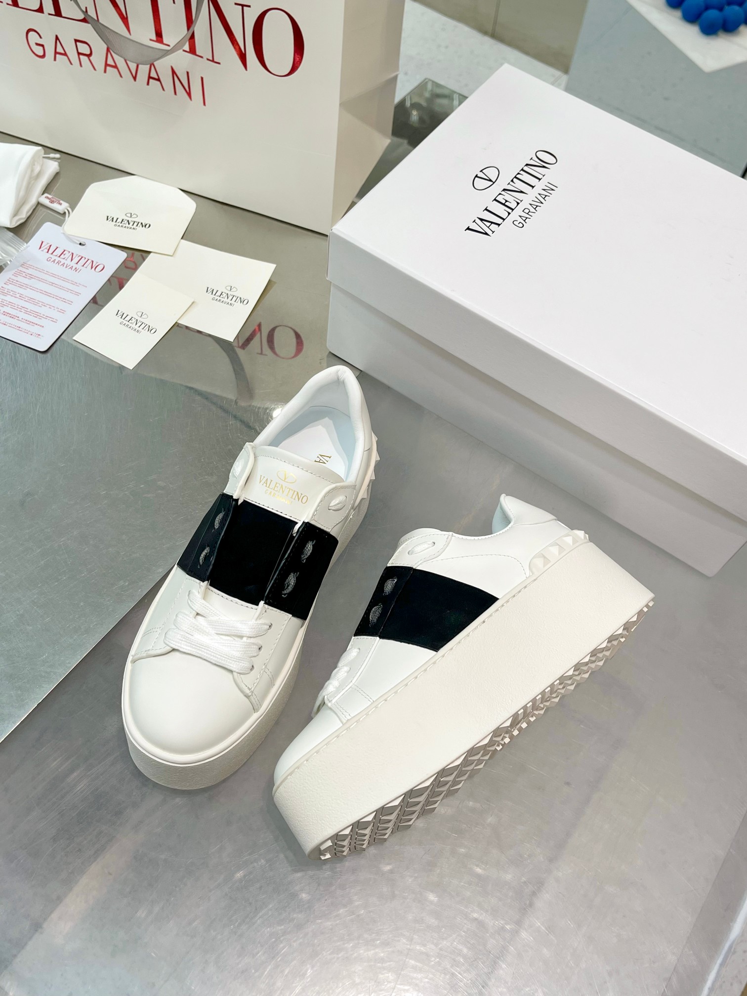 這款鞋子是AAAAA 1:1 質量(非常棒). 使用了和原版一模一樣的材料. 商標部分也保持了和瓦倫蒂諾/Valentino一樣. 圖片拍攝是實物鞋子拍攝, 您所收到的實物保證和我們圖片一模一樣.