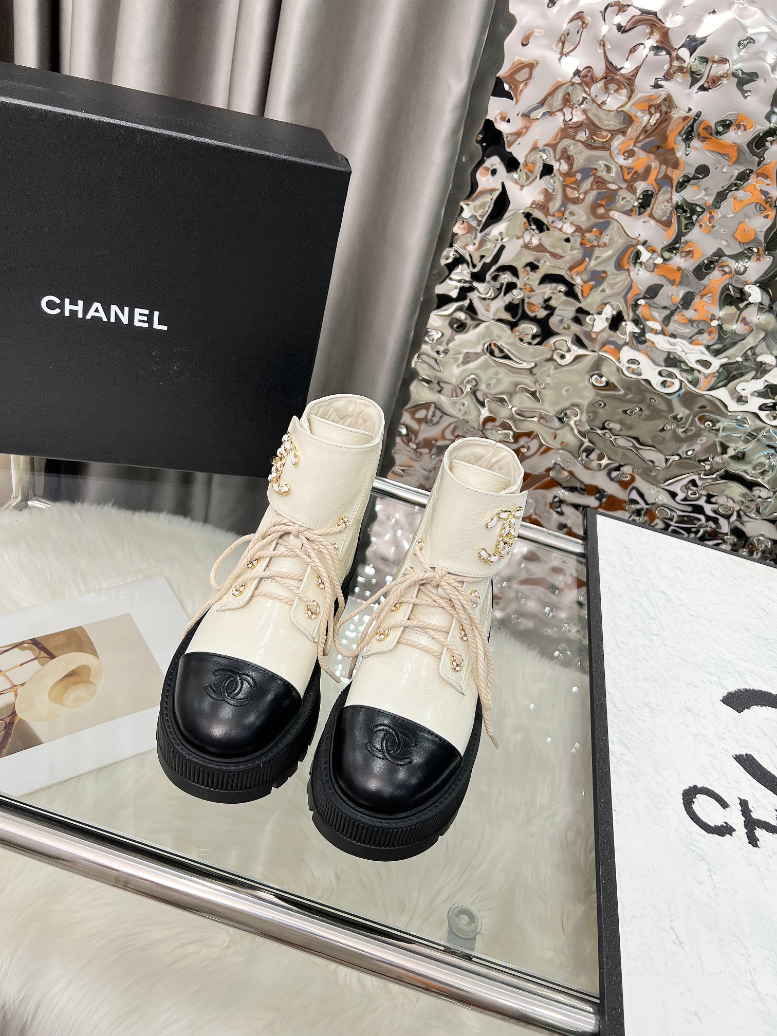 這款鞋子是AAAAA 1:1 質量(非常棒). 使用了和原版一模一樣的材料. 商標部分也保持了和香奈兒/Chanel一樣. 圖片拍攝是實物鞋子拍攝, 您所收到的實物保證和我們圖片一模一樣.