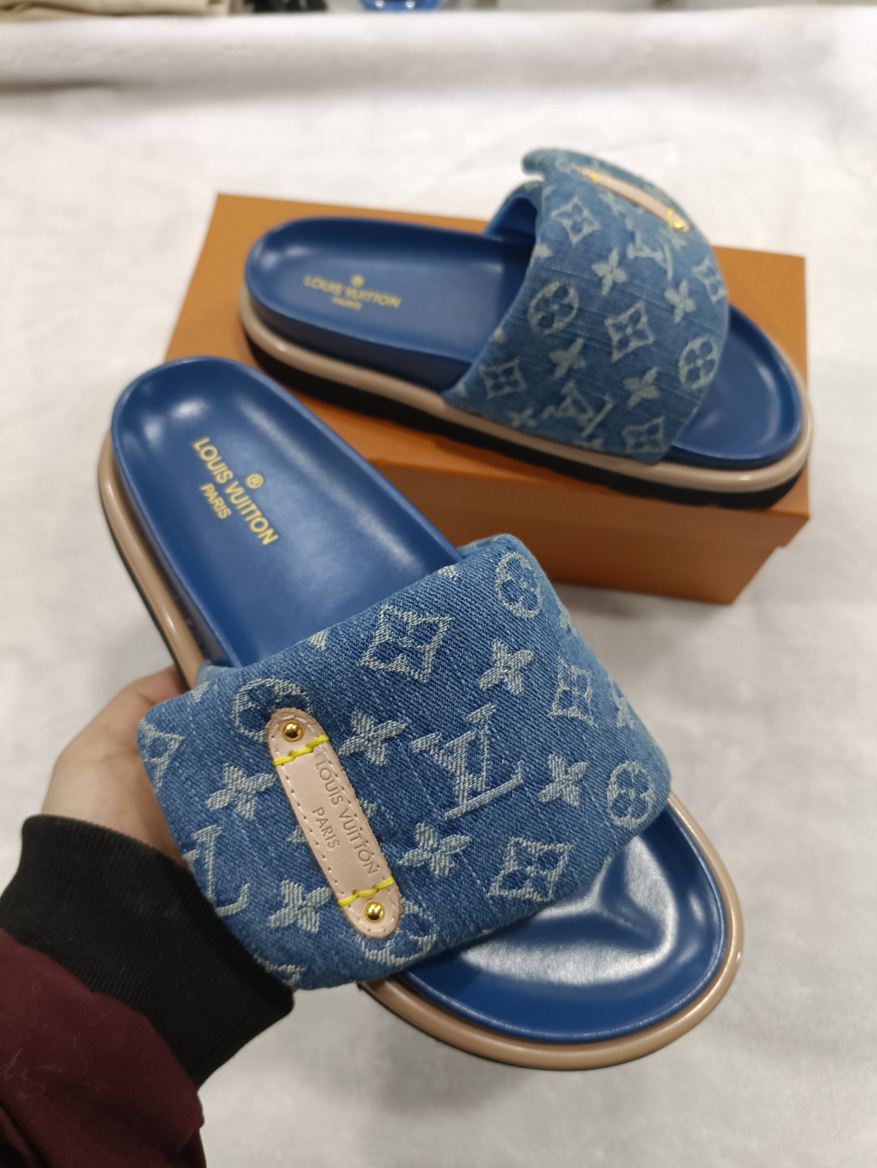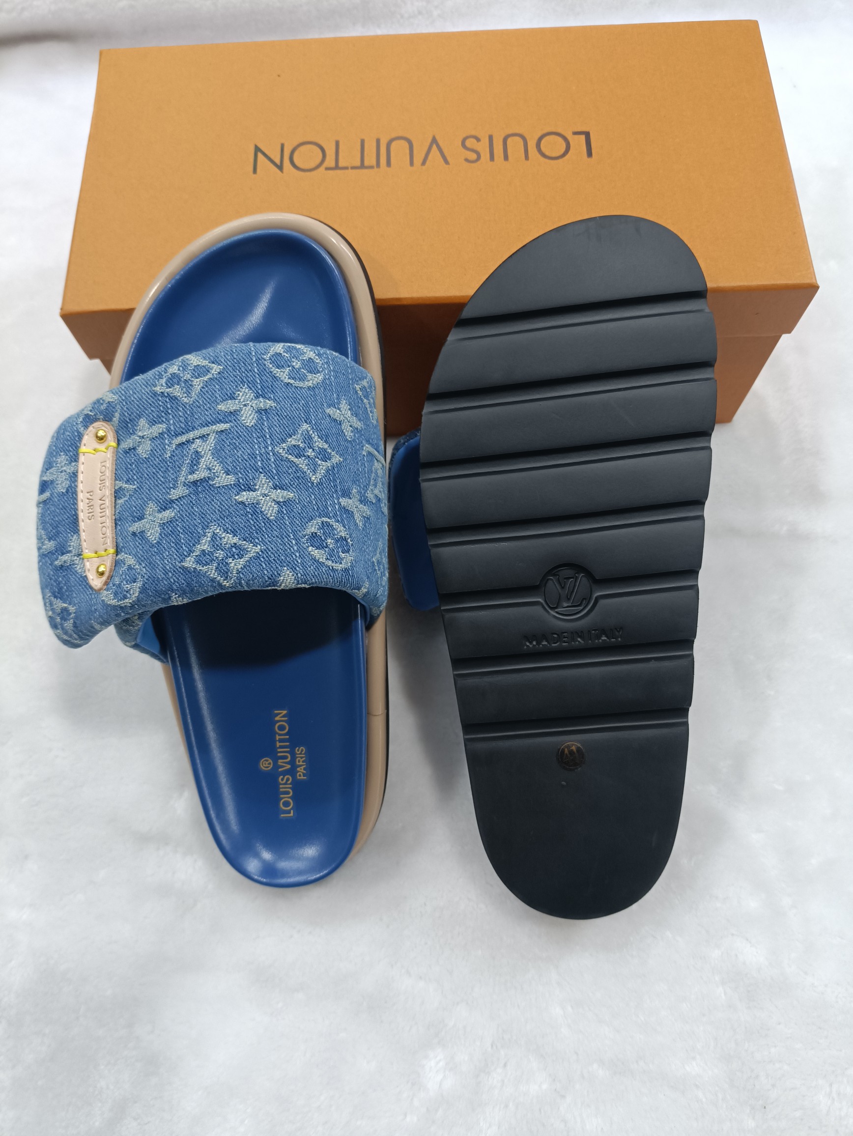 這款鞋子是AAAAA 1:1 質量(非常棒). 使用了和原版一模一樣的材料. 商標部分也保持了和路易威登/Louis Vuitton一樣. 圖片拍攝是實物鞋子拍攝, 您所收到的實物保證和我們圖片一模一樣.