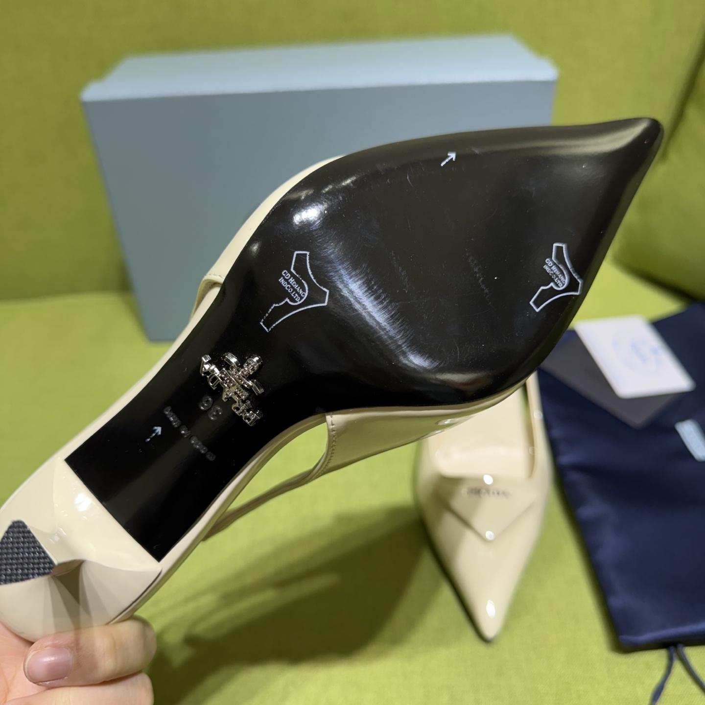 這款鞋子是AAAAA 1:1 質量(非常棒). 使用了和原版一模一樣的材料. 商標部分也保持了和普拉達/Prada一樣. 圖片拍攝是實物鞋子拍攝, 您所收到的實物保證和我們圖片一模一樣.
