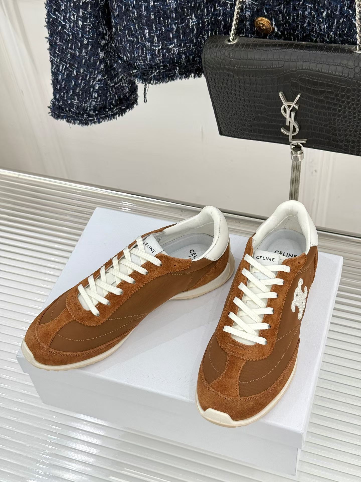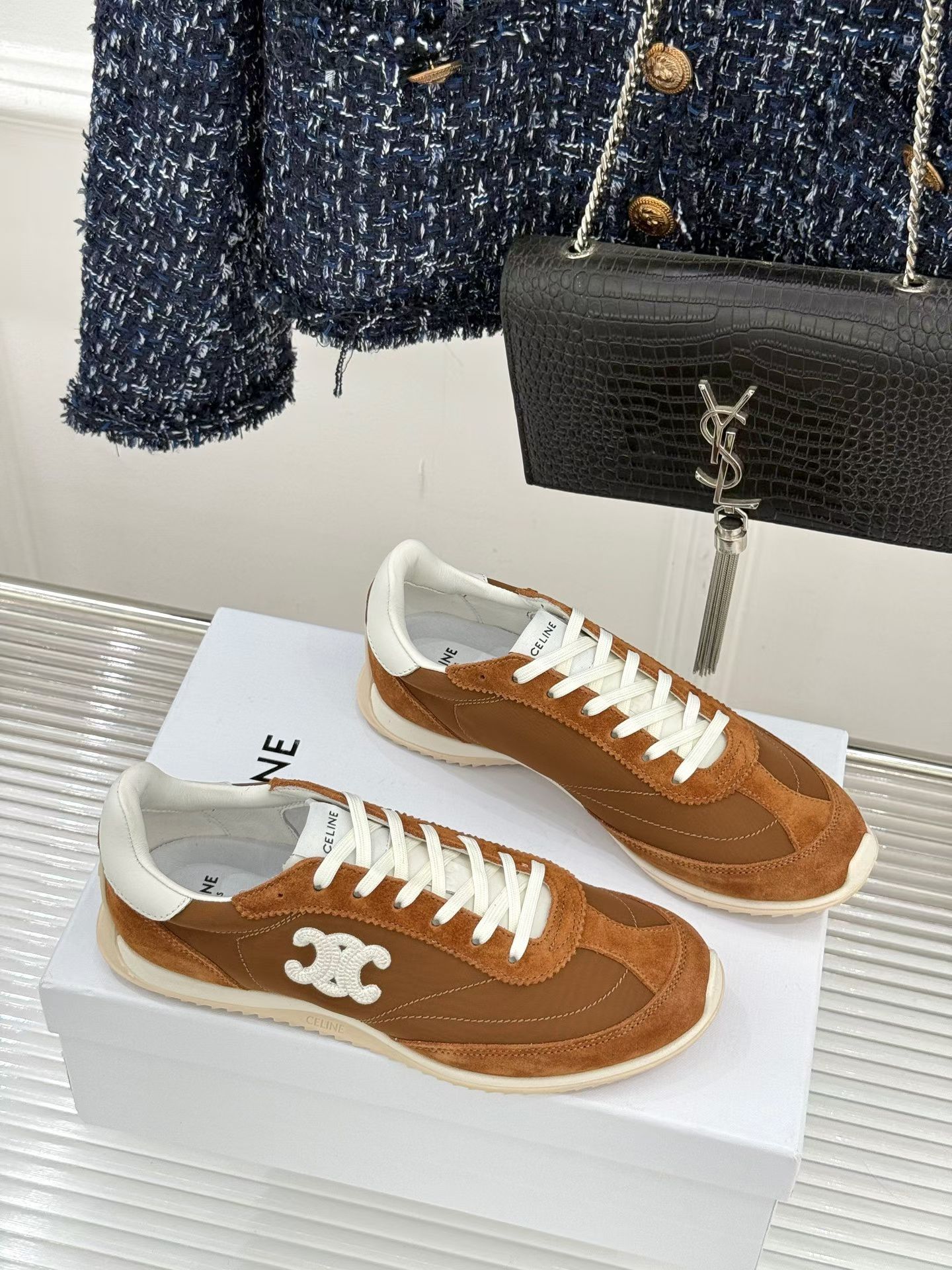 這款鞋子是AAAAA 1:1 質量(非常棒). 使用了和原版一模一樣的材料. 商標部分也保持了和思琳/赛琳/Celine一樣. 圖片拍攝是實物鞋子拍攝, 您所收到的實物保證和我們圖片一模一樣.