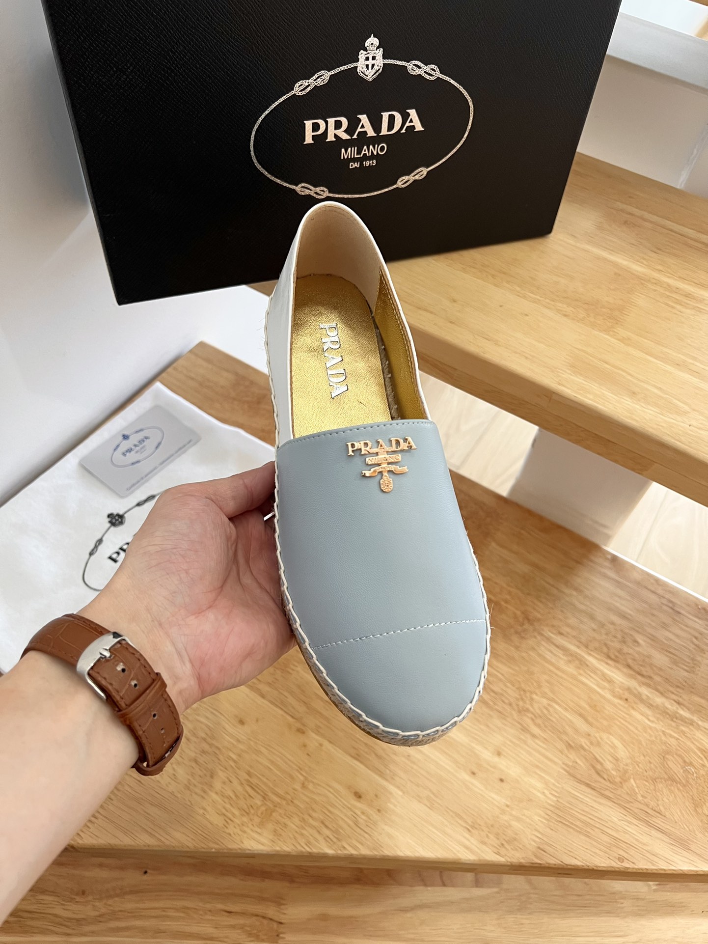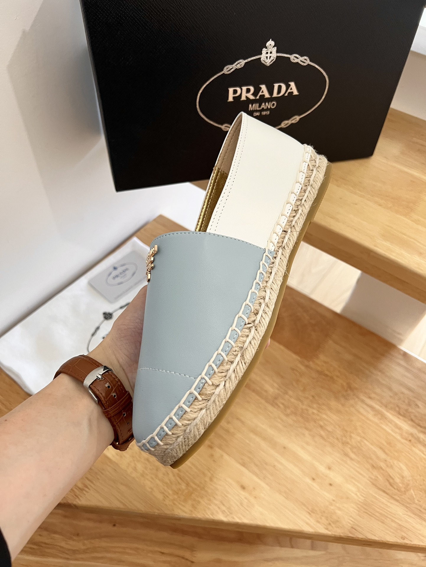 這款鞋子是AAAAA 1:1 質量(非常棒). 使用了和原版一模一樣的材料. 商標部分也保持了和普拉達/Prada一樣. 圖片拍攝是實物鞋子拍攝, 您所收到的實物保證和我們圖片一模一樣.