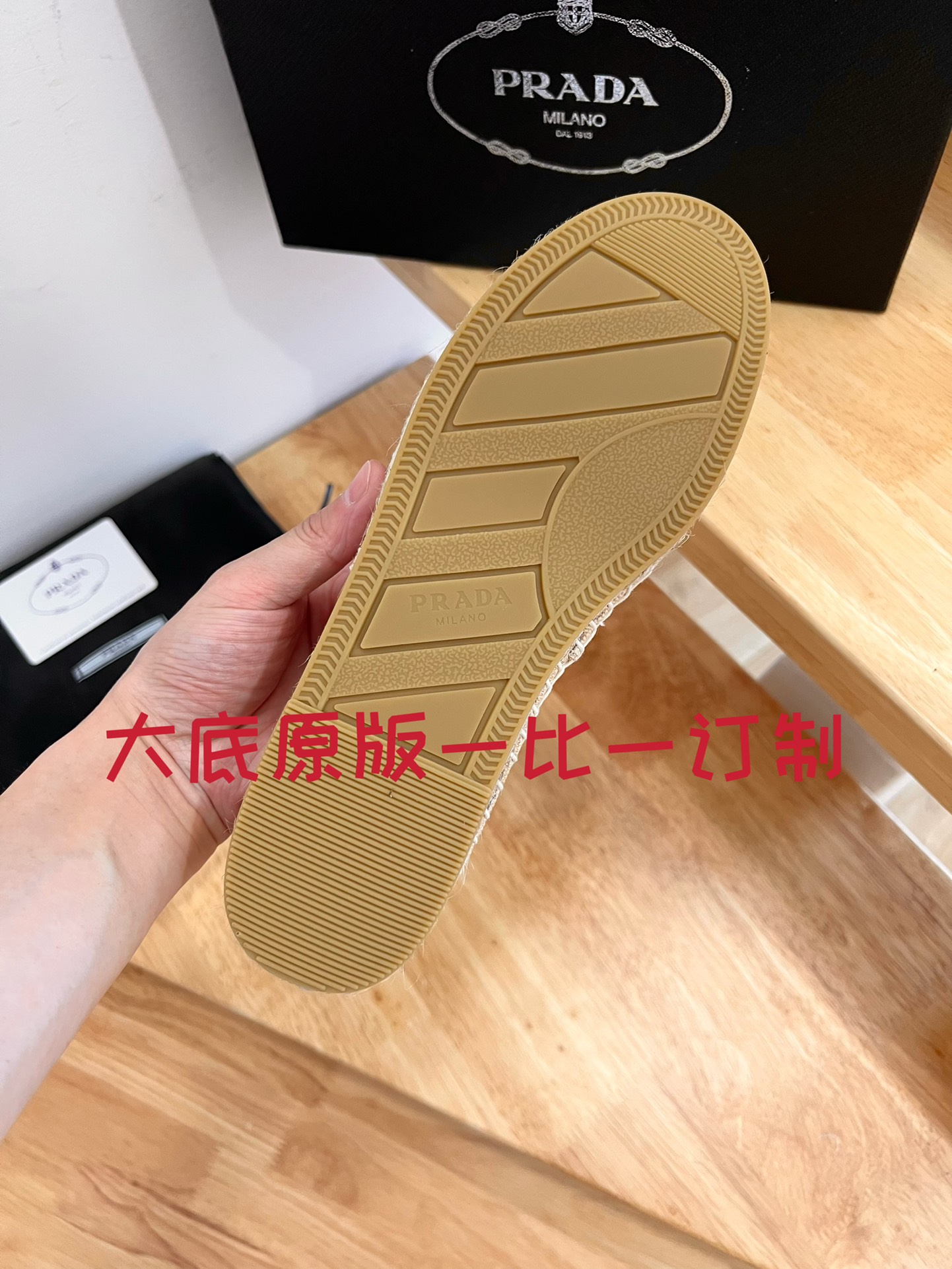 這款鞋子是AAAAA 1:1 質量(非常棒). 使用了和原版一模一樣的材料. 商標部分也保持了和普拉達/Prada一樣. 圖片拍攝是實物鞋子拍攝, 您所收到的實物保證和我們圖片一模一樣.