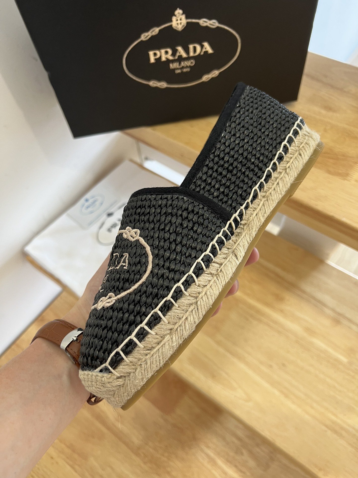 這款鞋子是AAAAA 1:1 質量(非常棒). 使用了和原版一模一樣的材料. 商標部分也保持了和普拉達/Prada一樣. 圖片拍攝是實物鞋子拍攝, 您所收到的實物保證和我們圖片一模一樣.