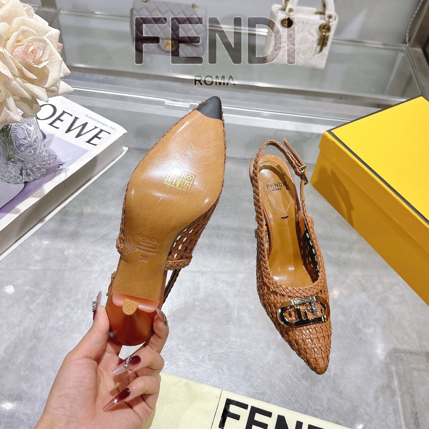 這款鞋子是AAAAA 1:1 質量(非常棒). 使用了和原版一模一樣的材料. 商標部分也保持了和芬迪/Fendi一樣. 圖片拍攝是實物鞋子拍攝, 您所收到的實物保證和我們圖片一模一樣.
