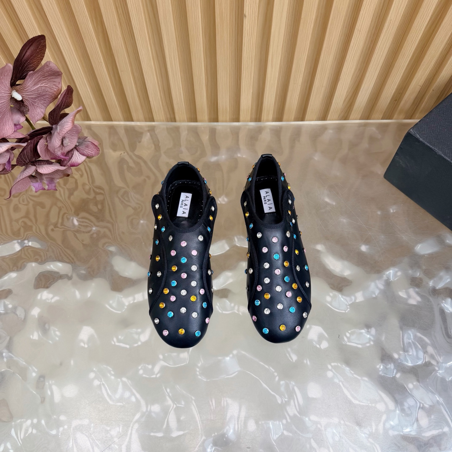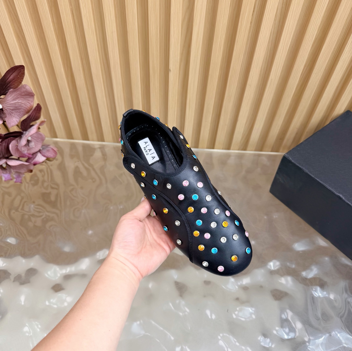 這款鞋子是AAAAA 1:1 質量(非常棒). 使用了和原版一模一樣的材料. 商標部分也保持了和Alaia一樣. 圖片拍攝是實物鞋子拍攝, 您所收到的實物保證和我們圖片一模一樣.
