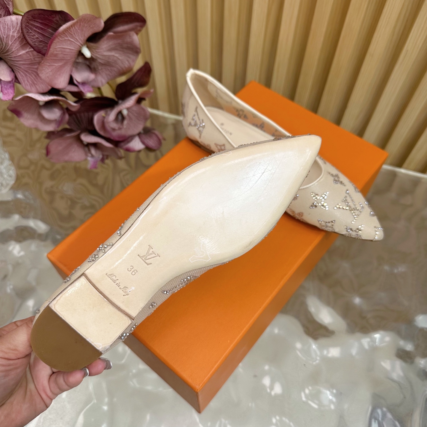 這款鞋子是AAAAA 1:1 質量(非常棒). 使用了和原版一模一樣的材料. 商標部分也保持了和路易威登/Louis Vuitton一樣. 圖片拍攝是實物鞋子拍攝, 您所收到的實物保證和我們圖片一模一樣.