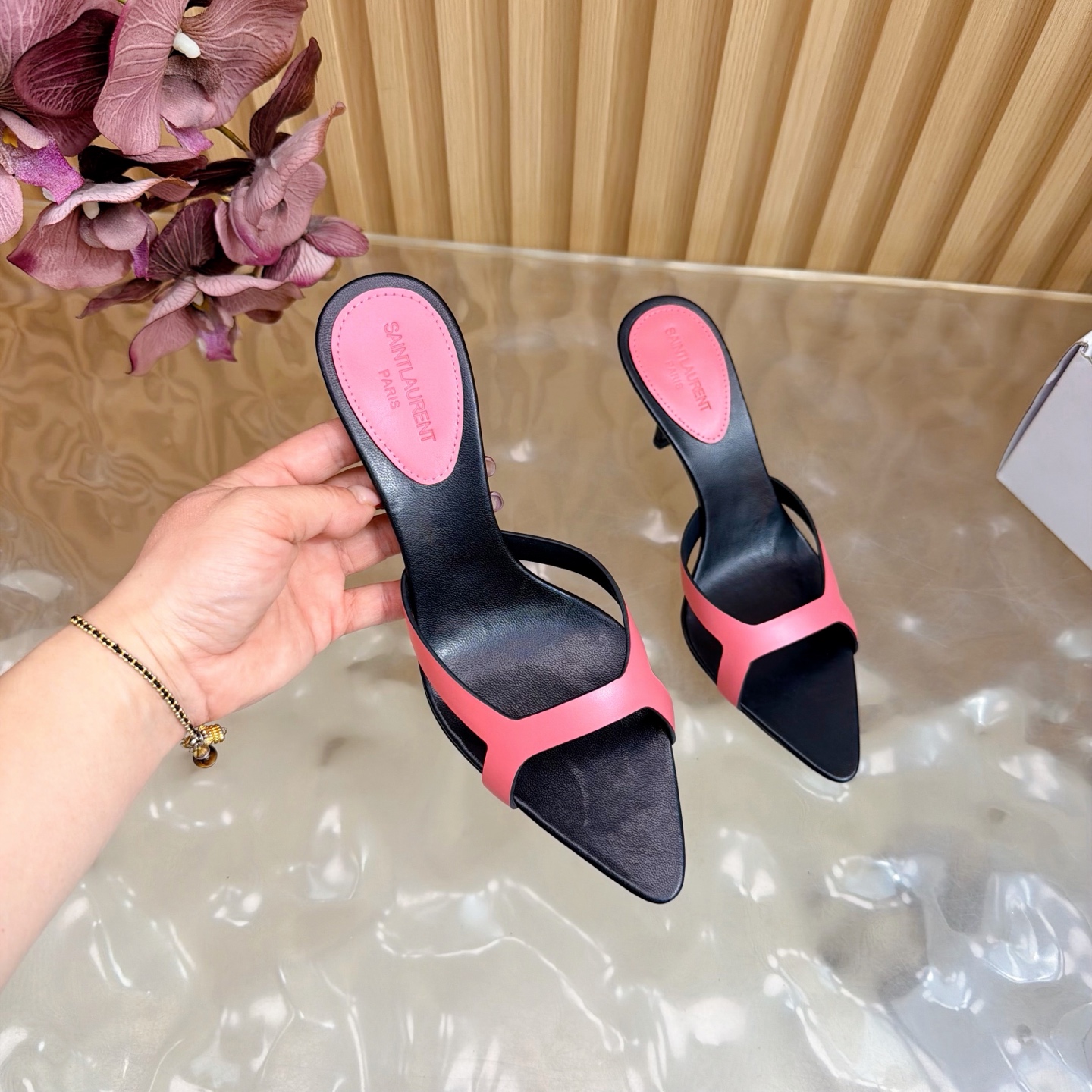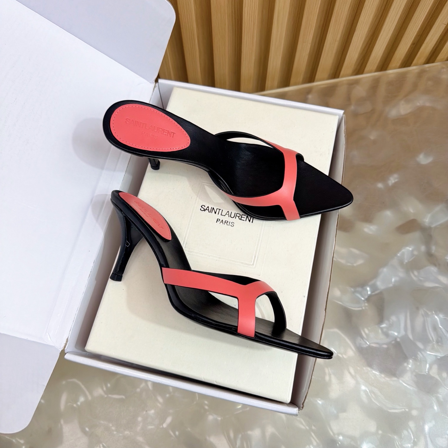 這款鞋子是AAAAA 1:1 質量(非常棒). 使用了和原版一模一樣的材料. 商標部分也保持了和聖羅蘭/Saint Laurent一樣. 圖片拍攝是實物鞋子拍攝, 您所收到的實物保證和我們圖片一模一樣.