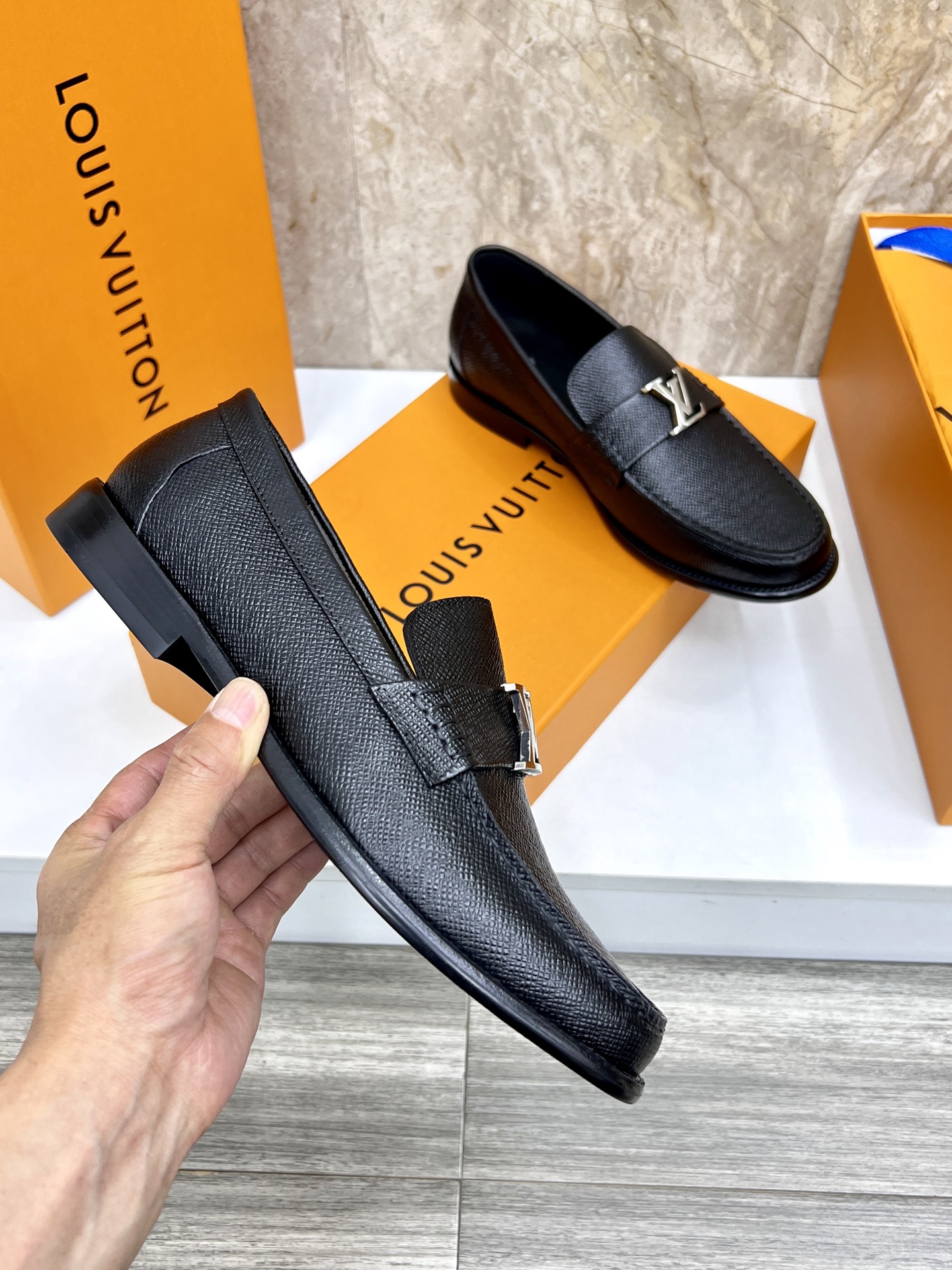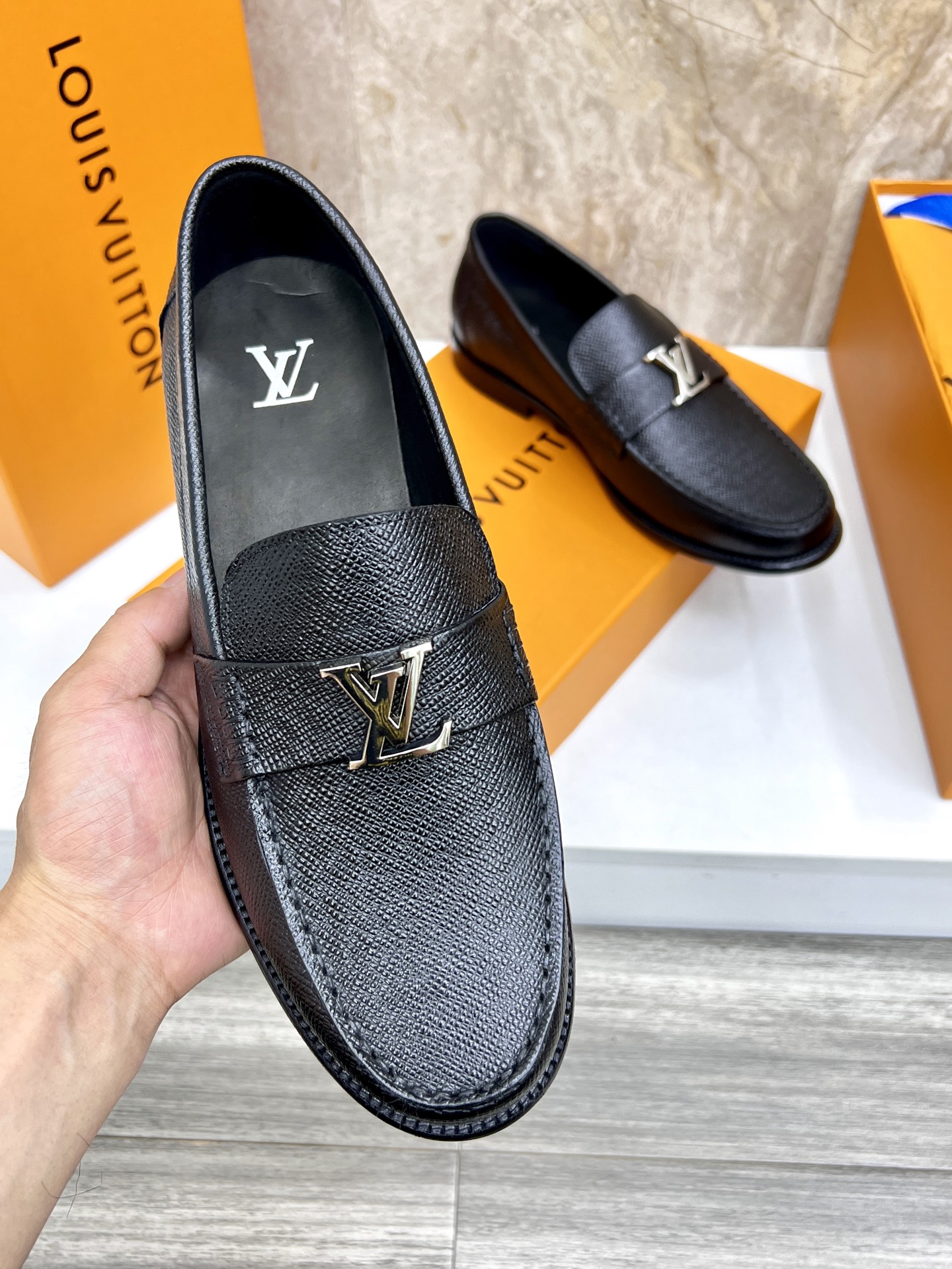 這款鞋子是AAAAA 1:1 質量(非常棒). 使用了和原版一模一樣的材料. 商標部分也保持了和路易威登/Louis Vuitton一樣. 圖片拍攝是實物鞋子拍攝, 您所收到的實物保證和我們圖片一模一樣.