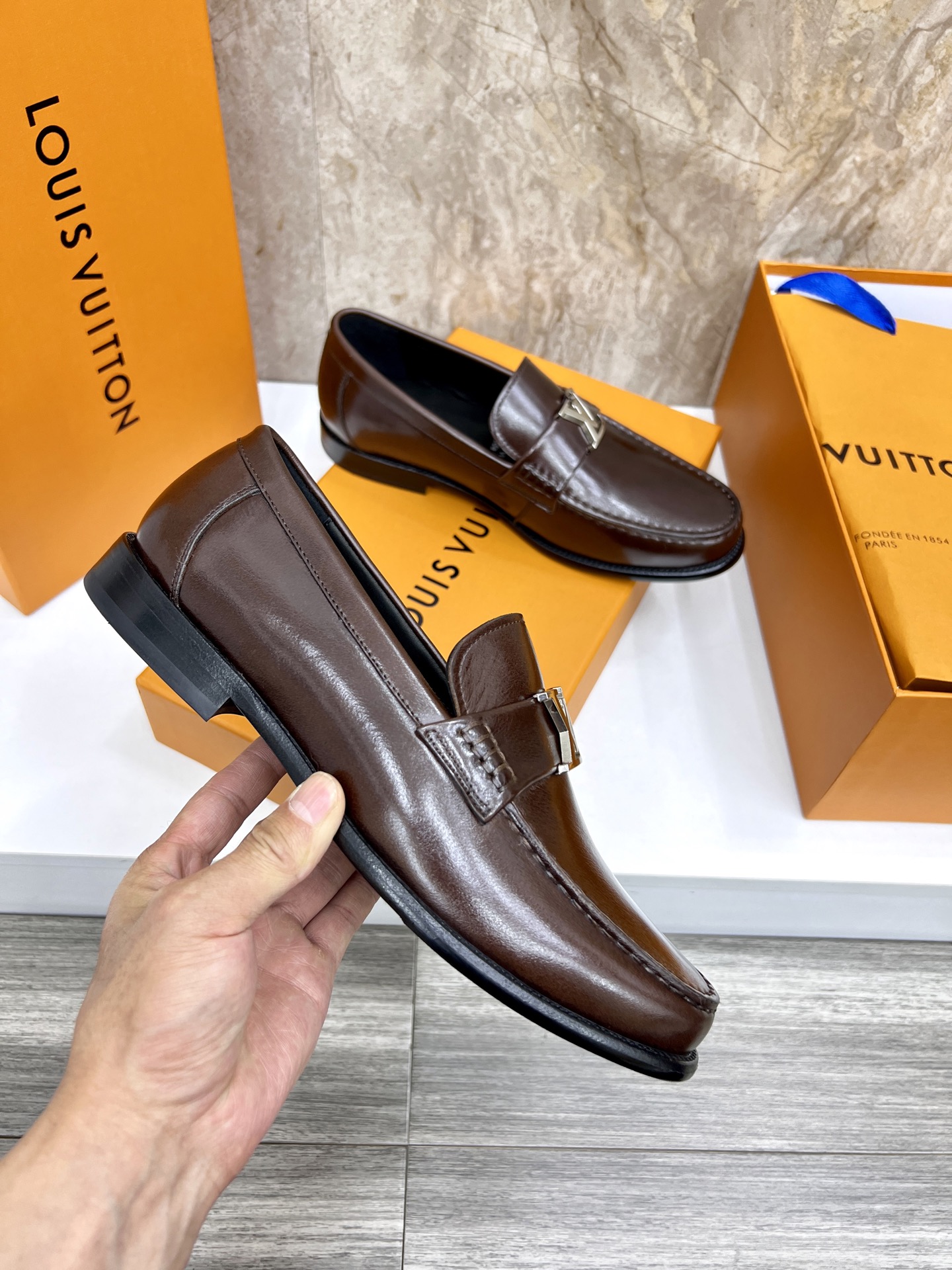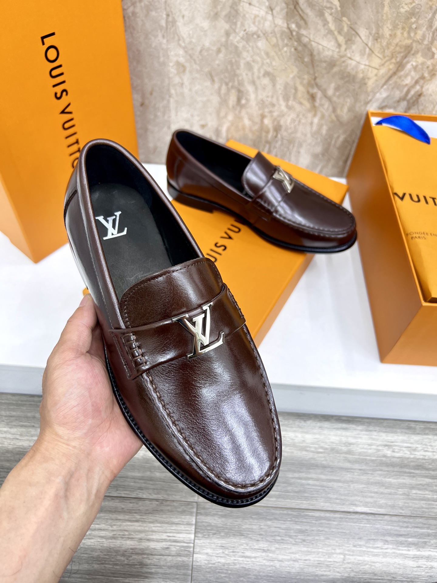 這款鞋子是AAAAA 1:1 質量(非常棒). 使用了和原版一模一樣的材料. 商標部分也保持了和路易威登/Louis Vuitton一樣. 圖片拍攝是實物鞋子拍攝, 您所收到的實物保證和我們圖片一模一樣.