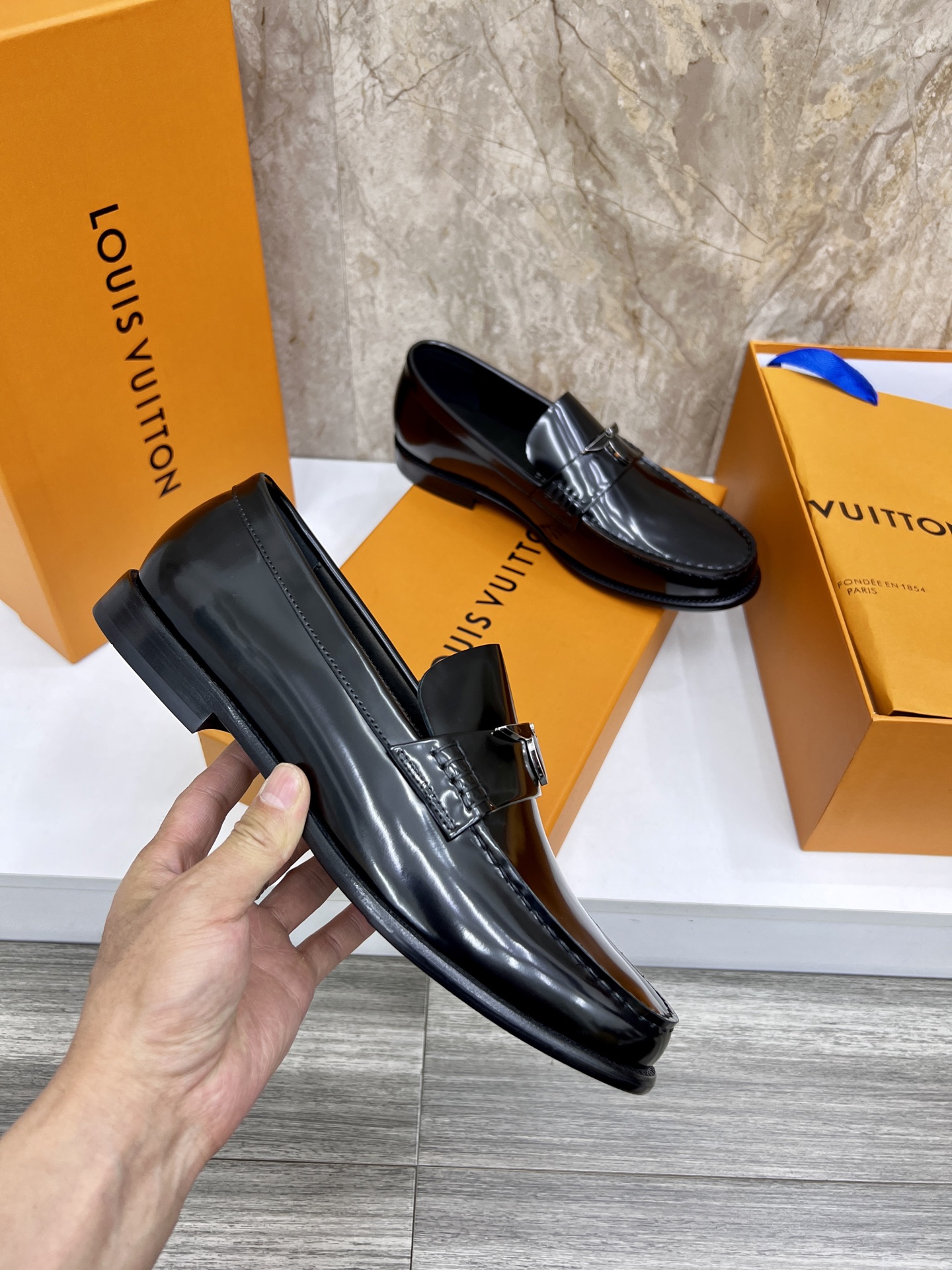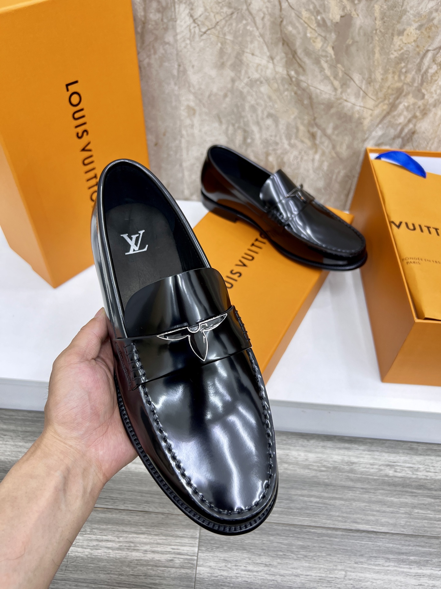 這款鞋子是AAAAA 1:1 質量(非常棒). 使用了和原版一模一樣的材料. 商標部分也保持了和路易威登/Louis Vuitton一樣. 圖片拍攝是實物鞋子拍攝, 您所收到的實物保證和我們圖片一模一樣.