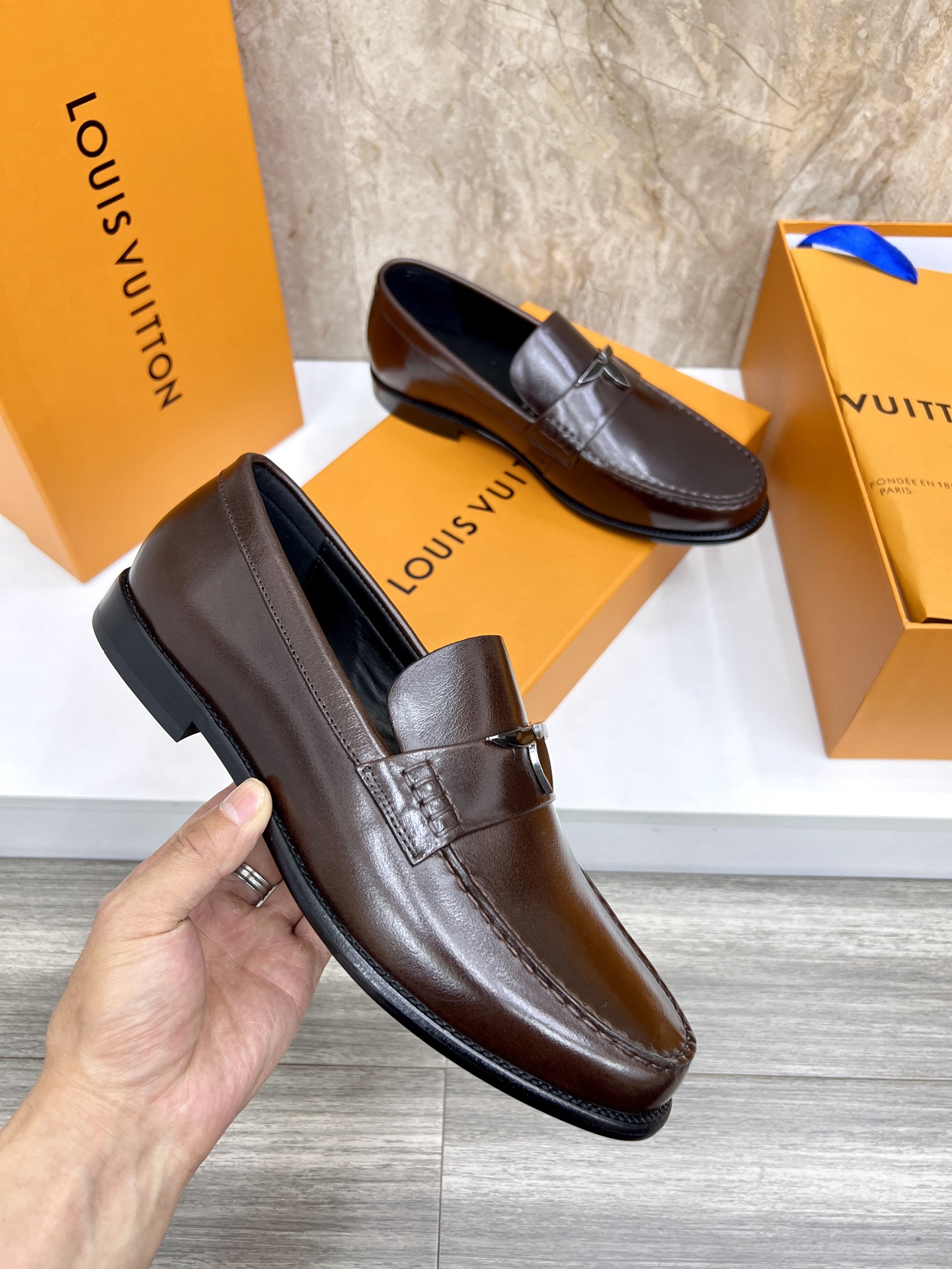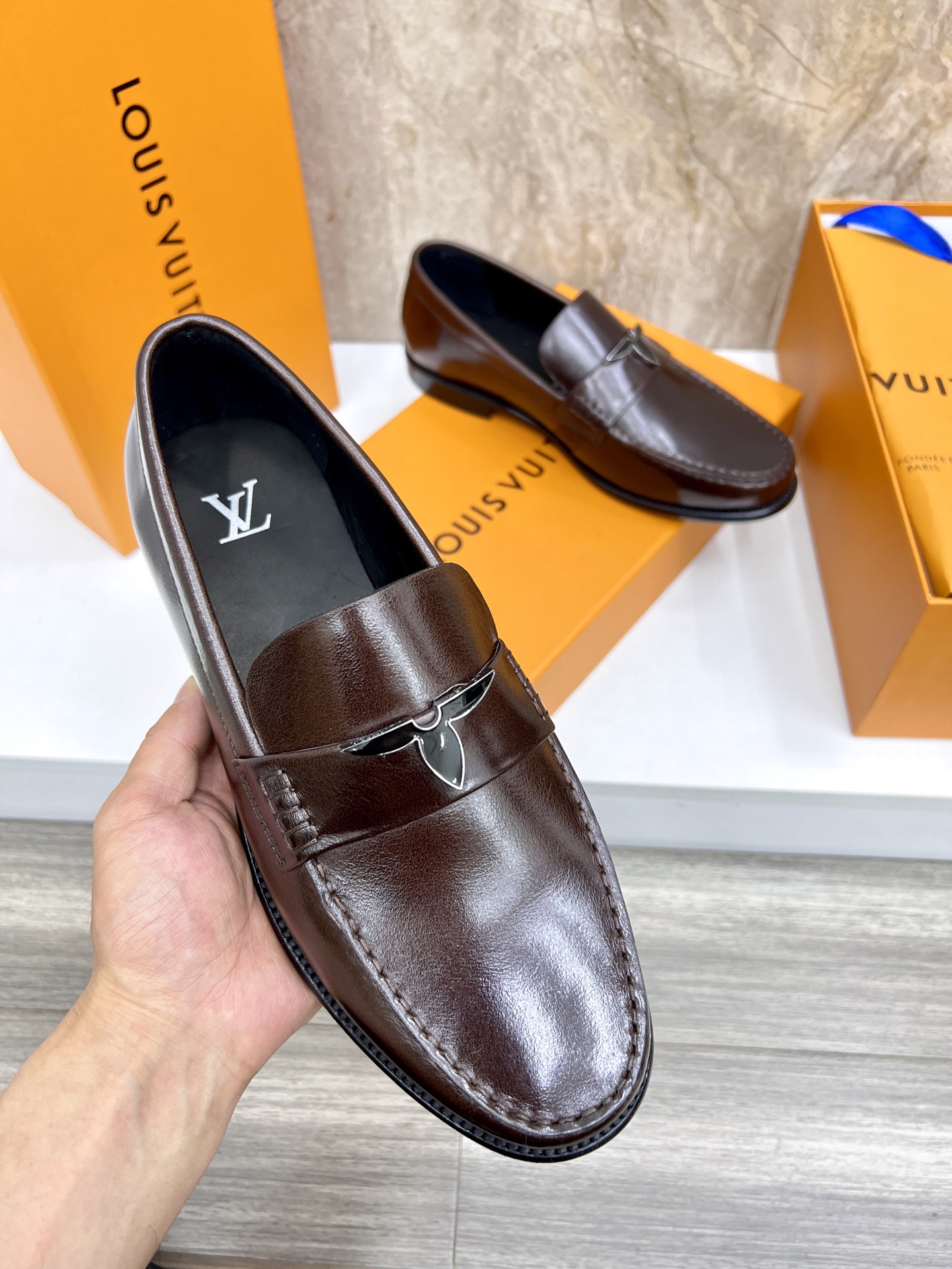 這款鞋子是AAAAA 1:1 質量(非常棒). 使用了和原版一模一樣的材料. 商標部分也保持了和路易威登/Louis Vuitton一樣. 圖片拍攝是實物鞋子拍攝, 您所收到的實物保證和我們圖片一模一樣.