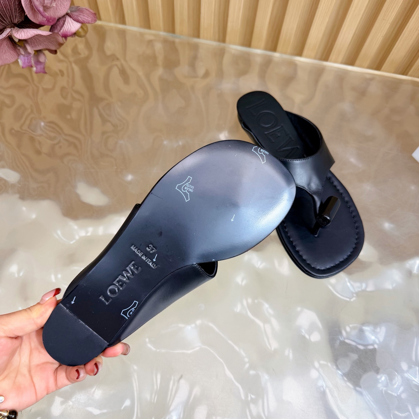 這款鞋子是AAAAA 1:1 質量(非常棒). 使用了和原版一模一樣的材料. 商標部分也保持了和Loewe一樣. 圖片拍攝是實物鞋子拍攝, 您所收到的實物保證和我們圖片一模一樣.