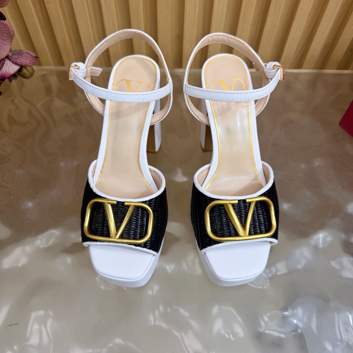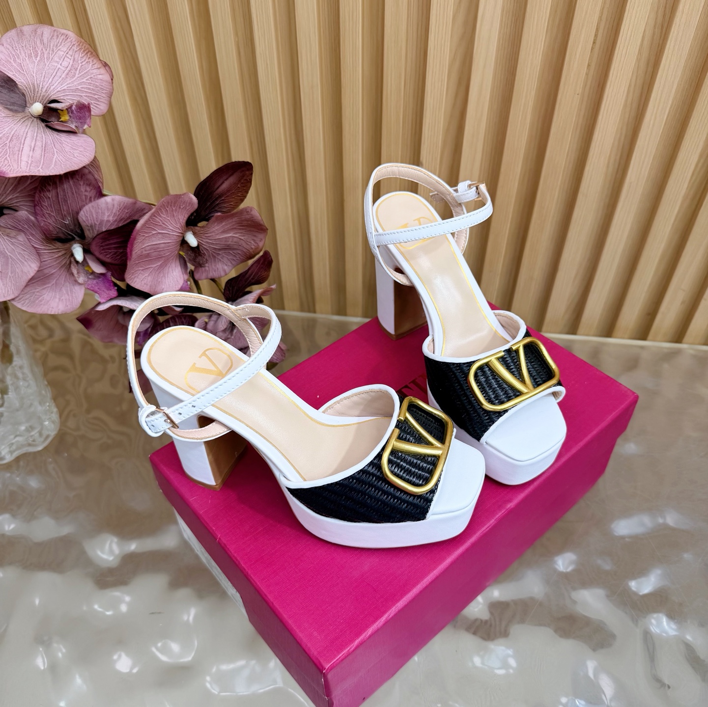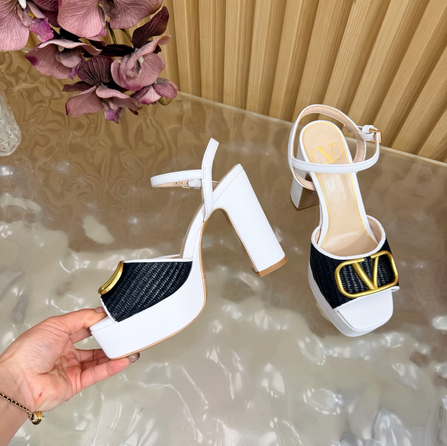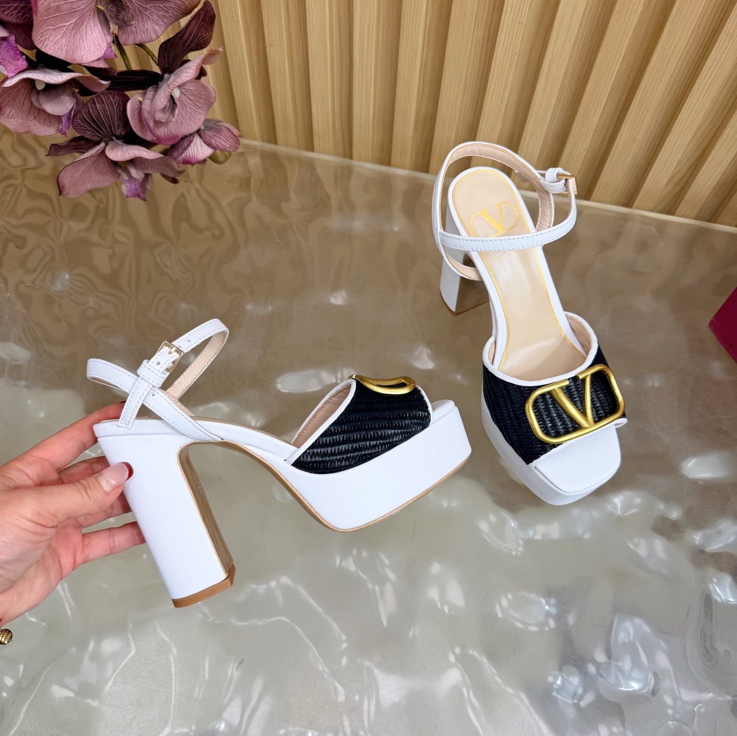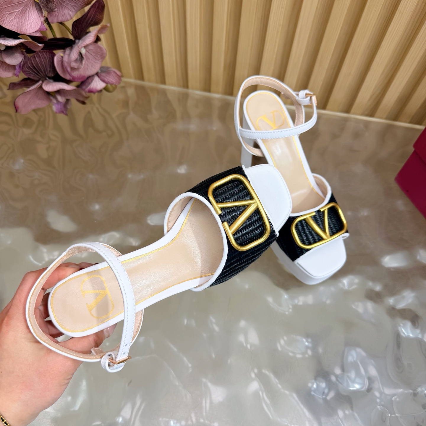 這款鞋子是AAAAA 1:1 質量(非常棒). 使用了和原版一模一樣的材料. 商標部分也保持了和瓦倫蒂諾/Valentino一樣. 圖片拍攝是實物鞋子拍攝, 您所收到的實物保證和我們圖片一模一樣.