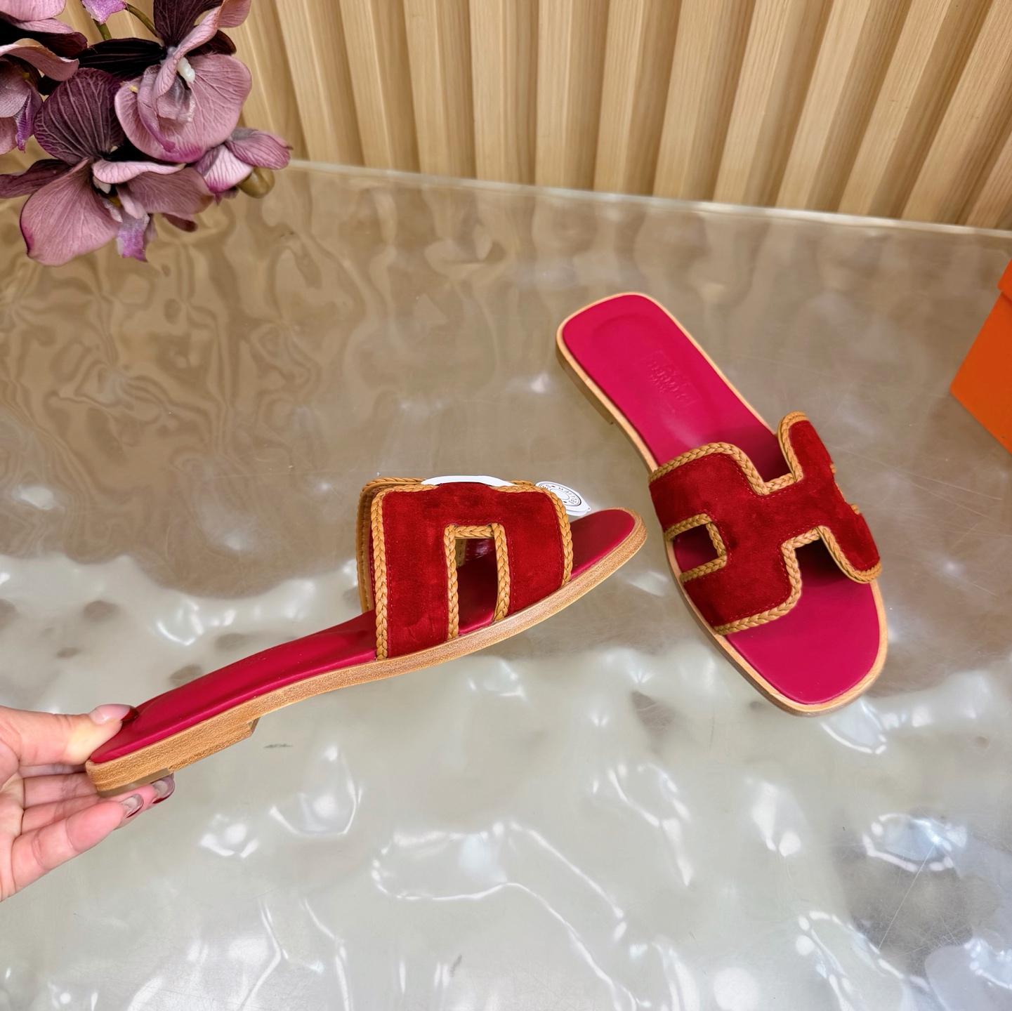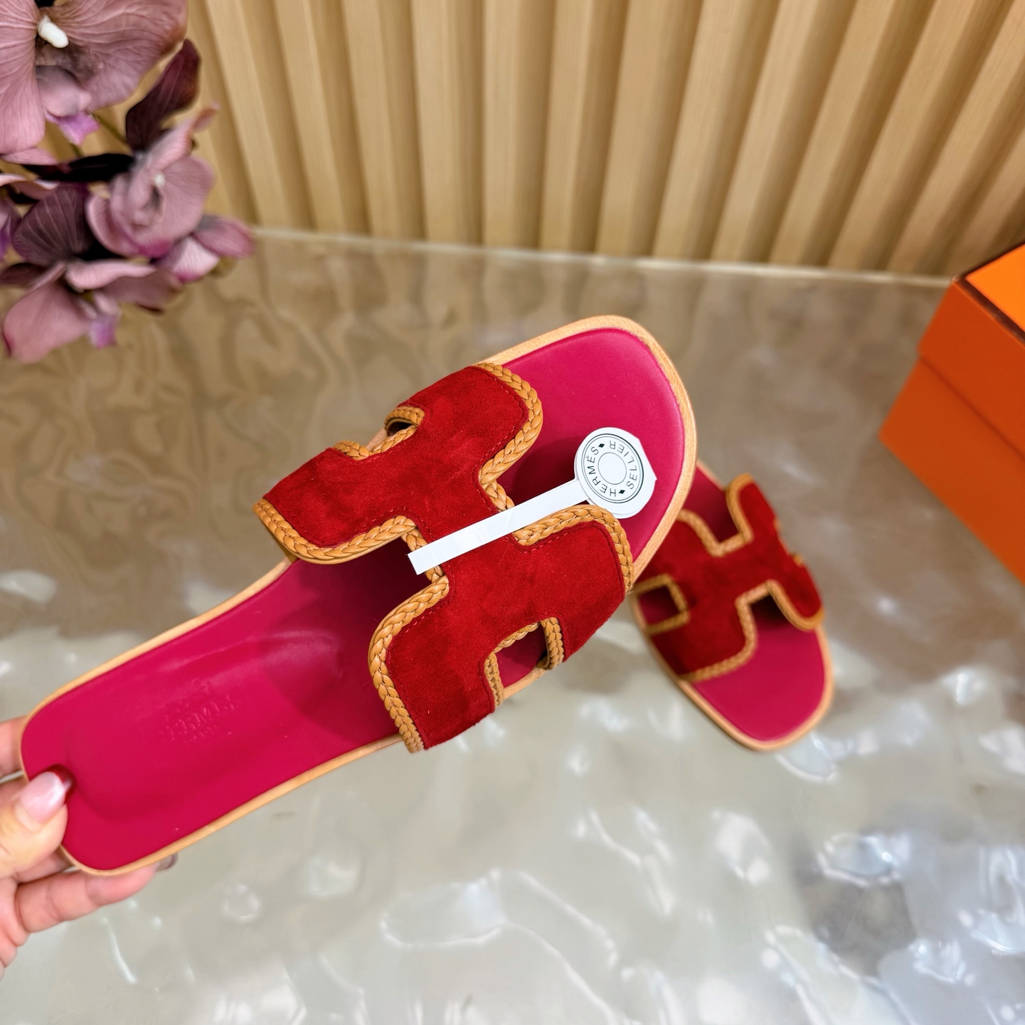 這款鞋子是AAAAA 1:1 質量(非常棒). 使用了和原版一模一樣的材料. 商標部分也保持了和愛馬仕/Hermes一樣. 圖片拍攝是實物鞋子拍攝, 您所收到的實物保證和我們圖片一模一樣.