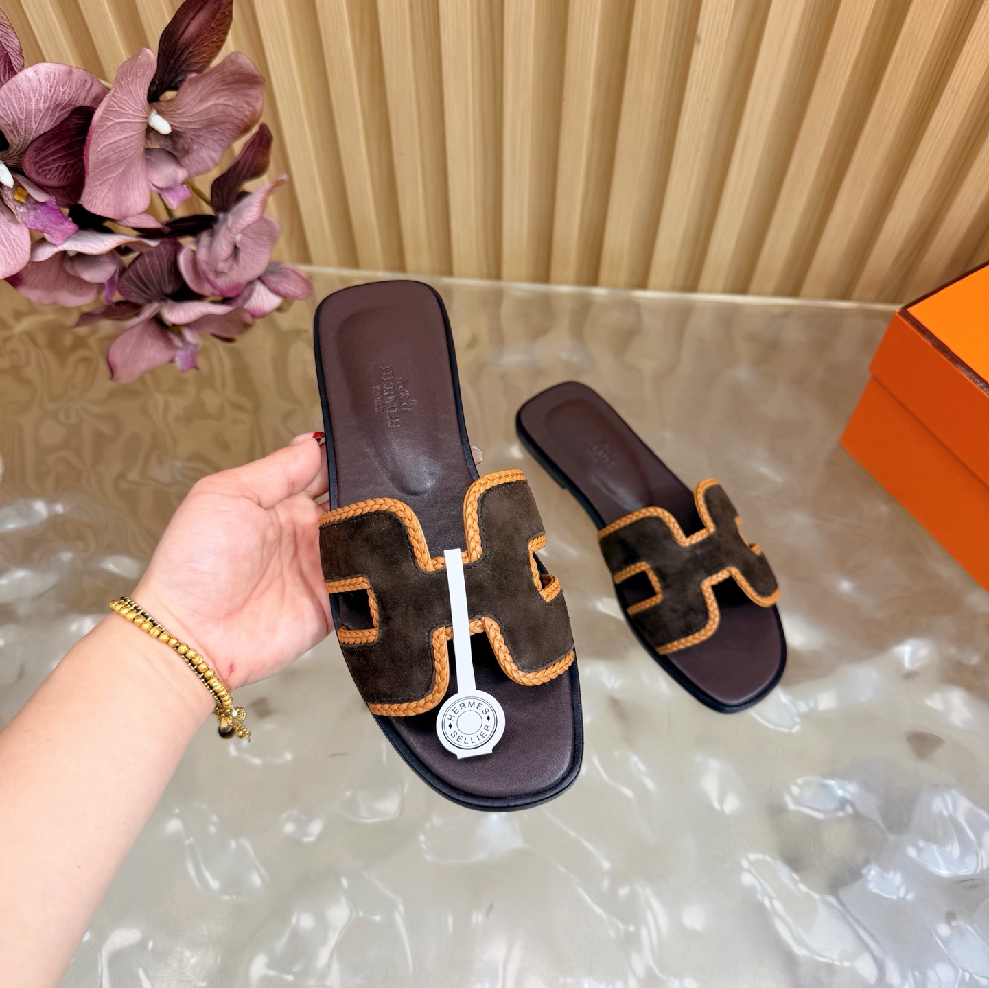 這款鞋子是AAAAA 1:1 質量(非常棒). 使用了和原版一模一樣的材料. 商標部分也保持了和愛馬仕/Hermes一樣. 圖片拍攝是實物鞋子拍攝, 您所收到的實物保證和我們圖片一模一樣.