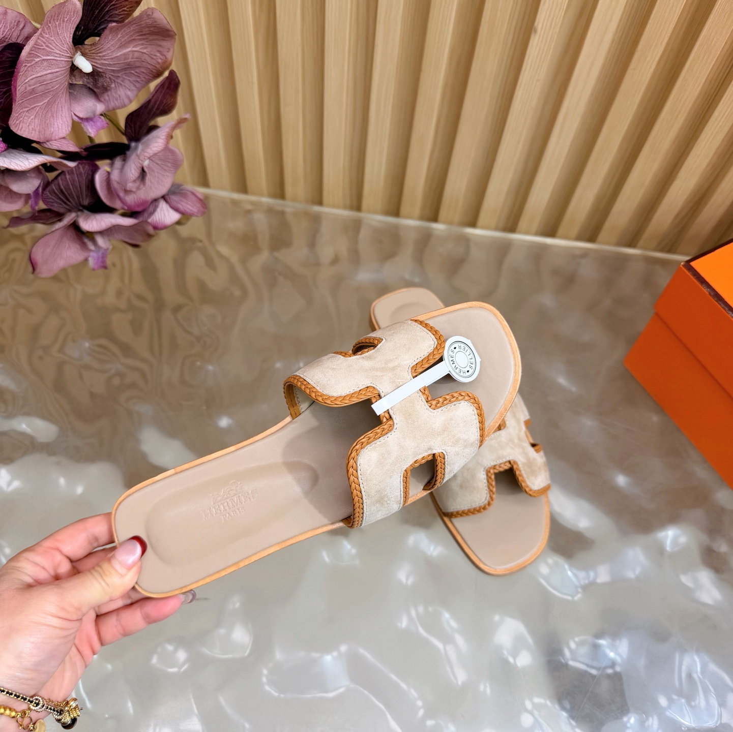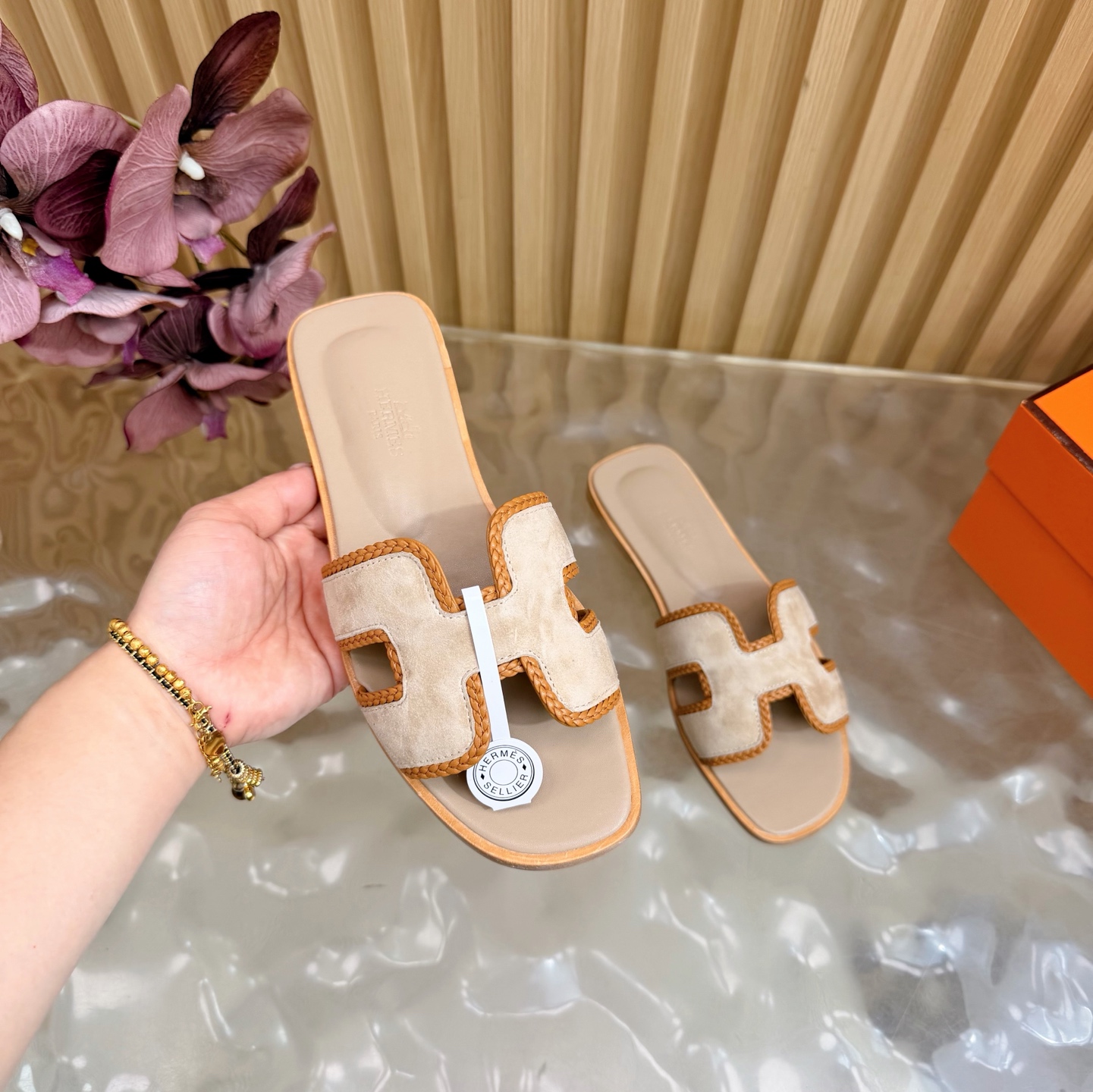 這款鞋子是AAAAA 1:1 質量(非常棒). 使用了和原版一模一樣的材料. 商標部分也保持了和愛馬仕/Hermes一樣. 圖片拍攝是實物鞋子拍攝, 您所收到的實物保證和我們圖片一模一樣.