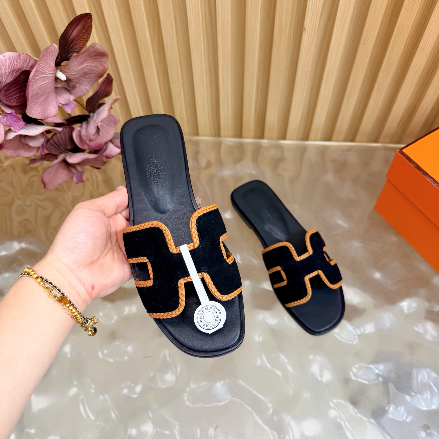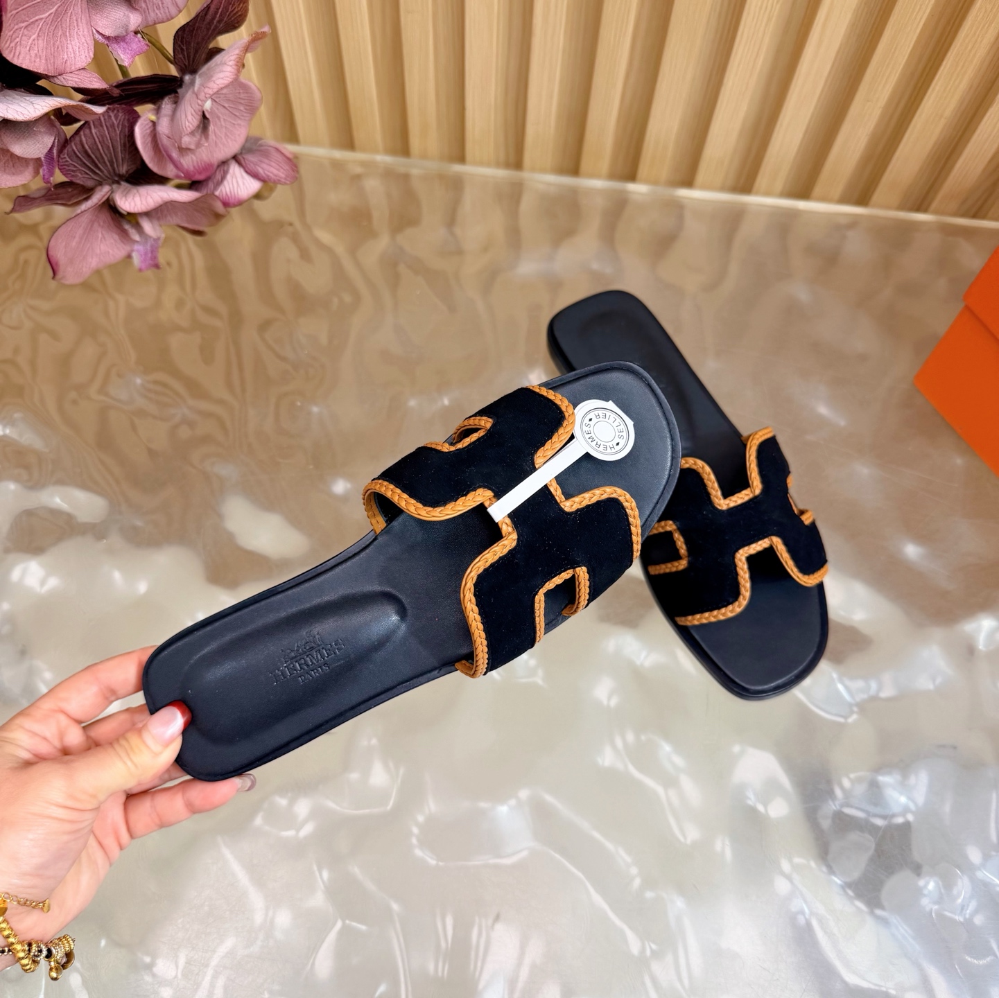 這款鞋子是AAAAA 1:1 質量(非常棒). 使用了和原版一模一樣的材料. 商標部分也保持了和愛馬仕/Hermes一樣. 圖片拍攝是實物鞋子拍攝, 您所收到的實物保證和我們圖片一模一樣.