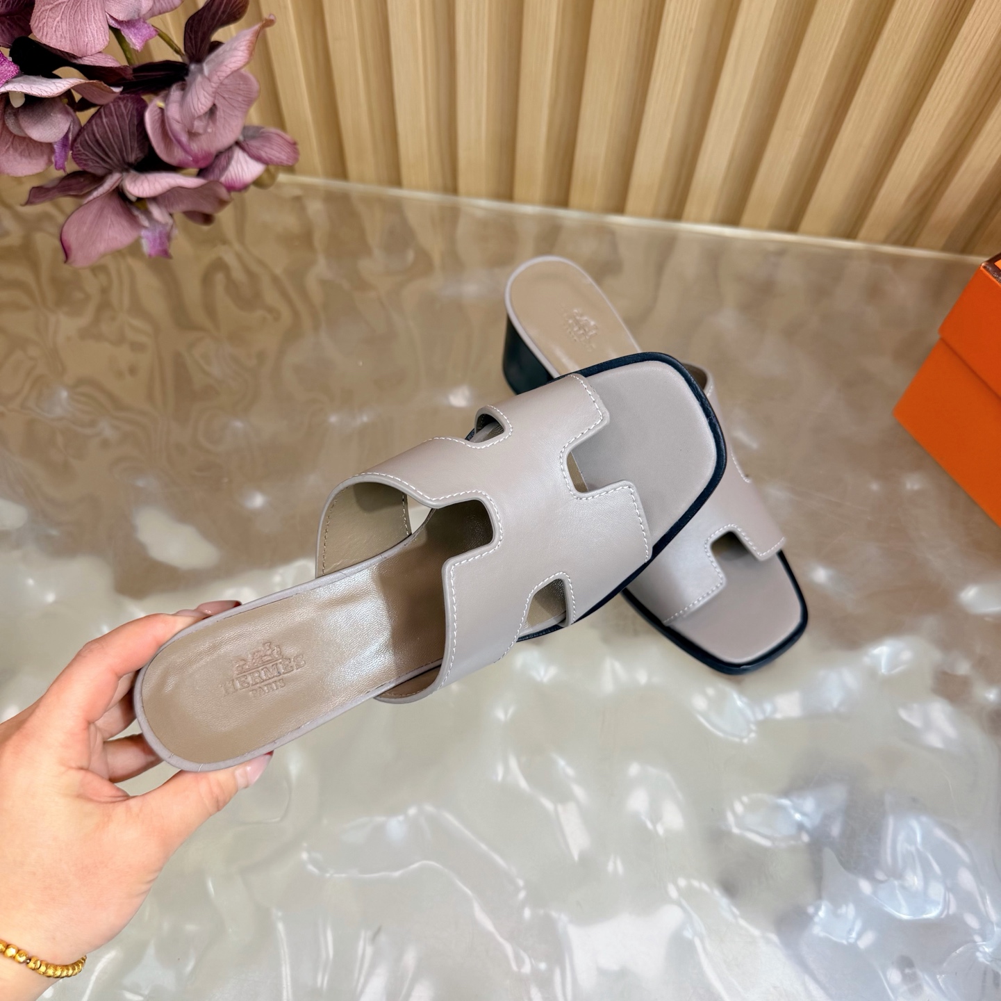 這款鞋子是AAAAA 1:1 質量(非常棒). 使用了和原版一模一樣的材料. 商標部分也保持了和愛馬仕/Hermes一樣. 圖片拍攝是實物鞋子拍攝, 您所收到的實物保證和我們圖片一模一樣.