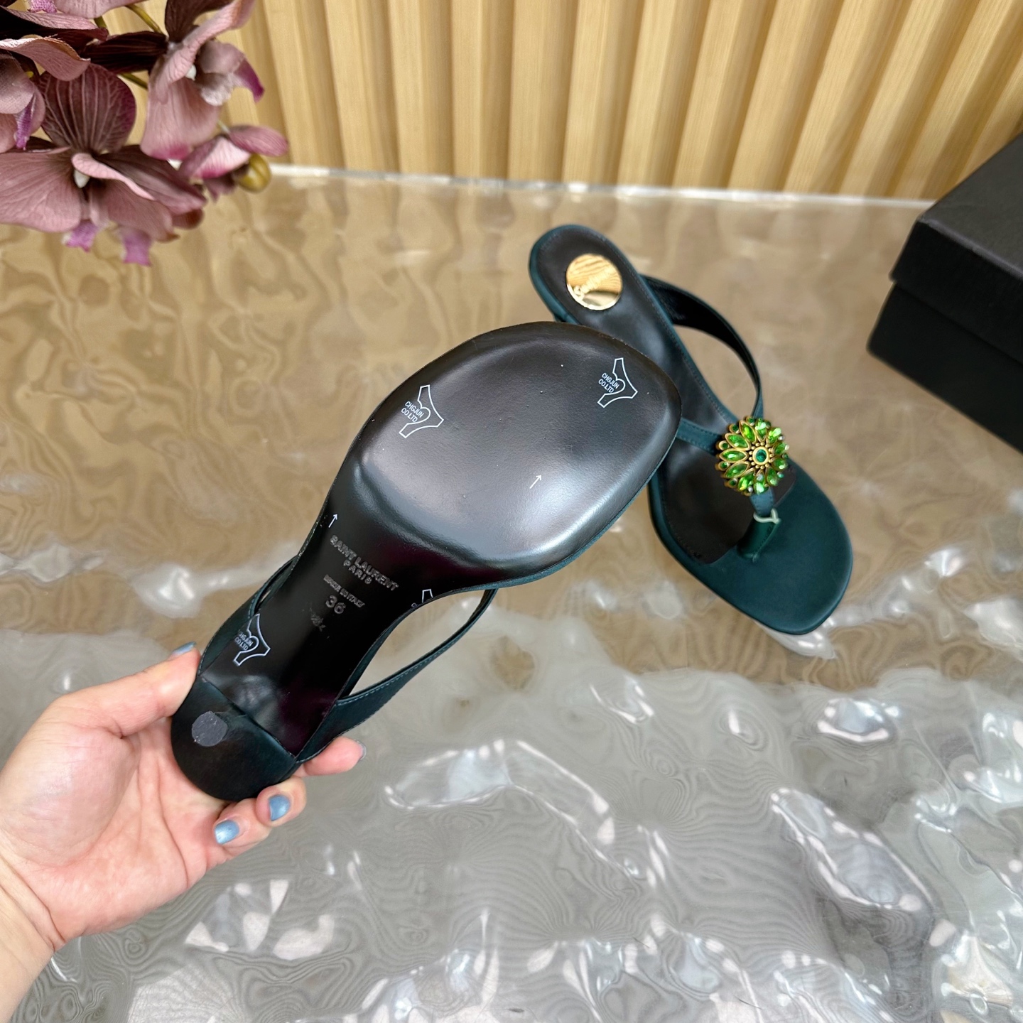這款鞋子是AAAAA 1:1 質量(非常棒). 使用了和原版一模一樣的材料. 商標部分也保持了和聖羅蘭/Saint Laurent一樣. 圖片拍攝是實物鞋子拍攝, 您所收到的實物保證和我們圖片一模一樣.