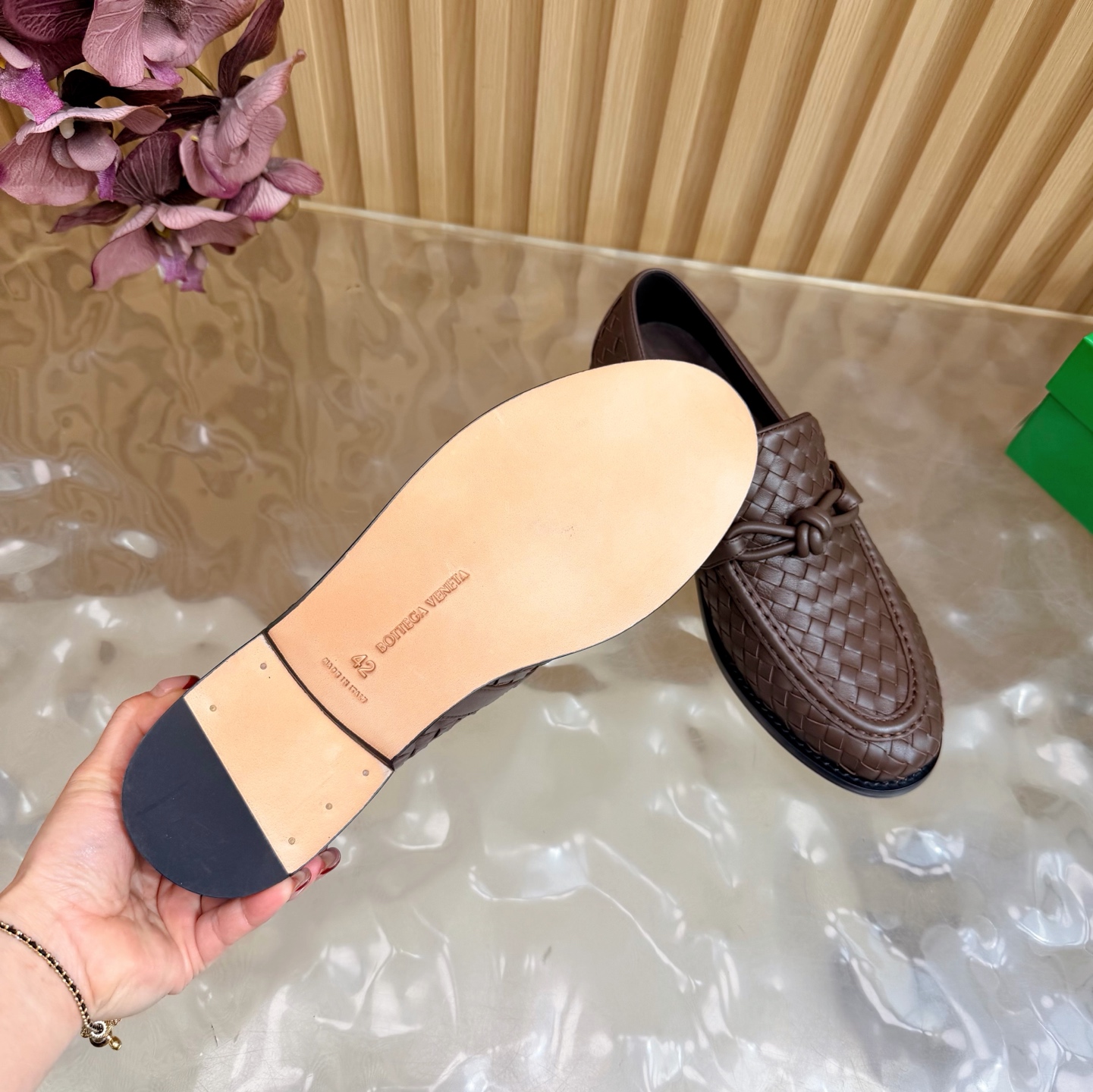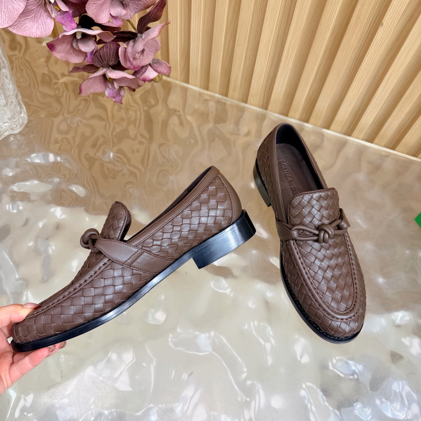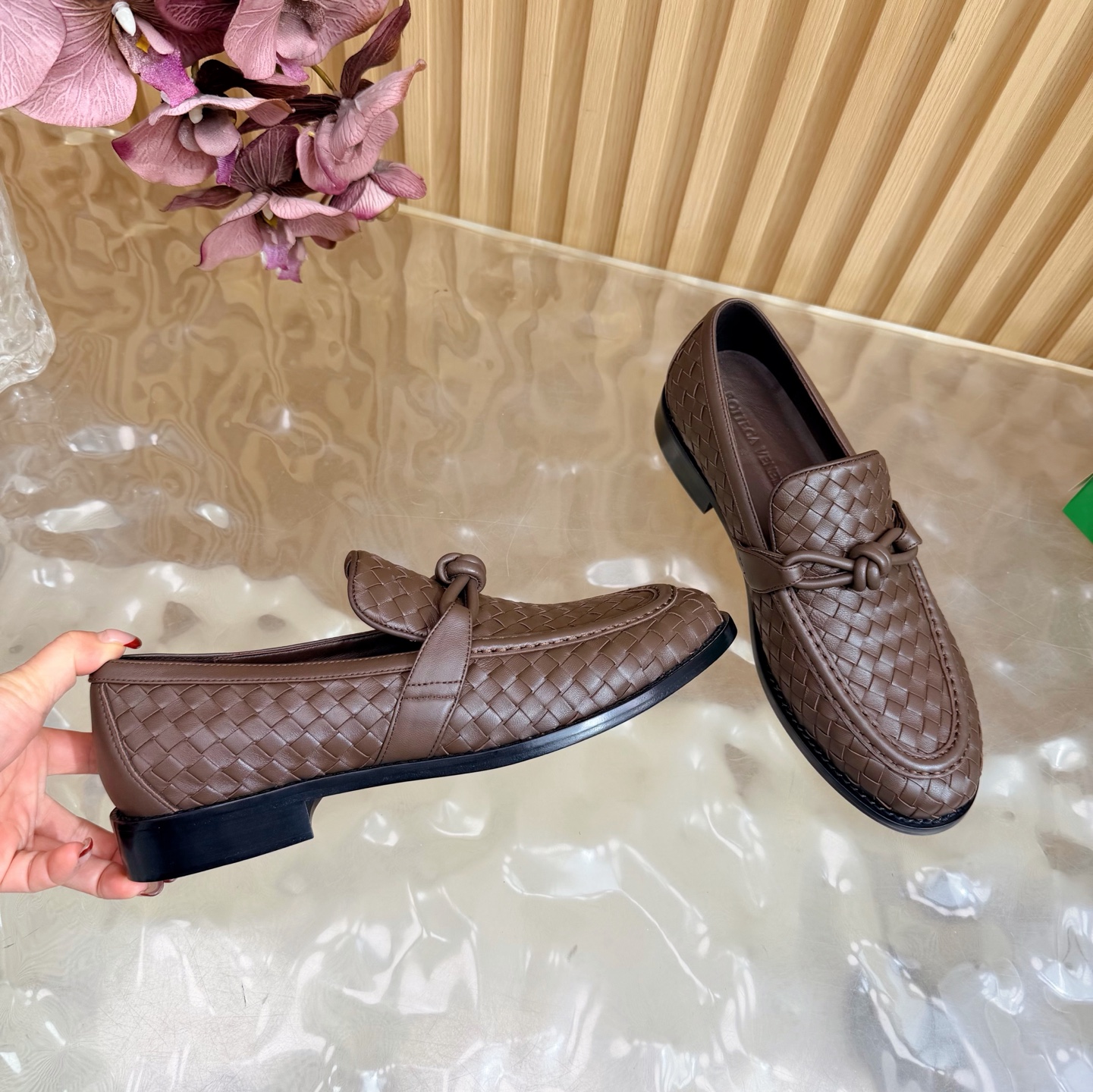 這款鞋子是AAAAA 1:1 質量(非常棒). 使用了和原版一模一樣的材料. 商標部分也保持了和葆蝶家/Bottega Veneta一樣. 圖片拍攝是實物鞋子拍攝, 您所收到的實物保證和我們圖片一模一樣.