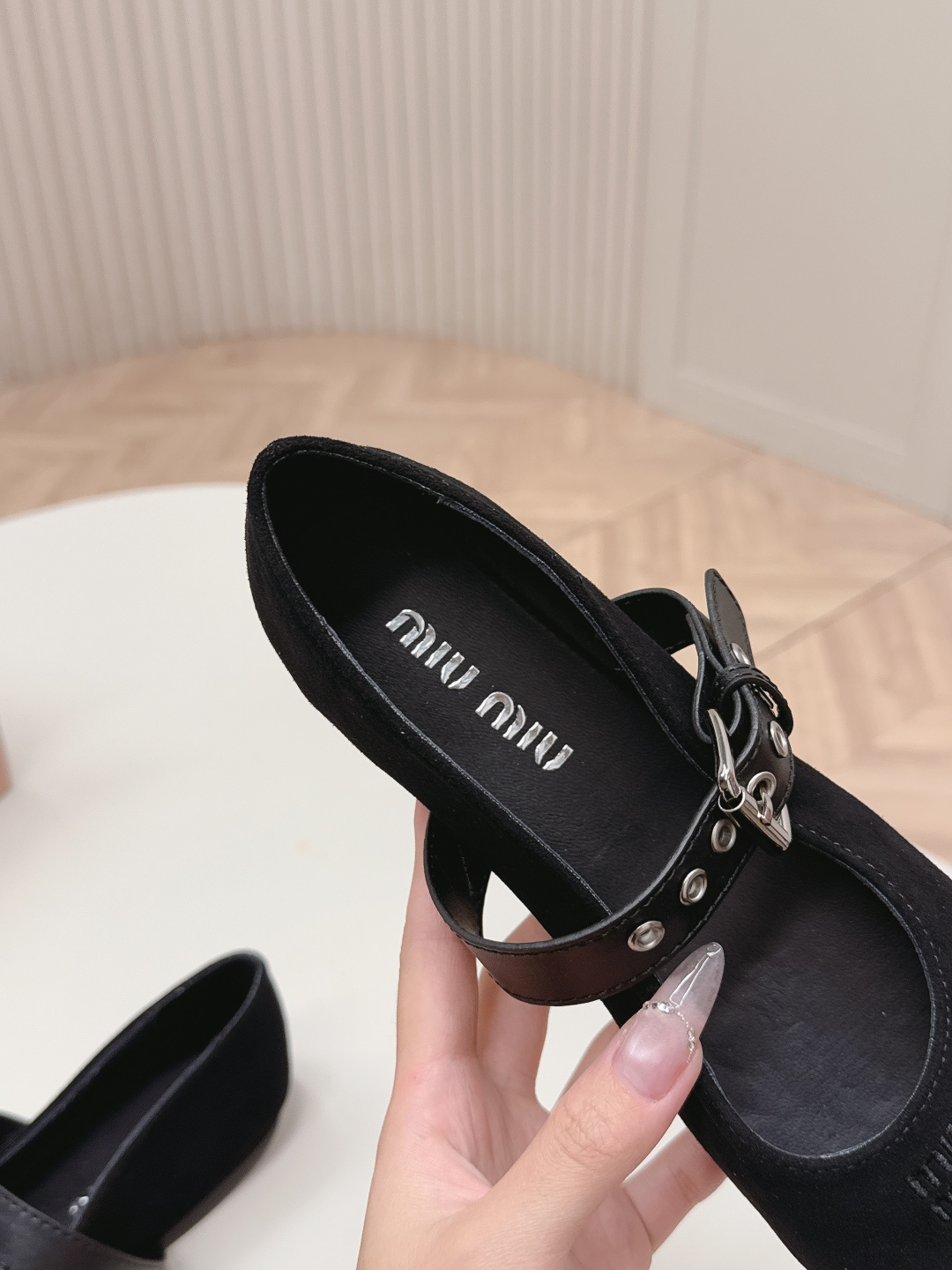 這款鞋子是AAAAA 1:1 質量(非常棒). 使用了和原版一模一樣的材料. 商標部分也保持了和繆繆/Miu Miu一樣. 圖片拍攝是實物鞋子拍攝, 您所收到的實物保證和我們圖片一模一樣.