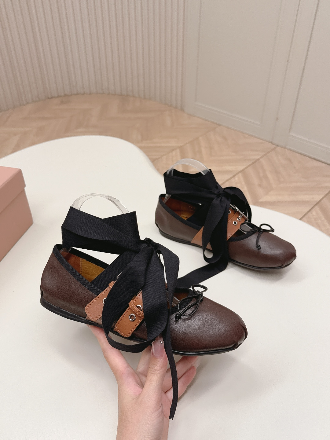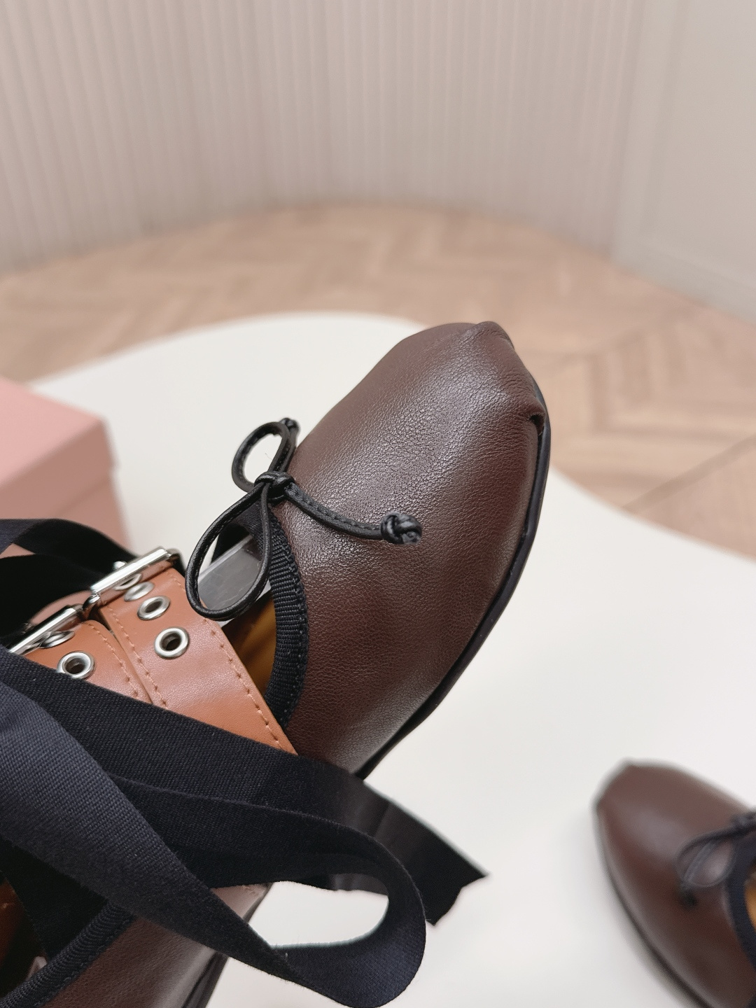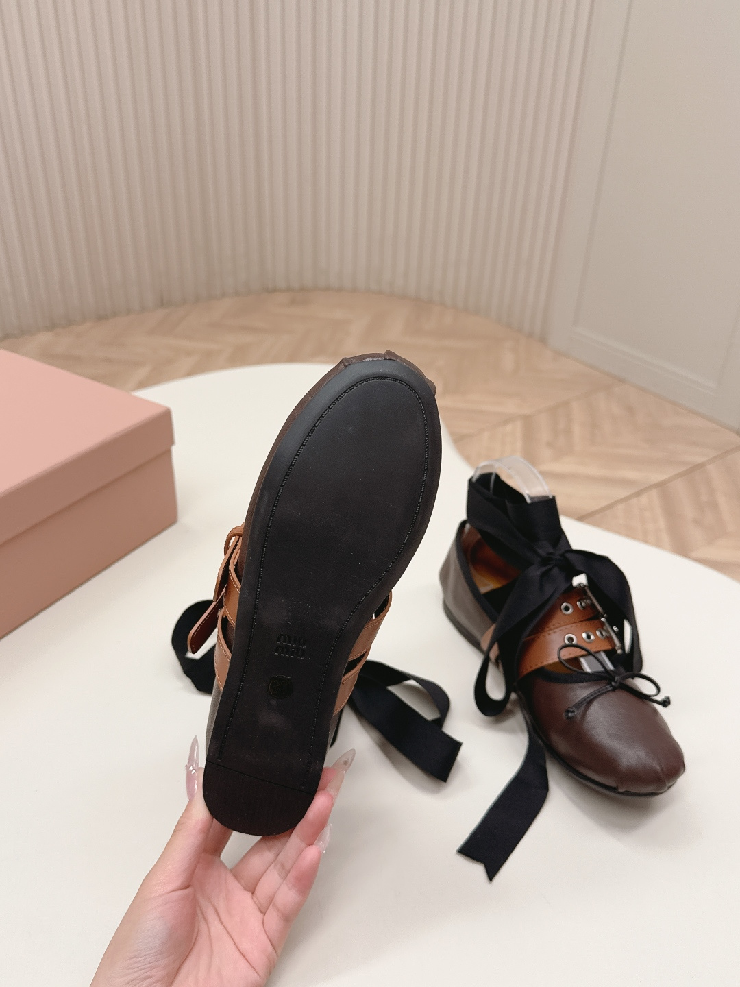 這款鞋子是AAAAA 1:1 質量(非常棒). 使用了和原版一模一樣的材料. 商標部分也保持了和繆繆/Miu Miu一樣. 圖片拍攝是實物鞋子拍攝, 您所收到的實物保證和我們圖片一模一樣.