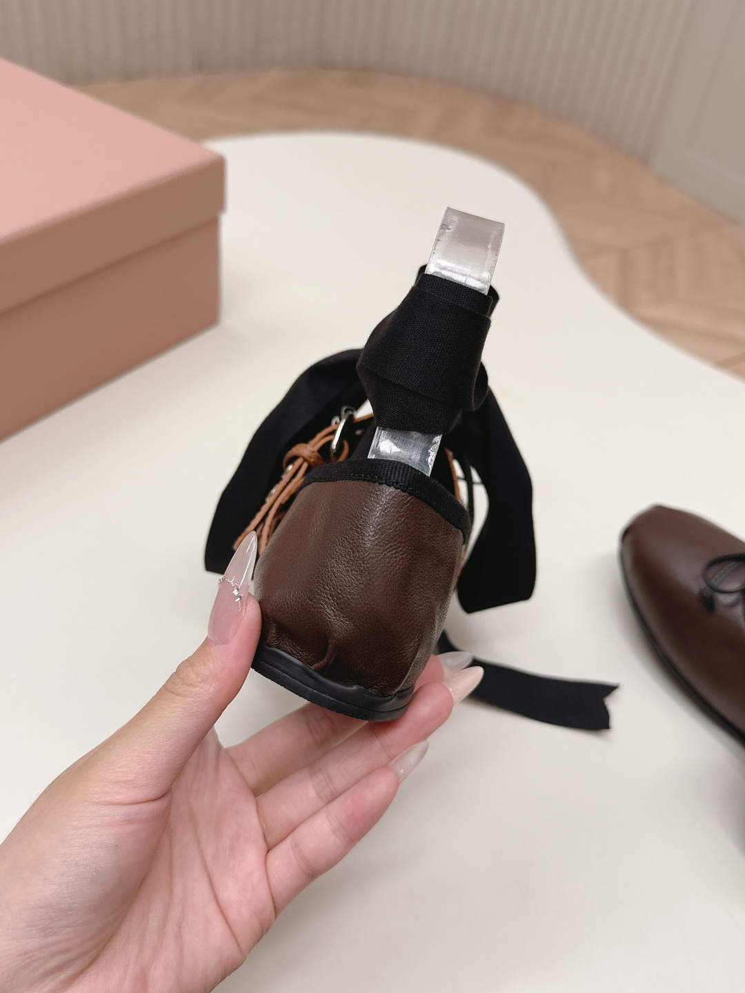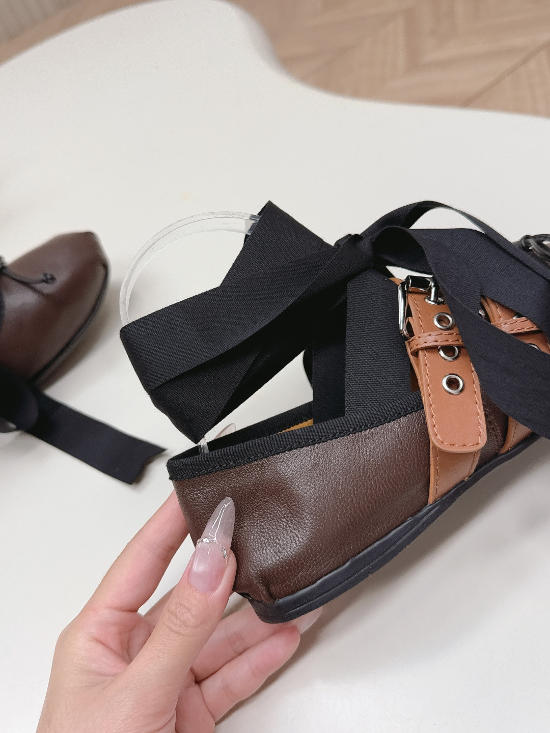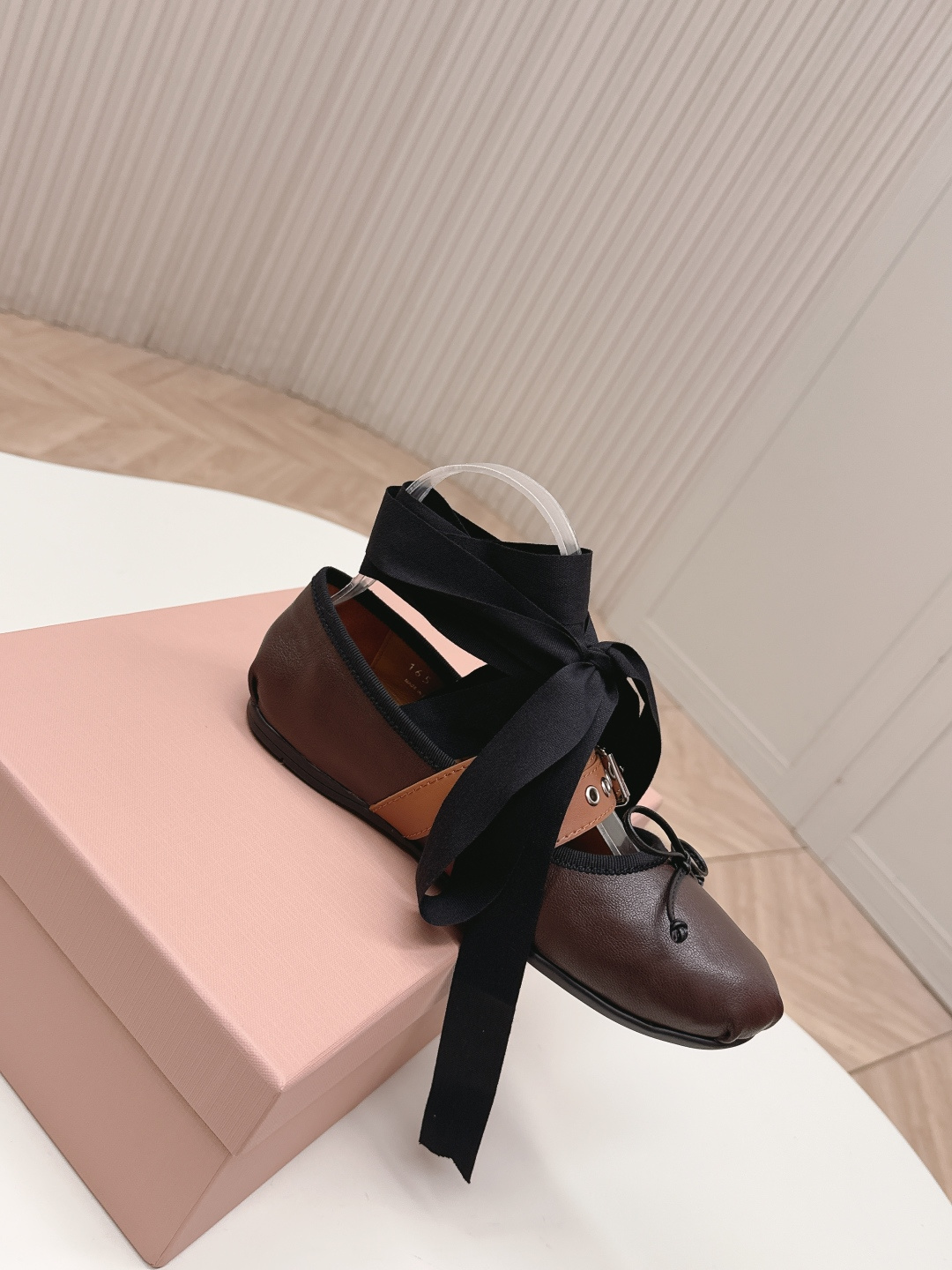 這款鞋子是AAAAA 1:1 質量(非常棒). 使用了和原版一模一樣的材料. 商標部分也保持了和繆繆/Miu Miu一樣. 圖片拍攝是實物鞋子拍攝, 您所收到的實物保證和我們圖片一模一樣.