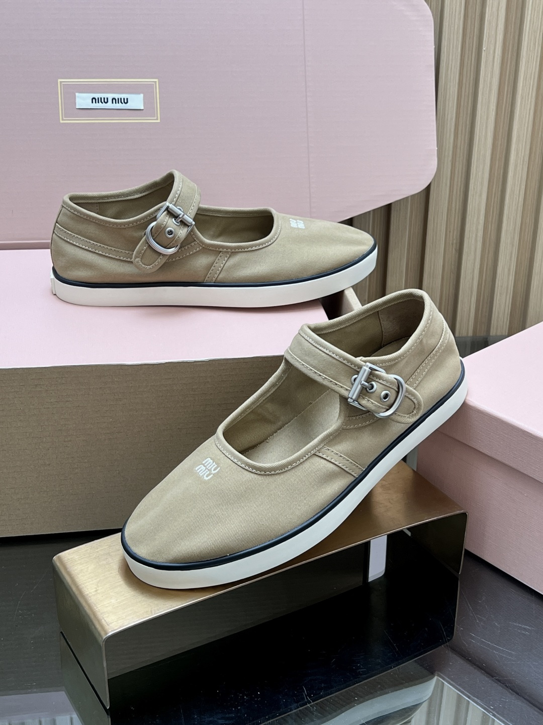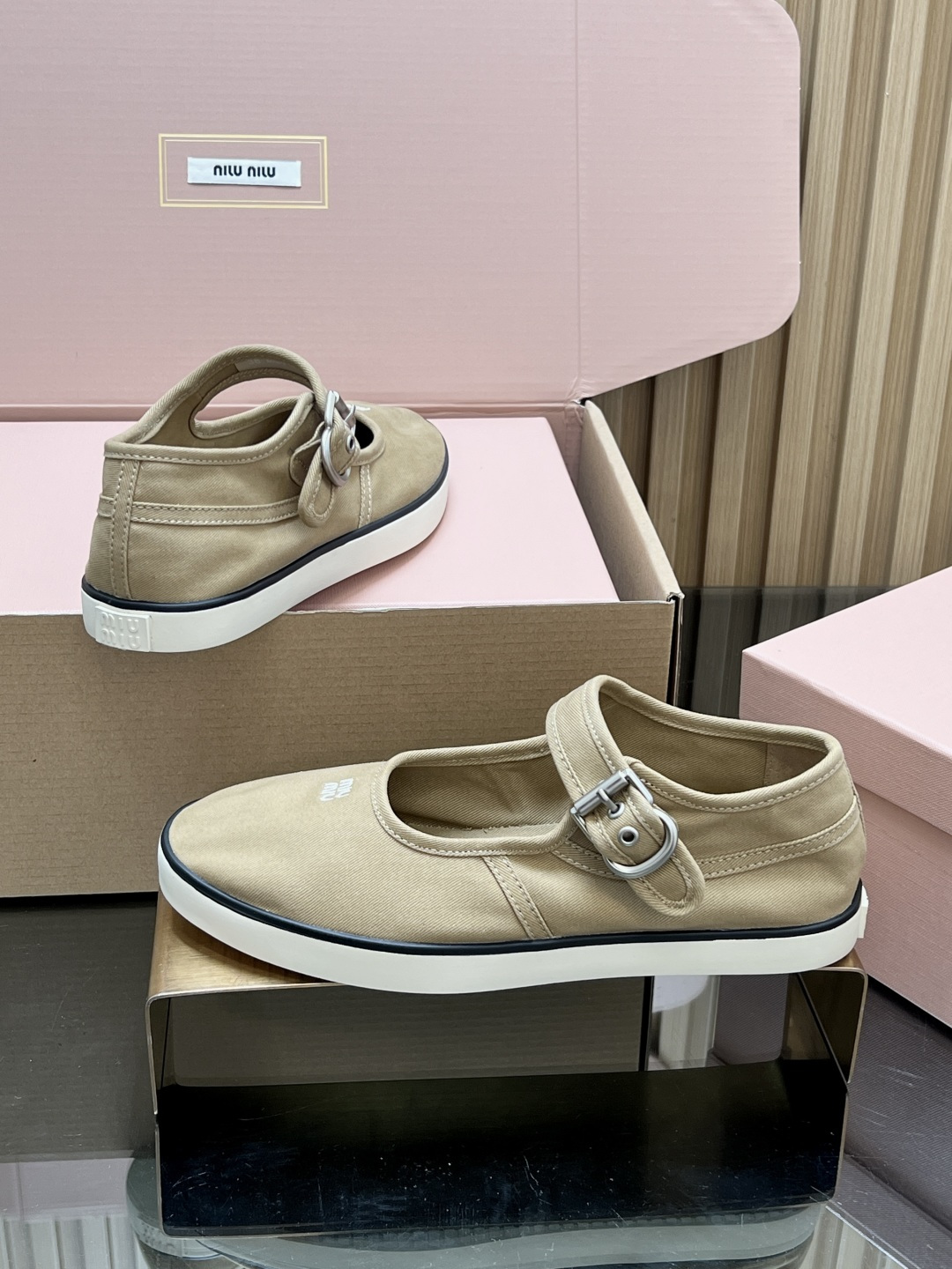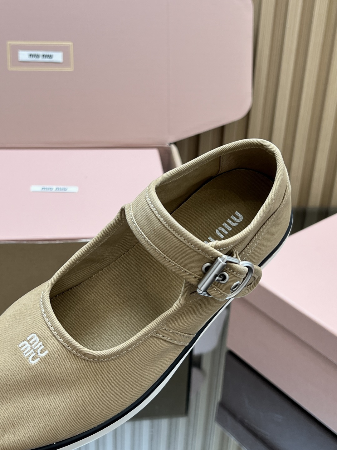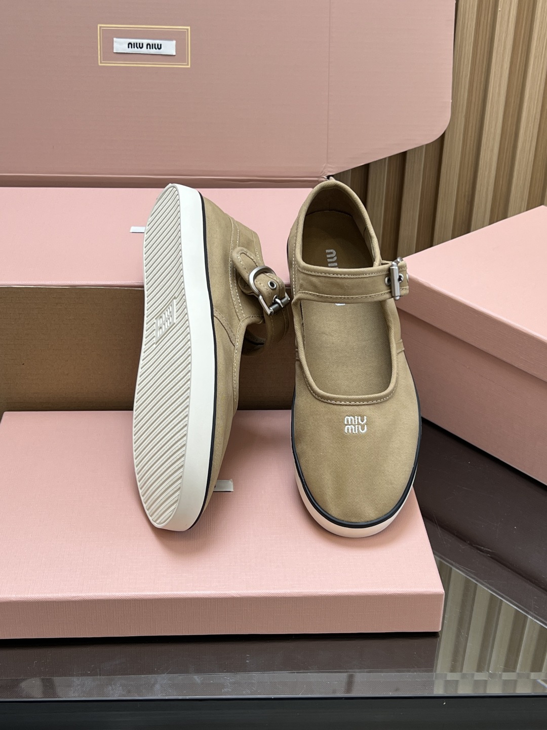 這款鞋子是AAAAA 1:1 質量(非常棒). 使用了和原版一模一樣的材料. 商標部分也保持了和繆繆/Miu Miu一樣. 圖片拍攝是實物鞋子拍攝, 您所收到的實物保證和我們圖片一模一樣.