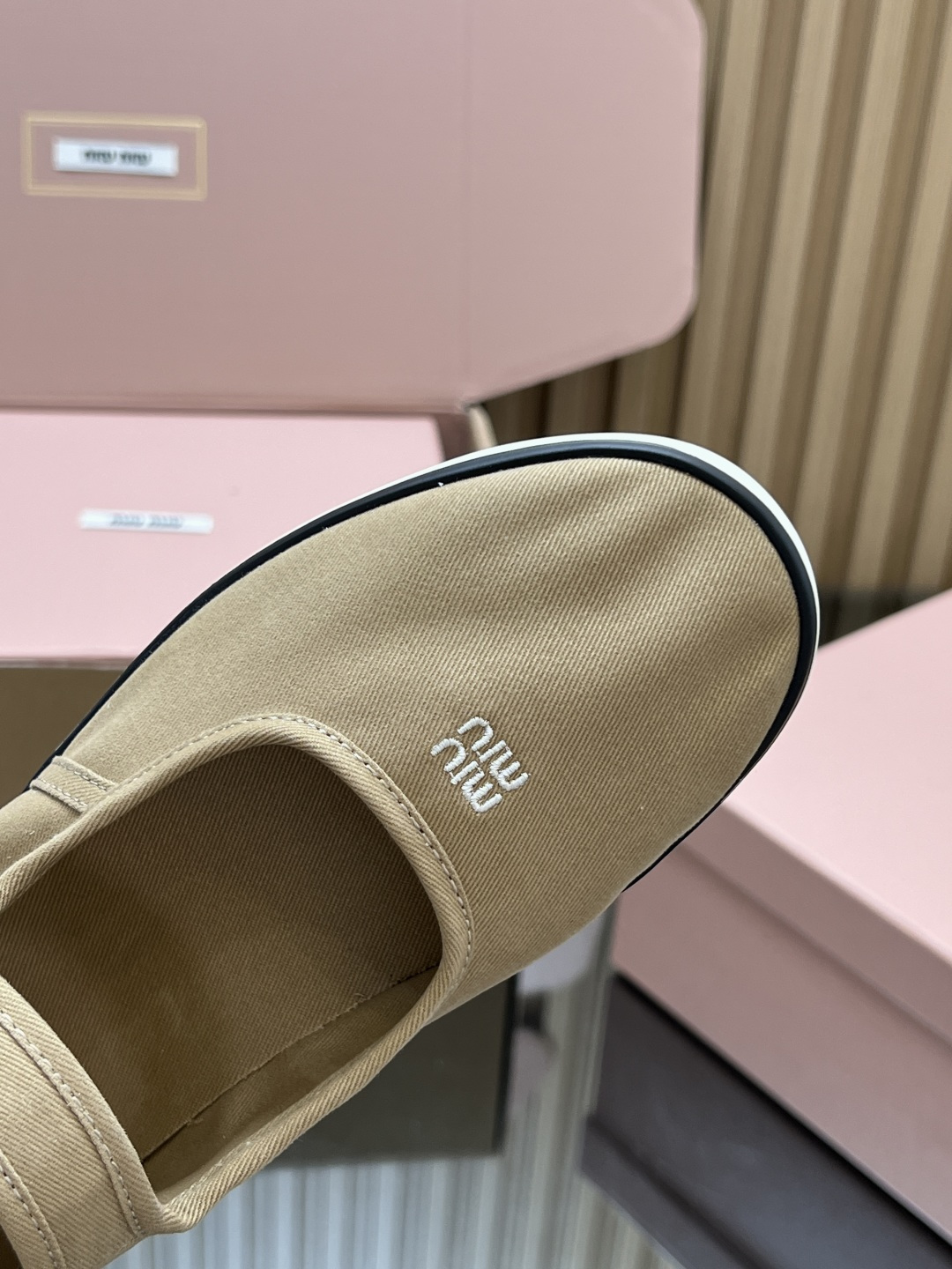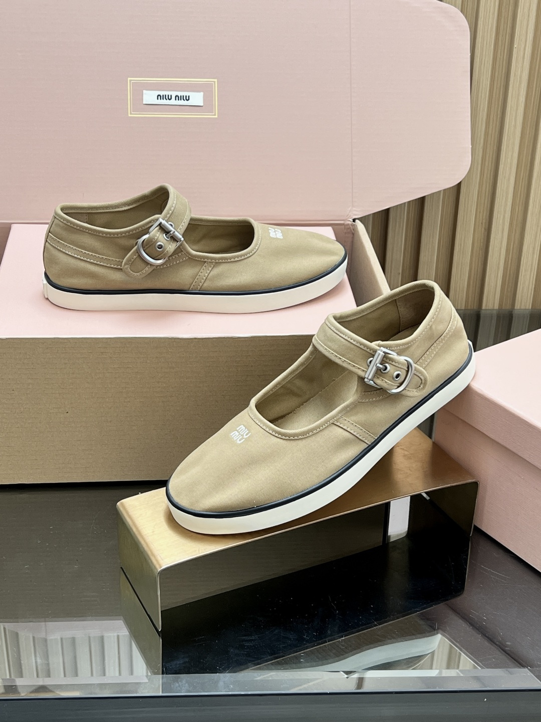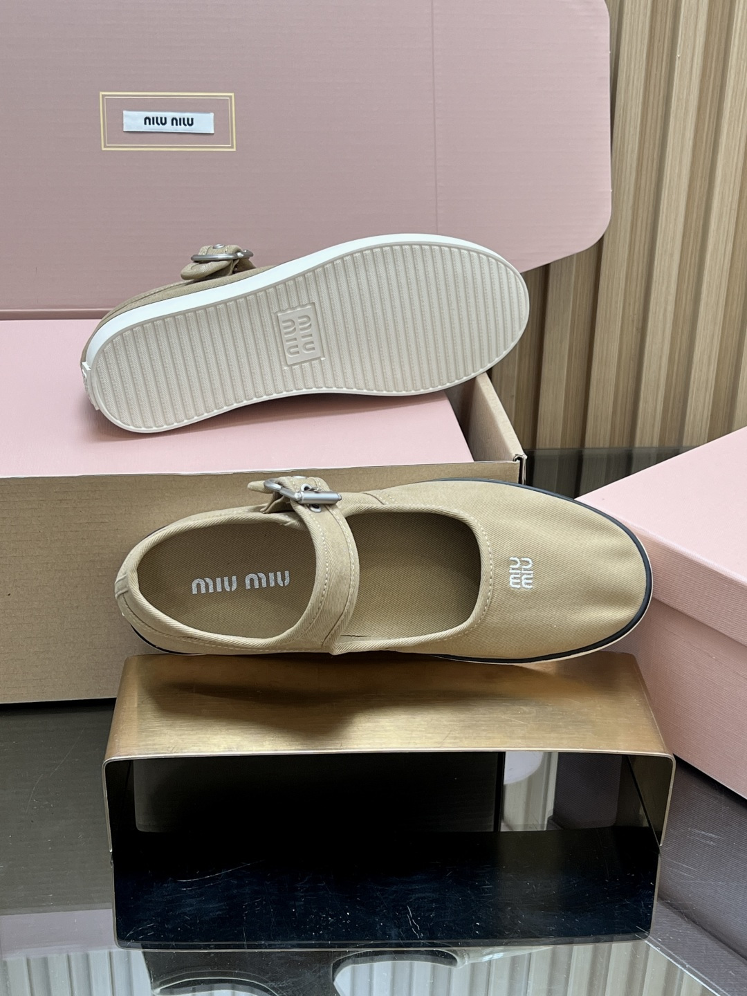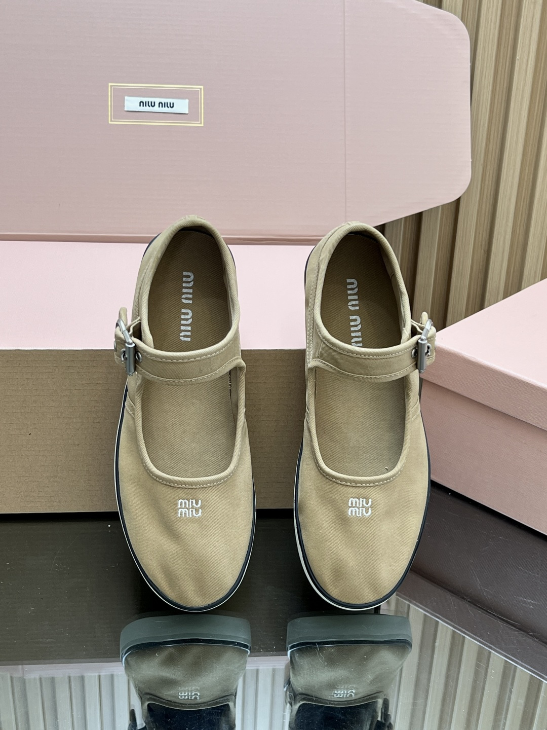 這款鞋子是AAAAA 1:1 質量(非常棒). 使用了和原版一模一樣的材料. 商標部分也保持了和繆繆/Miu Miu一樣. 圖片拍攝是實物鞋子拍攝, 您所收到的實物保證和我們圖片一模一樣.