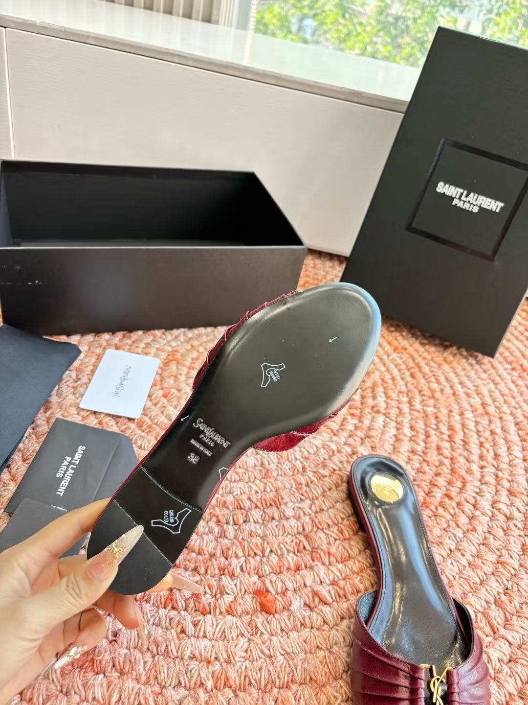 這款鞋子是AAAAA 1:1 質量(非常棒). 使用了和原版一模一樣的材料. 商標部分也保持了和聖羅蘭/Saint Laurent一樣. 圖片拍攝是實物鞋子拍攝, 您所收到的實物保證和我們圖片一模一樣.