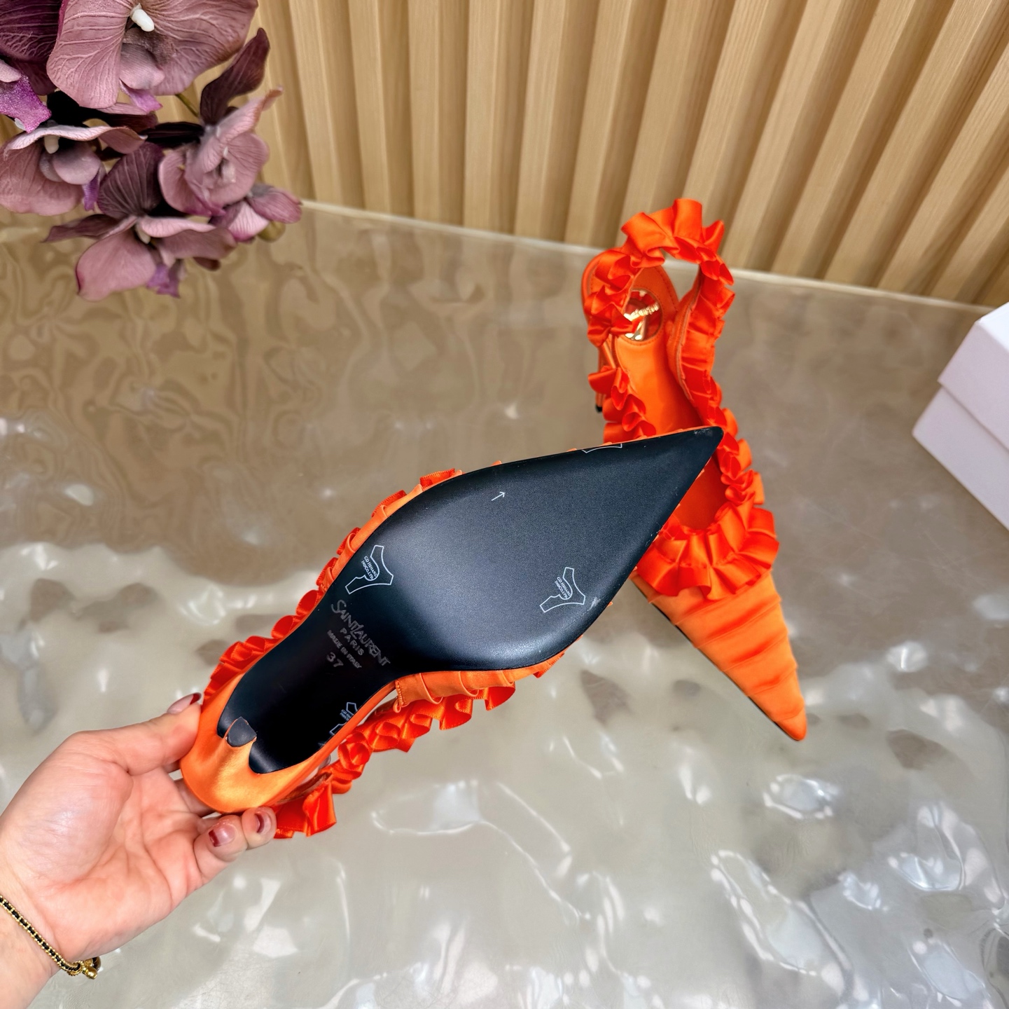 這款鞋子是AAAAA 1:1 質量(非常棒). 使用了和原版一模一樣的材料. 商標部分也保持了和聖羅蘭/Saint Laurent一樣. 圖片拍攝是實物鞋子拍攝, 您所收到的實物保證和我們圖片一模一樣.