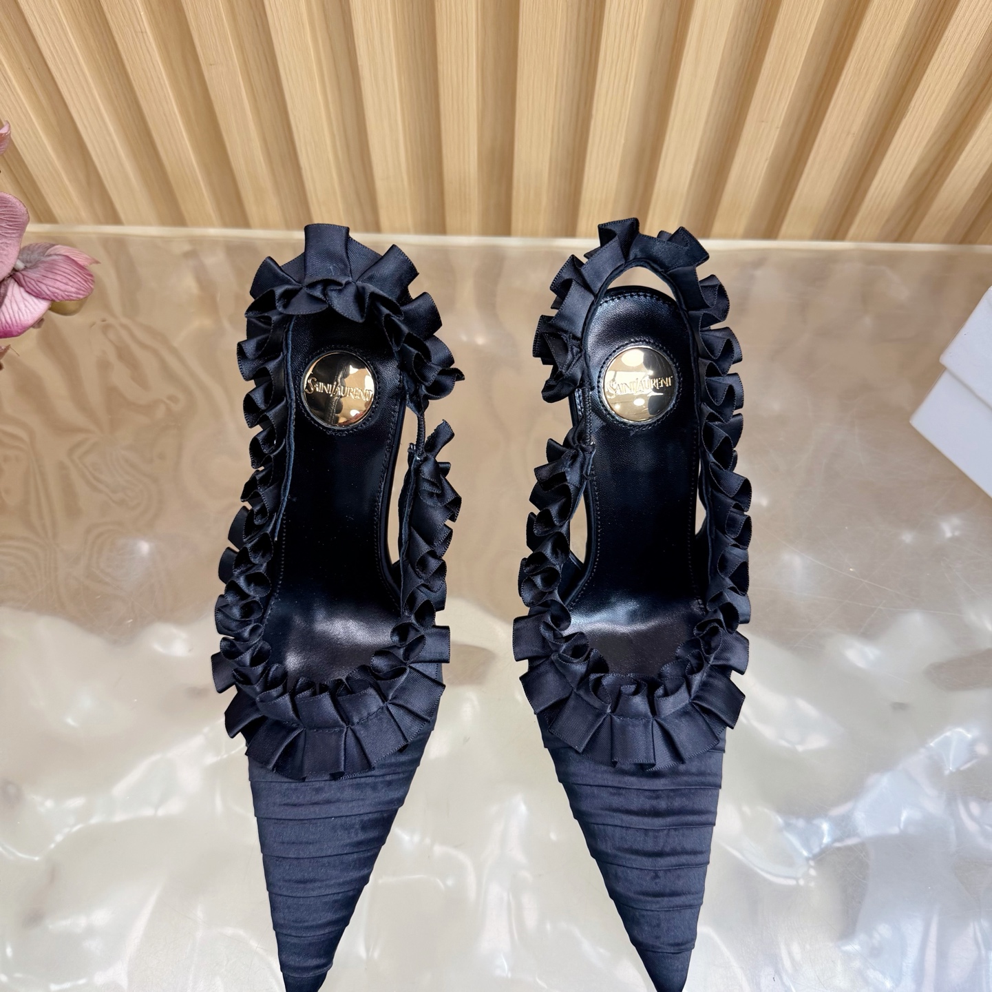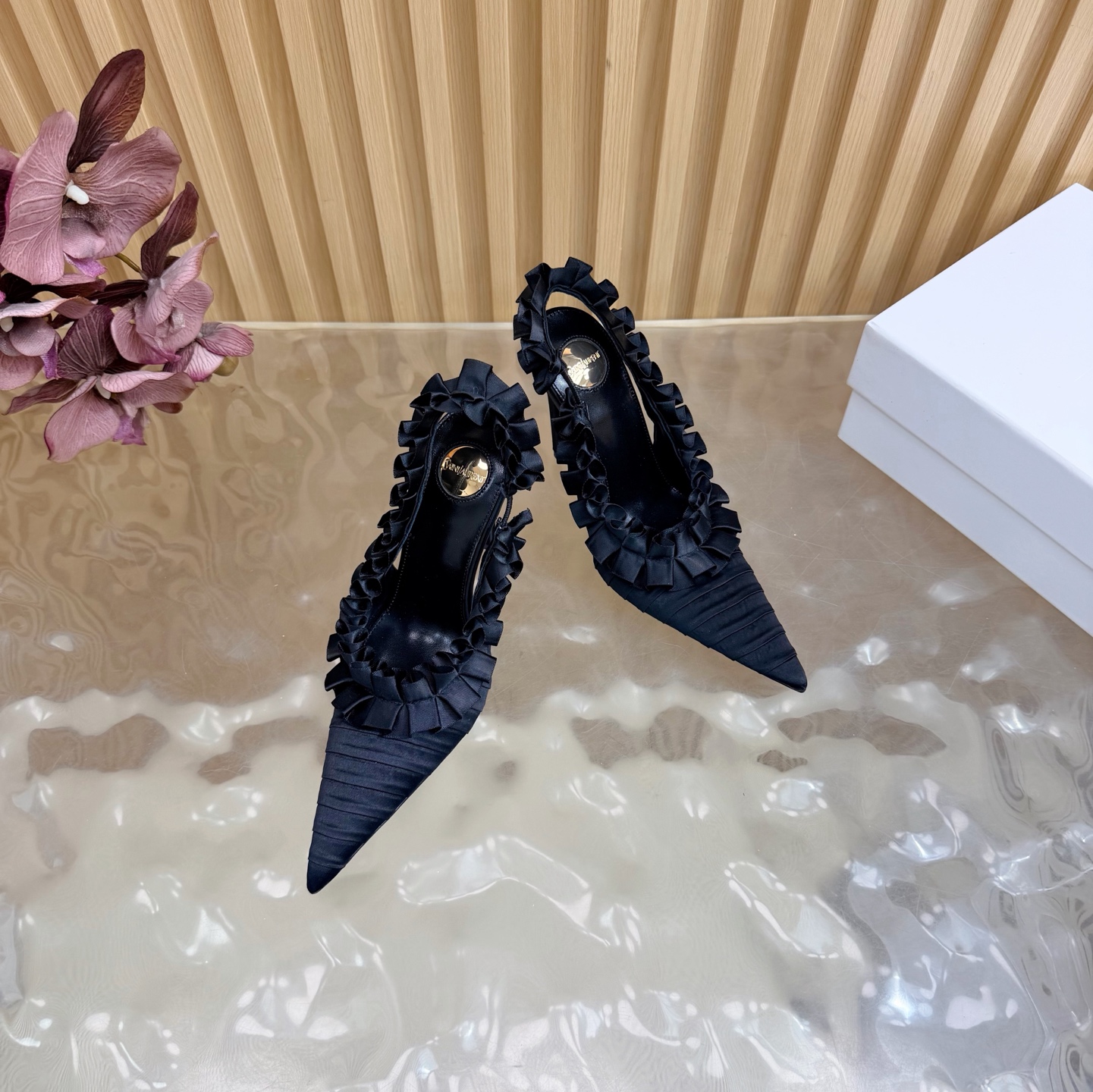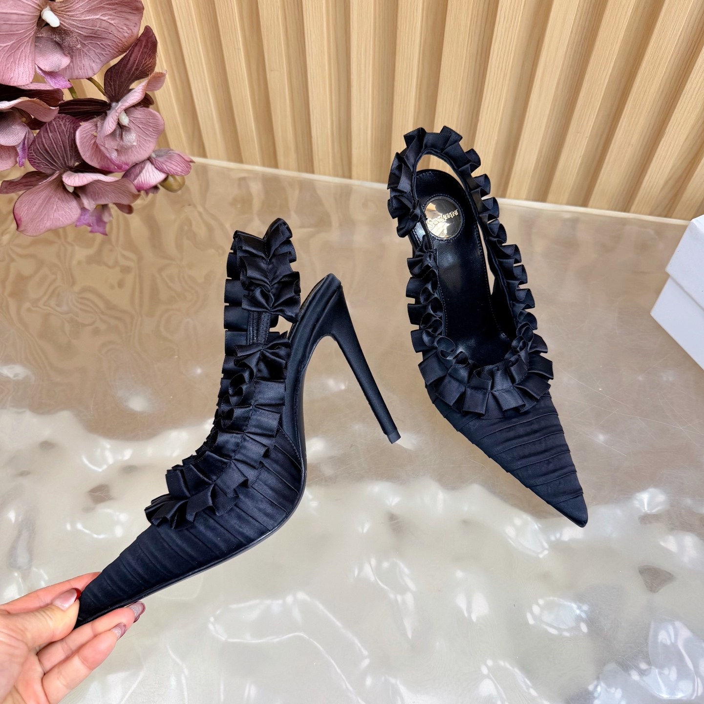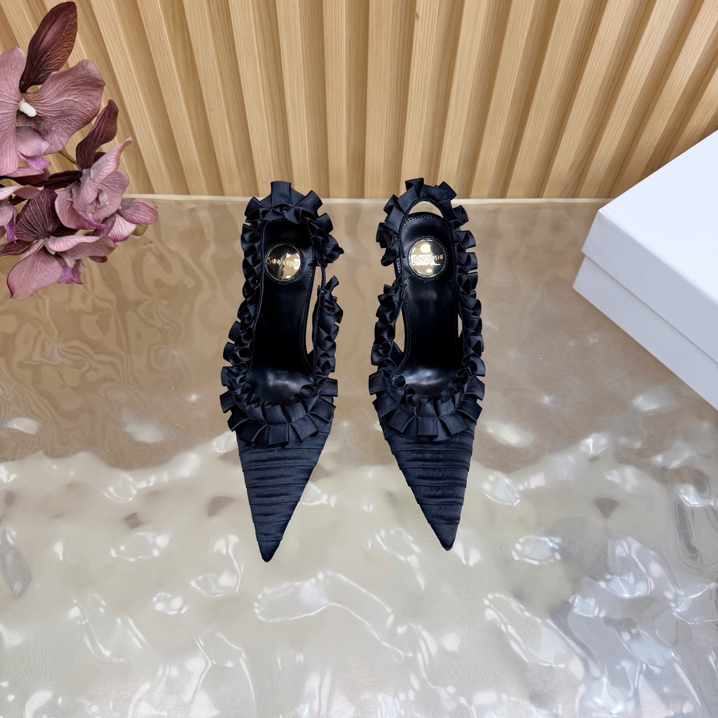 這款鞋子是AAAAA 1:1 質量(非常棒). 使用了和原版一模一樣的材料. 商標部分也保持了和聖羅蘭/Saint Laurent一樣. 圖片拍攝是實物鞋子拍攝, 您所收到的實物保證和我們圖片一模一樣.