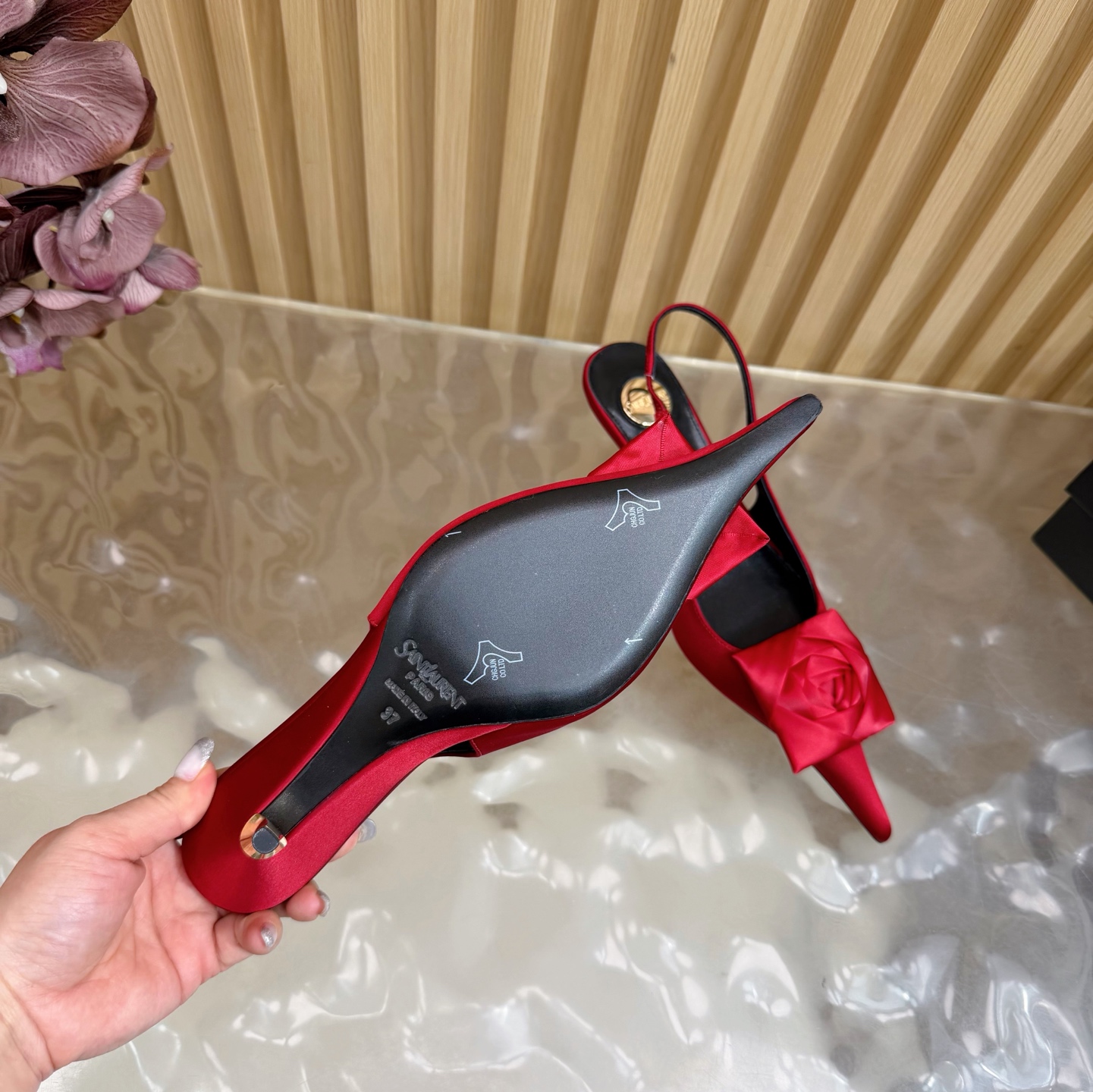 這款鞋子是AAAAA 1:1 質量(非常棒). 使用了和原版一模一樣的材料. 商標部分也保持了和聖羅蘭/Saint Laurent一樣. 圖片拍攝是實物鞋子拍攝, 您所收到的實物保證和我們圖片一模一樣.